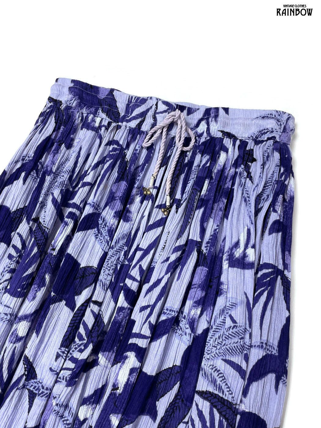 #スカート #ロング丈 #ゴムウエスト #紫 #総柄 #ボタニカル柄 #シワ加工 #クラシック #レーヨン #柄ライトスカート