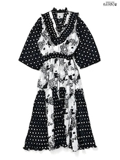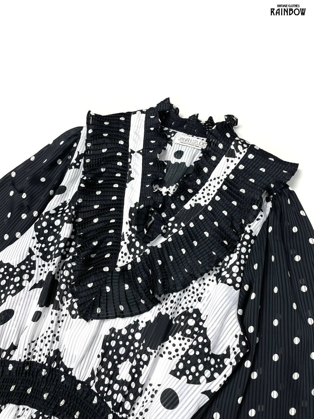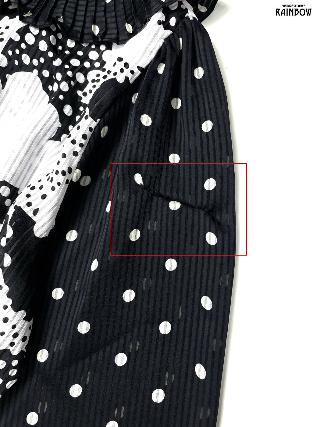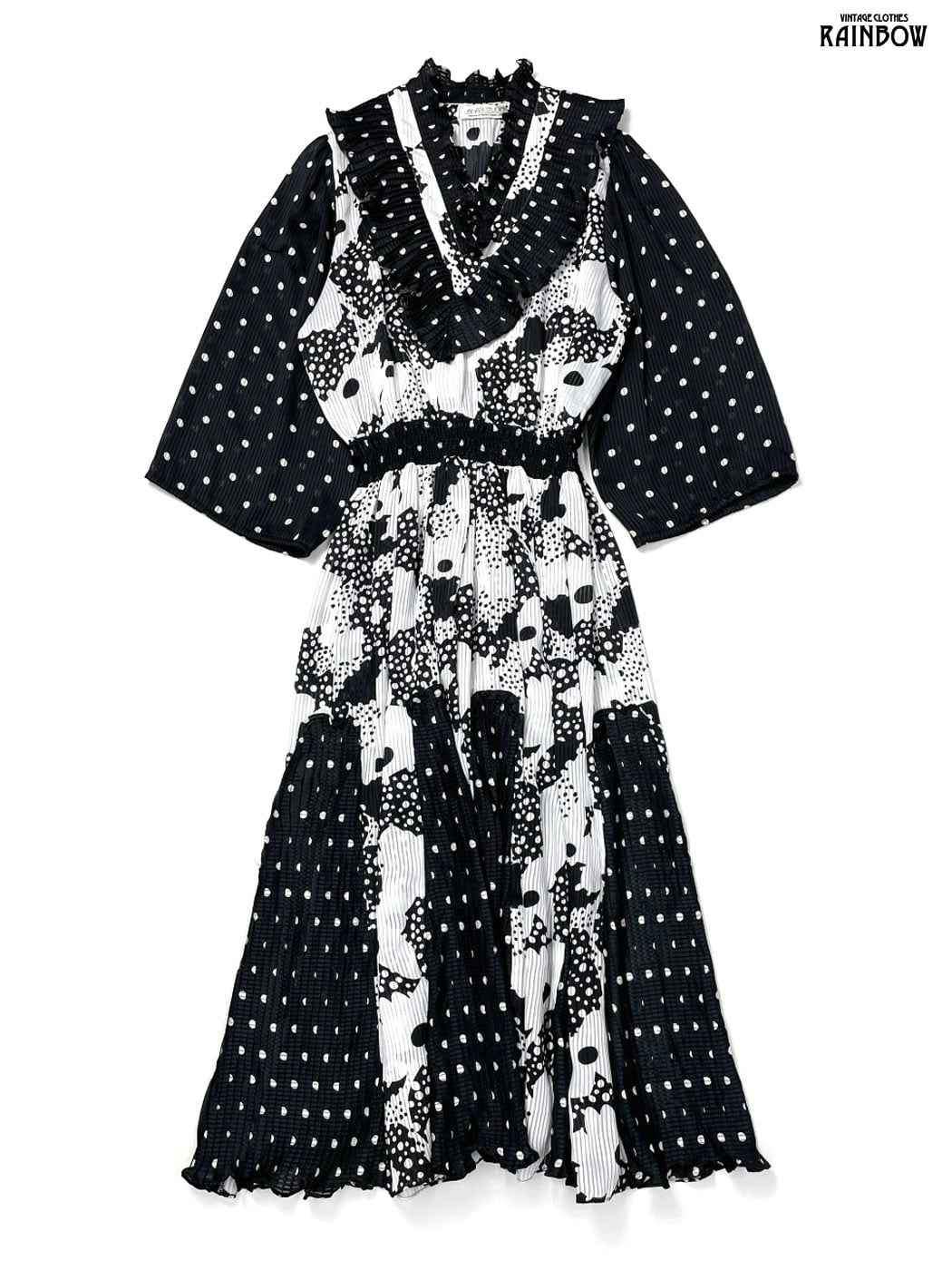 #ワンピース #ロングスリーブ #ロング丈 #ゴムウエスト #黒 #ドット柄 #長袖ドット柄ワンピース