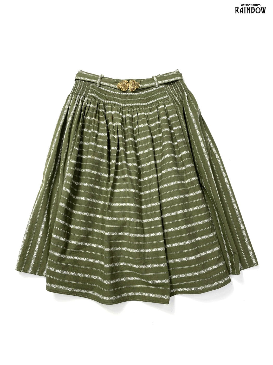 #スカート #ミニ丈 #フレア #緑 #花柄 #ベルト付き #クラシック #コットン #花柄スカート