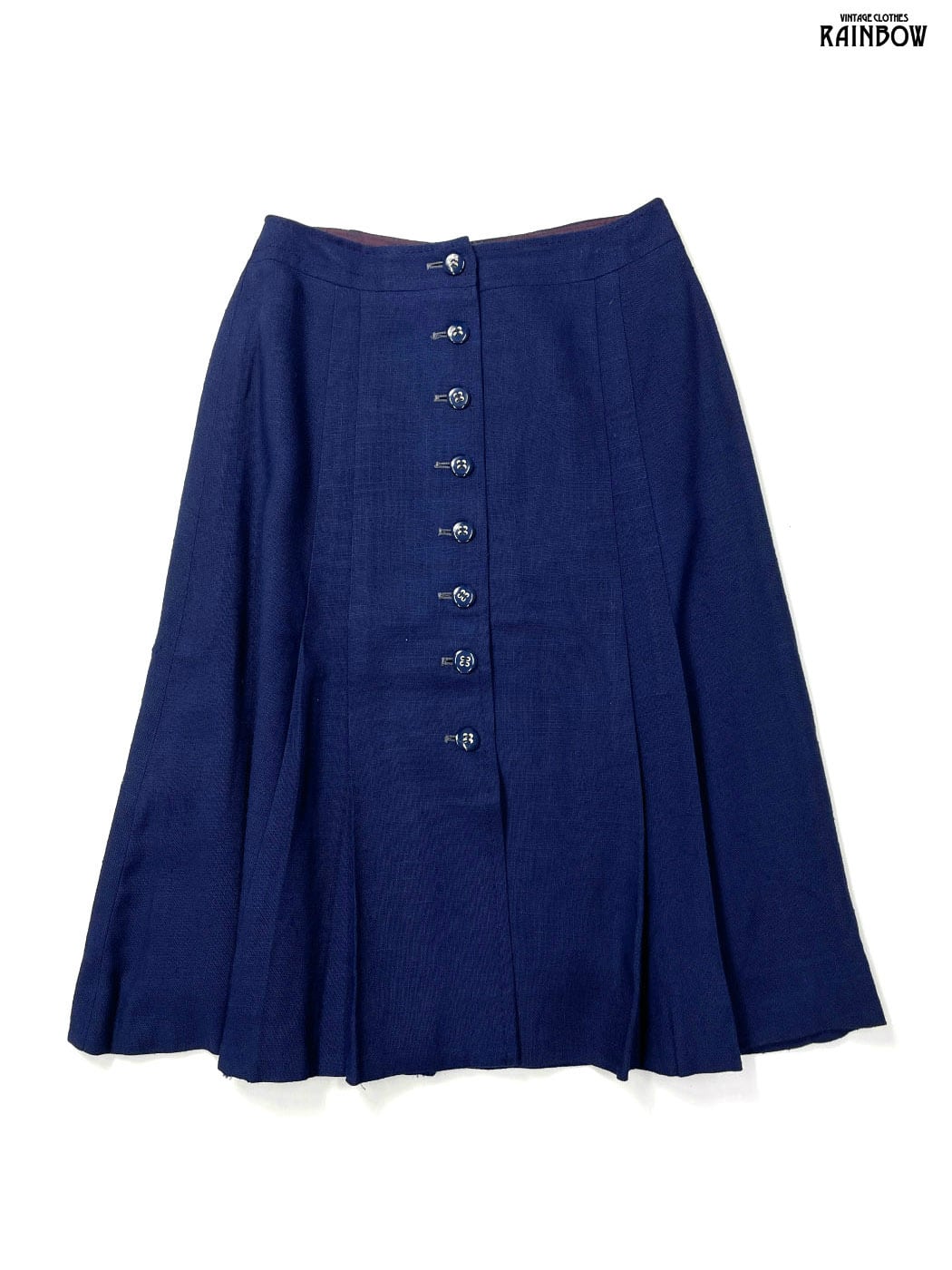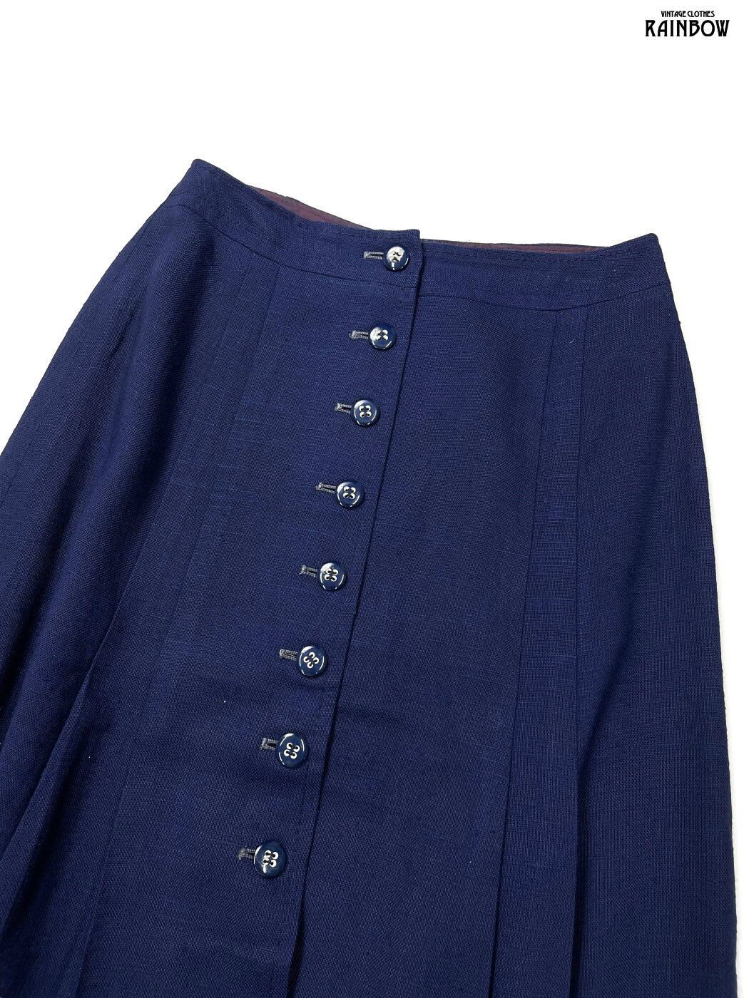#スカート #膝丈 #フレア #紺 #無地 #イギリス製 #シンプル #リネン #リネンスカート