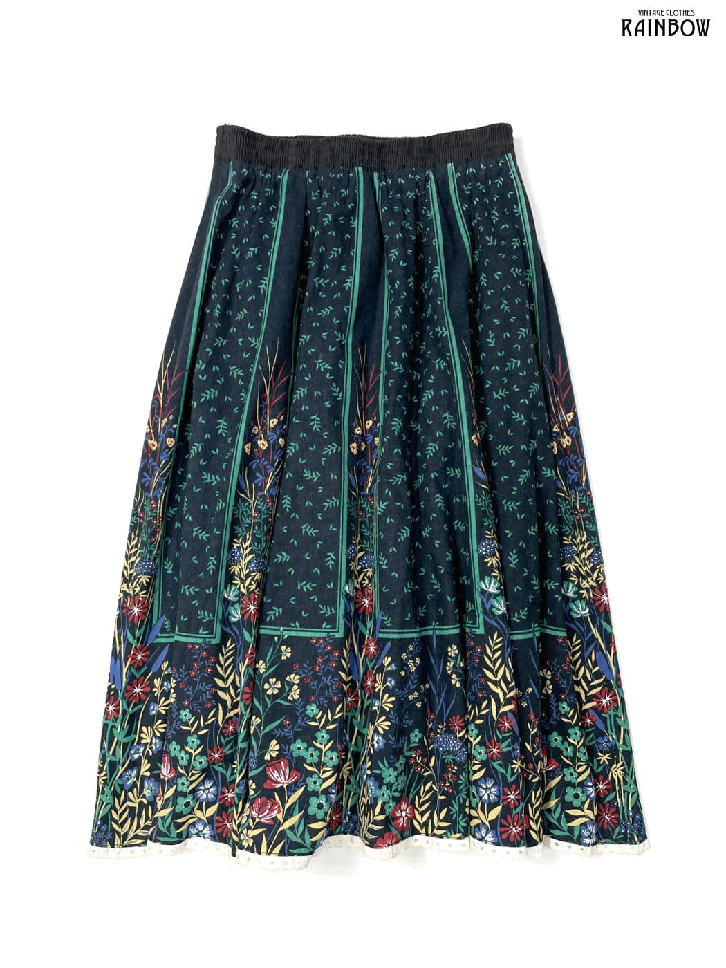 #スカート #膝丈 #黒 #花柄 #ドイツ製 #クラシック #コットン #花柄スカート