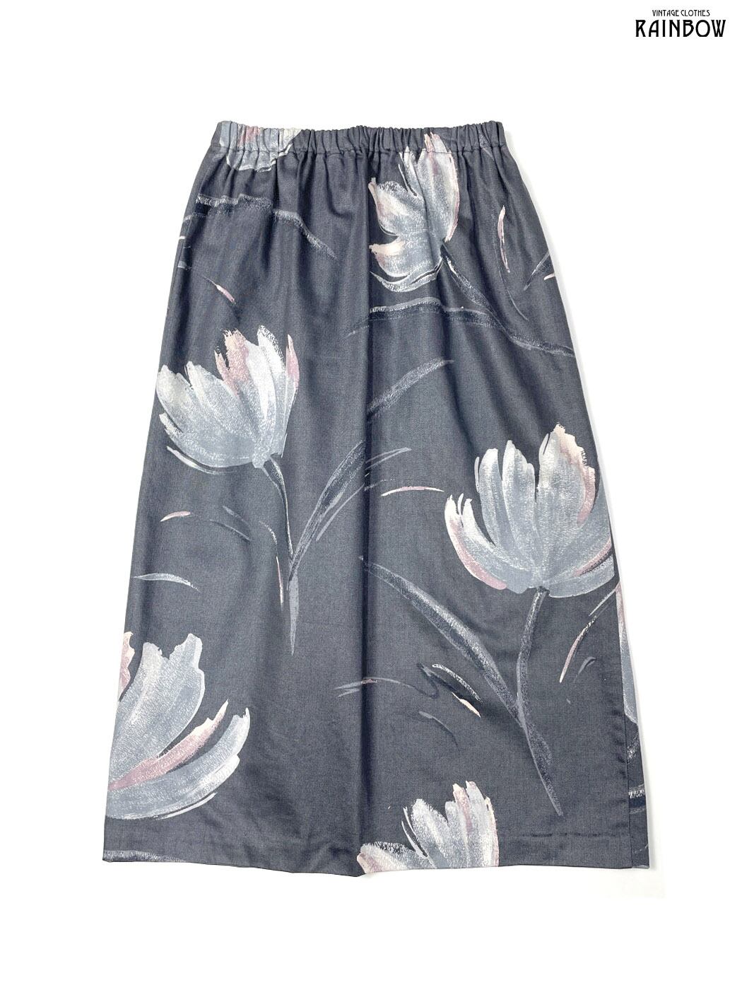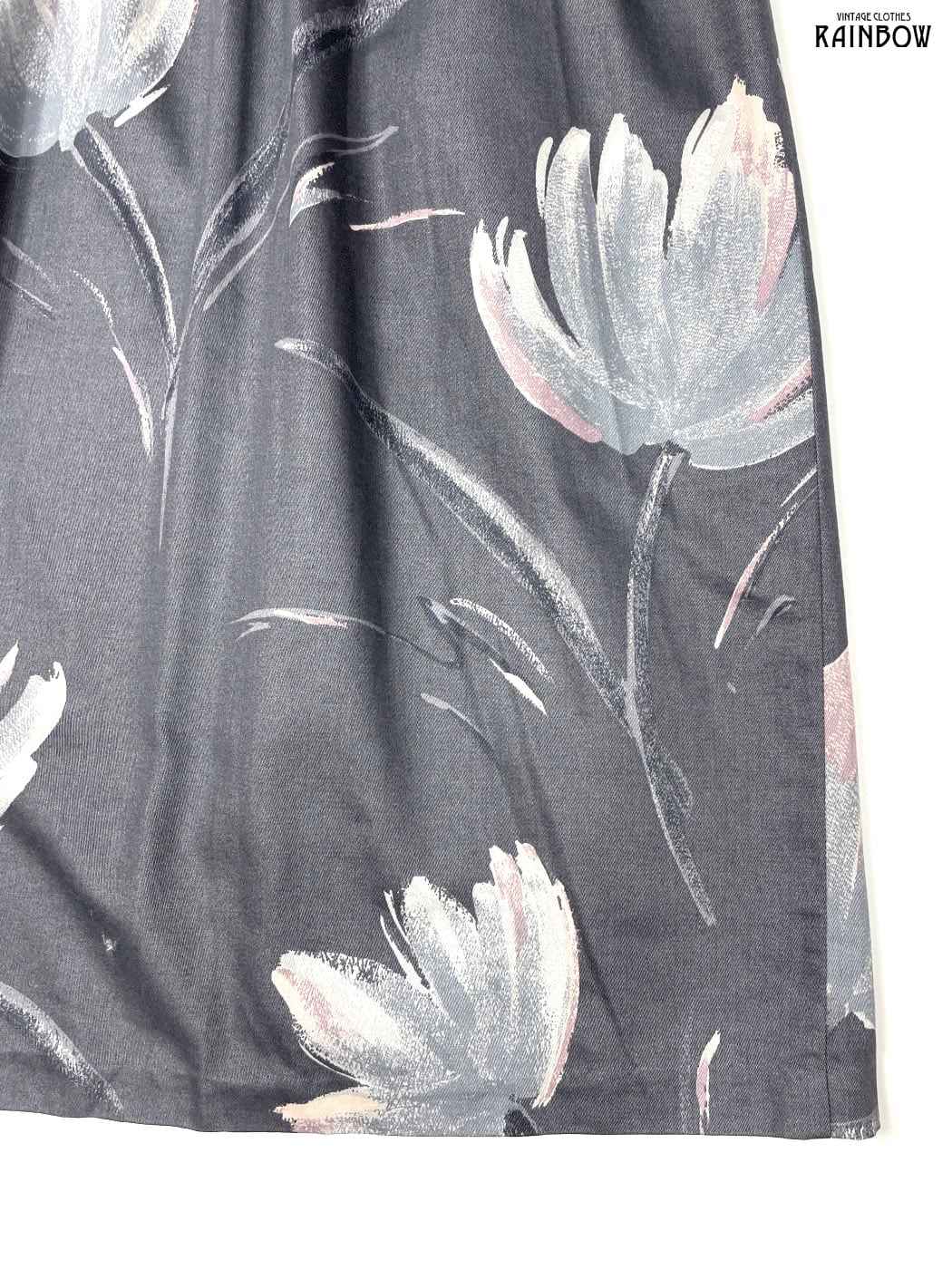 #スカート #膝丈 #グレー #花柄 #クラシック #コットン #花柄スカート