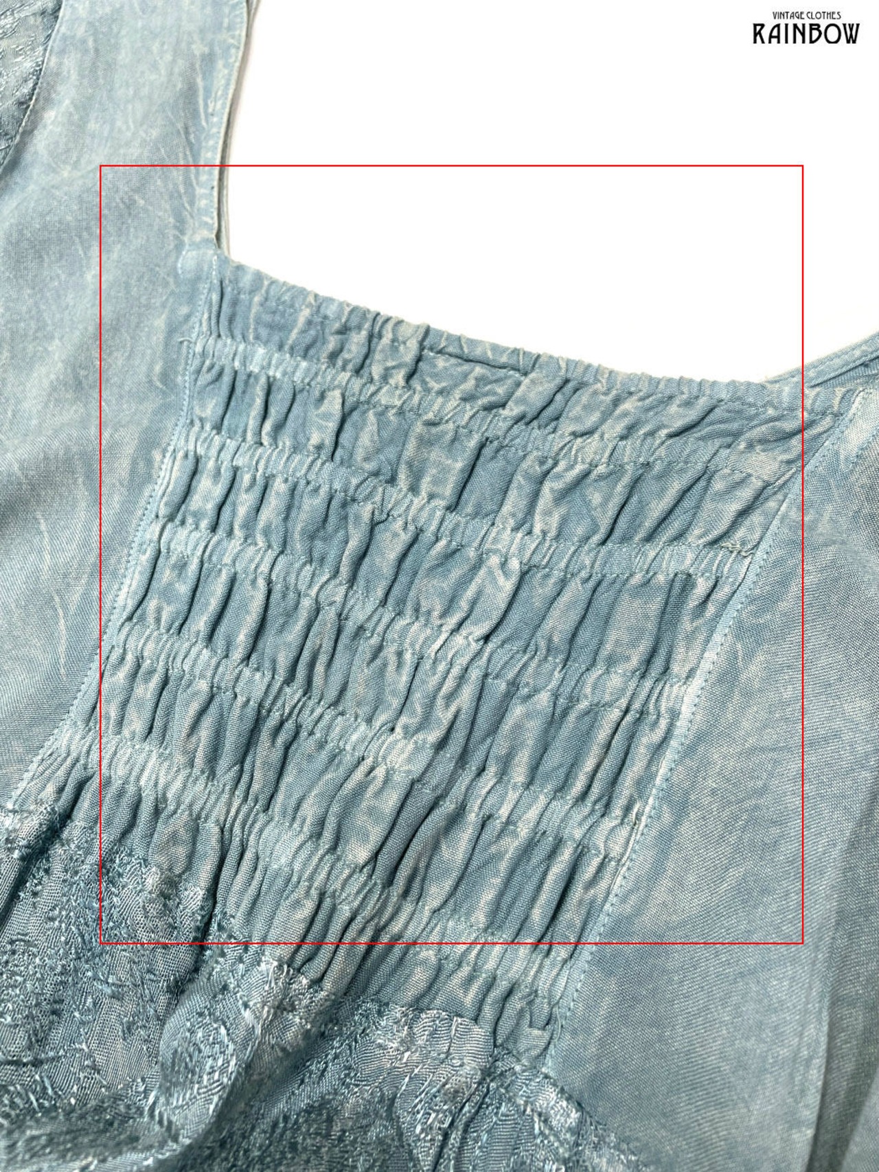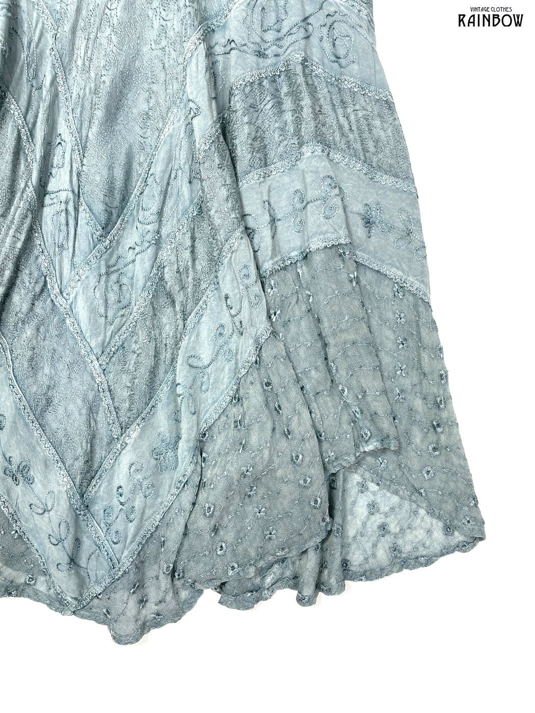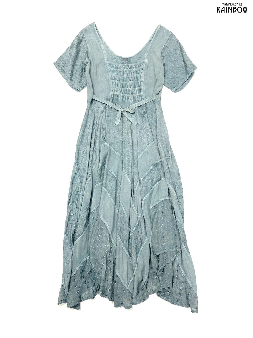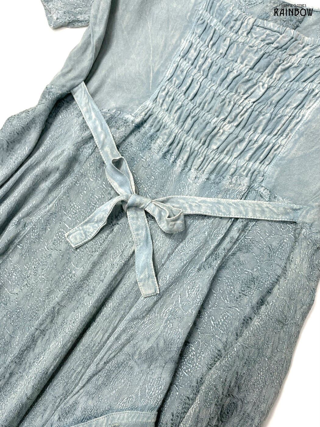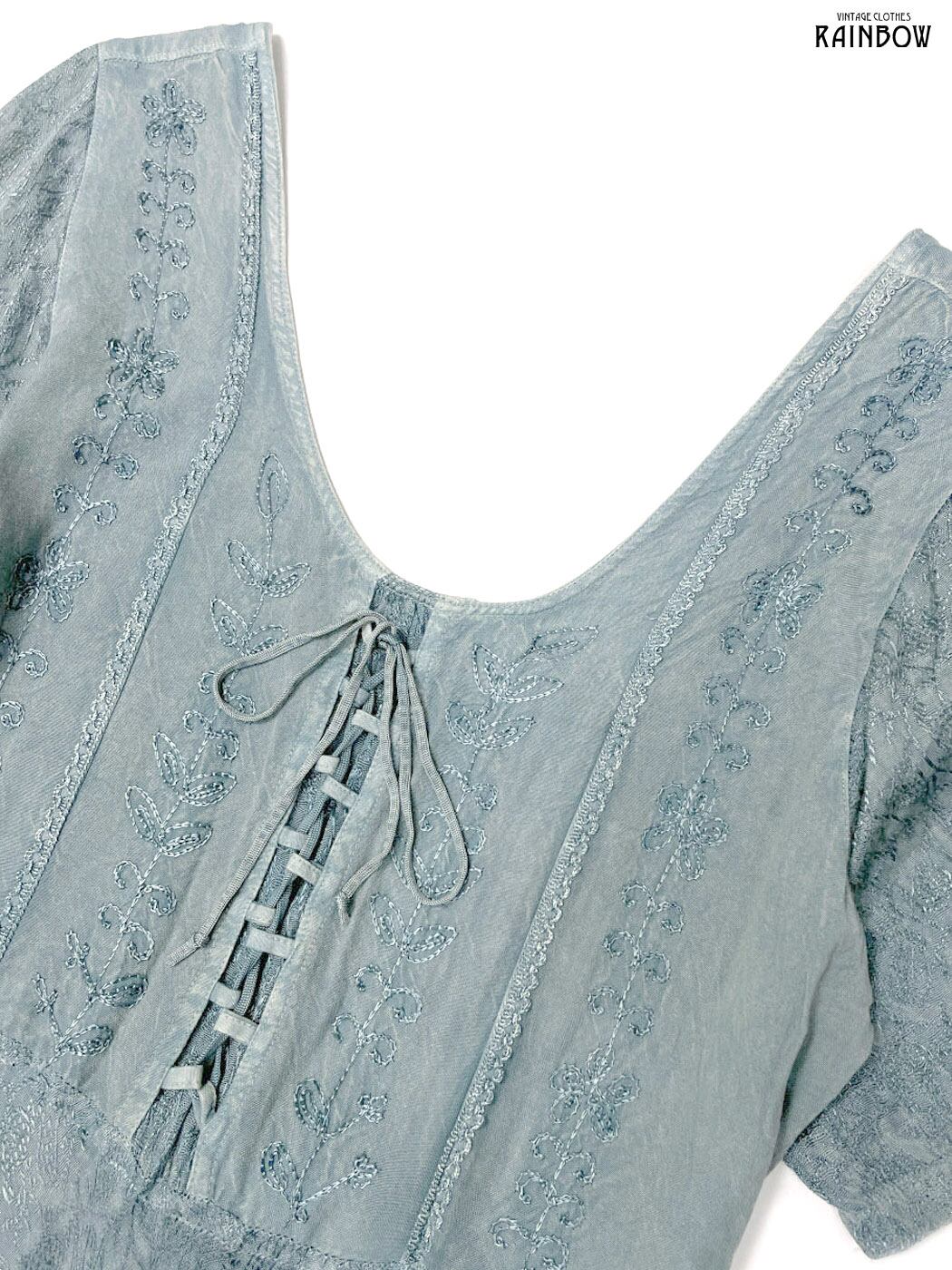 #ワンピース #ハーフスリーブ #ロング丈 #フレア #青 #水色 #花柄 #刺繍 #リボン #シャーリング #編み上げリボン #ヴィンテージ #レーヨン #刺繍ワンピース