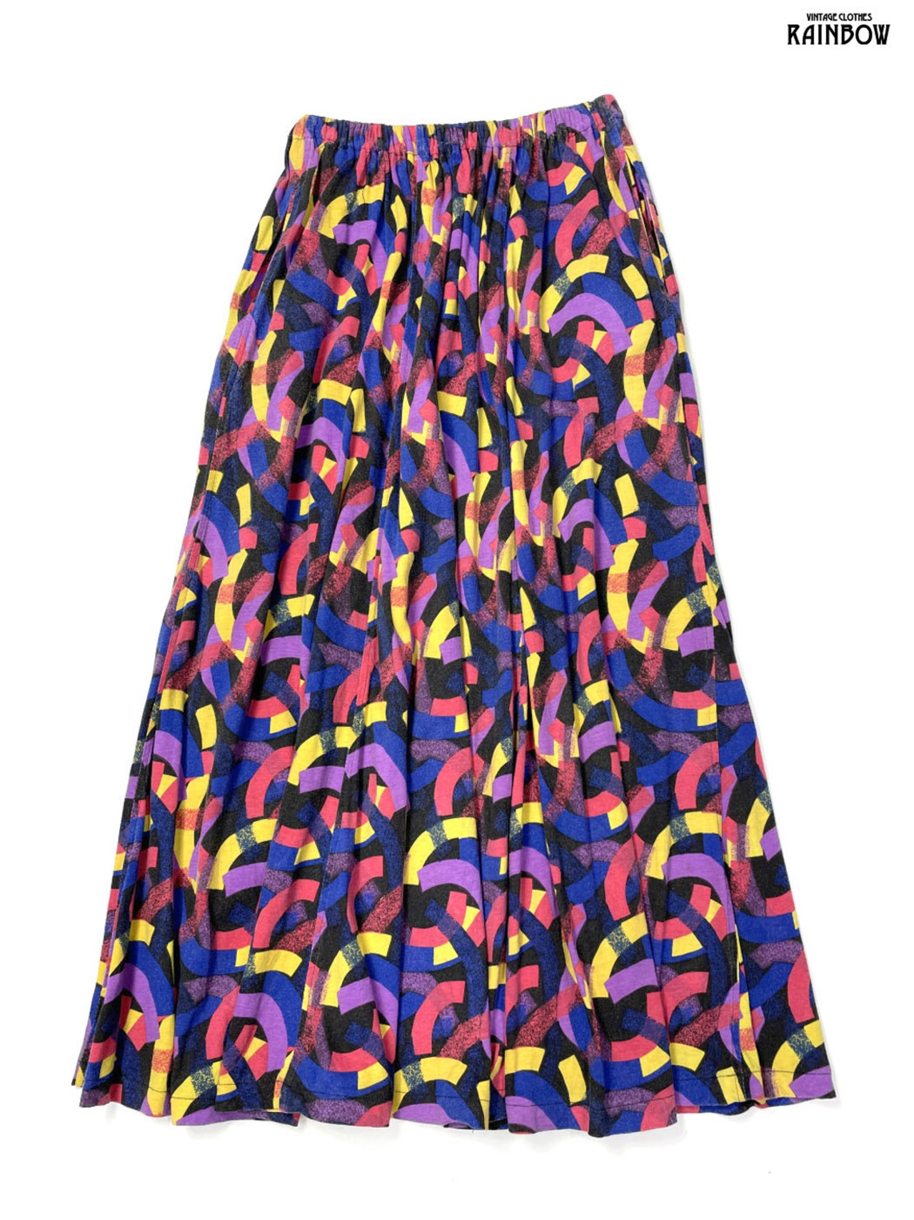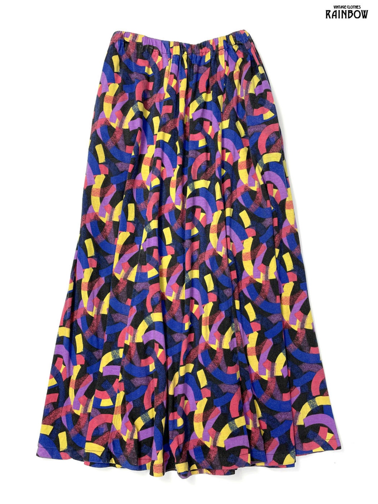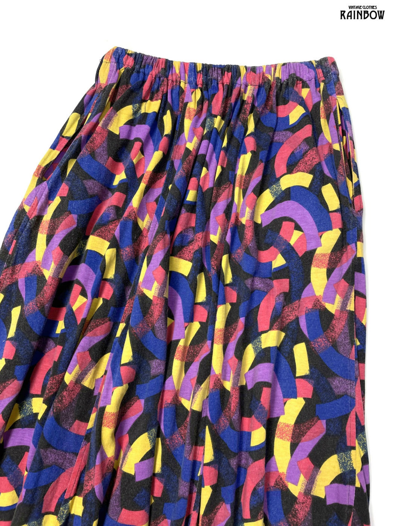 #スカート #ロング丈 #ゴムウエスト #紫 #総柄 #クラシック #コットン #カットソー地 #柄スカート