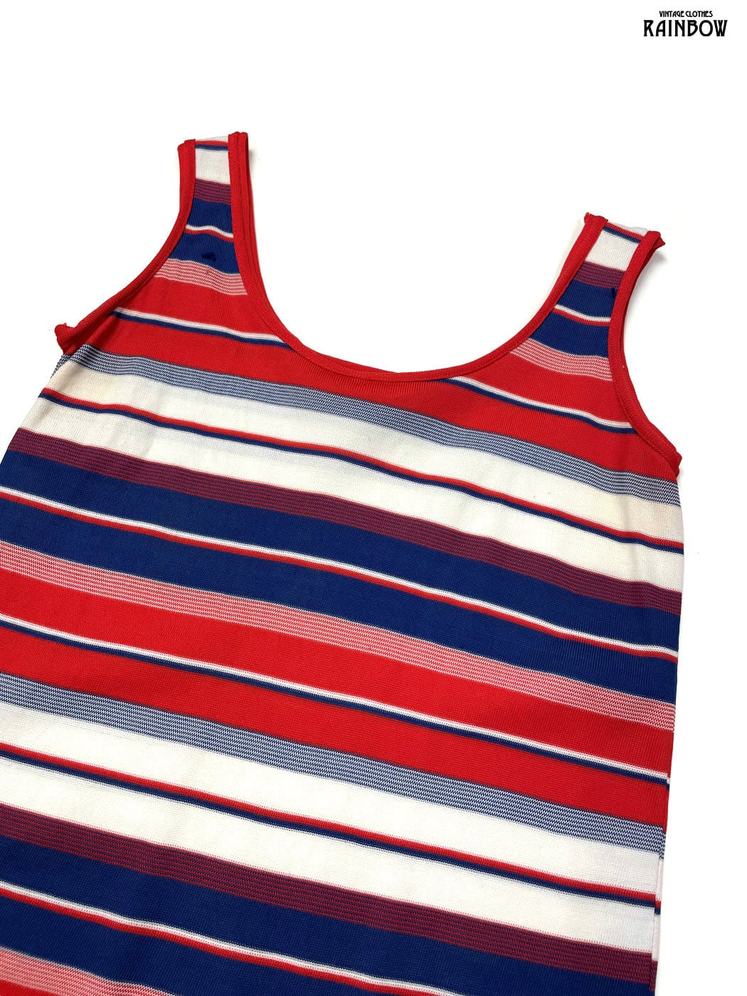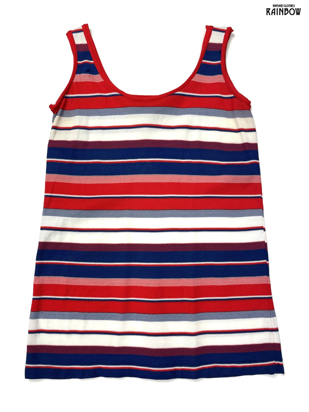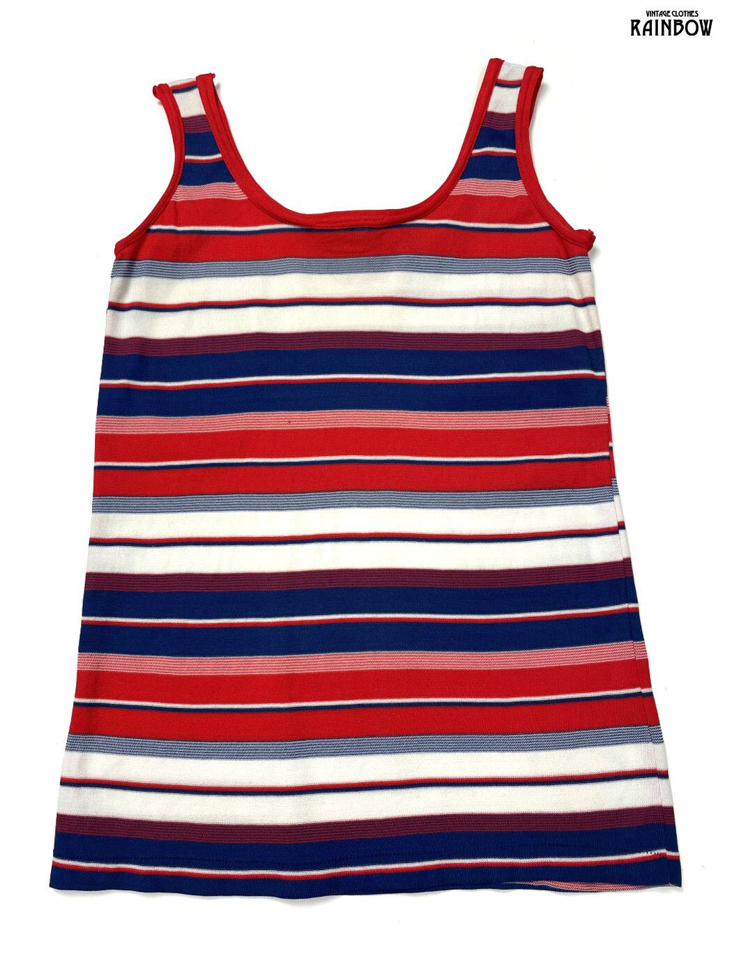 #トップス #タンクトップ #ノースリーブ #赤 #紺 #ボーダー柄 #ナイロン #タンクトップ