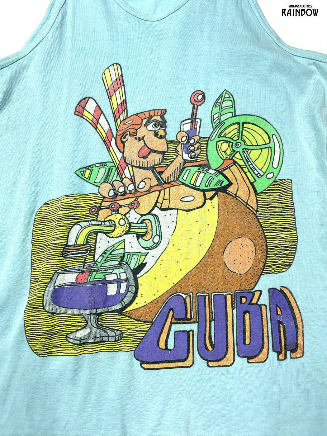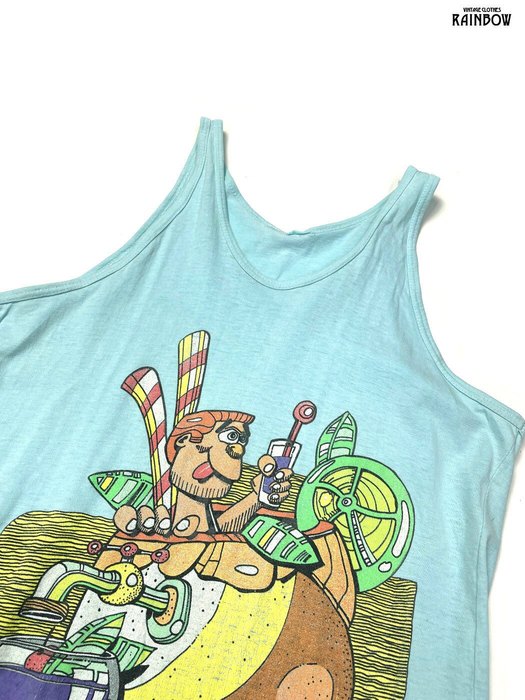 #トップス #タンクトップ #ノースリーブ #青 #水色 #プリントデザイン #カットソー地 #タンクトップ