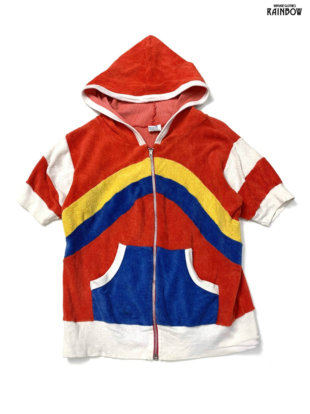 #トップス #プルオーバー #ハーフスリーブ #赤 #総柄 #フード付 #コットン #半袖柄プルオーバー