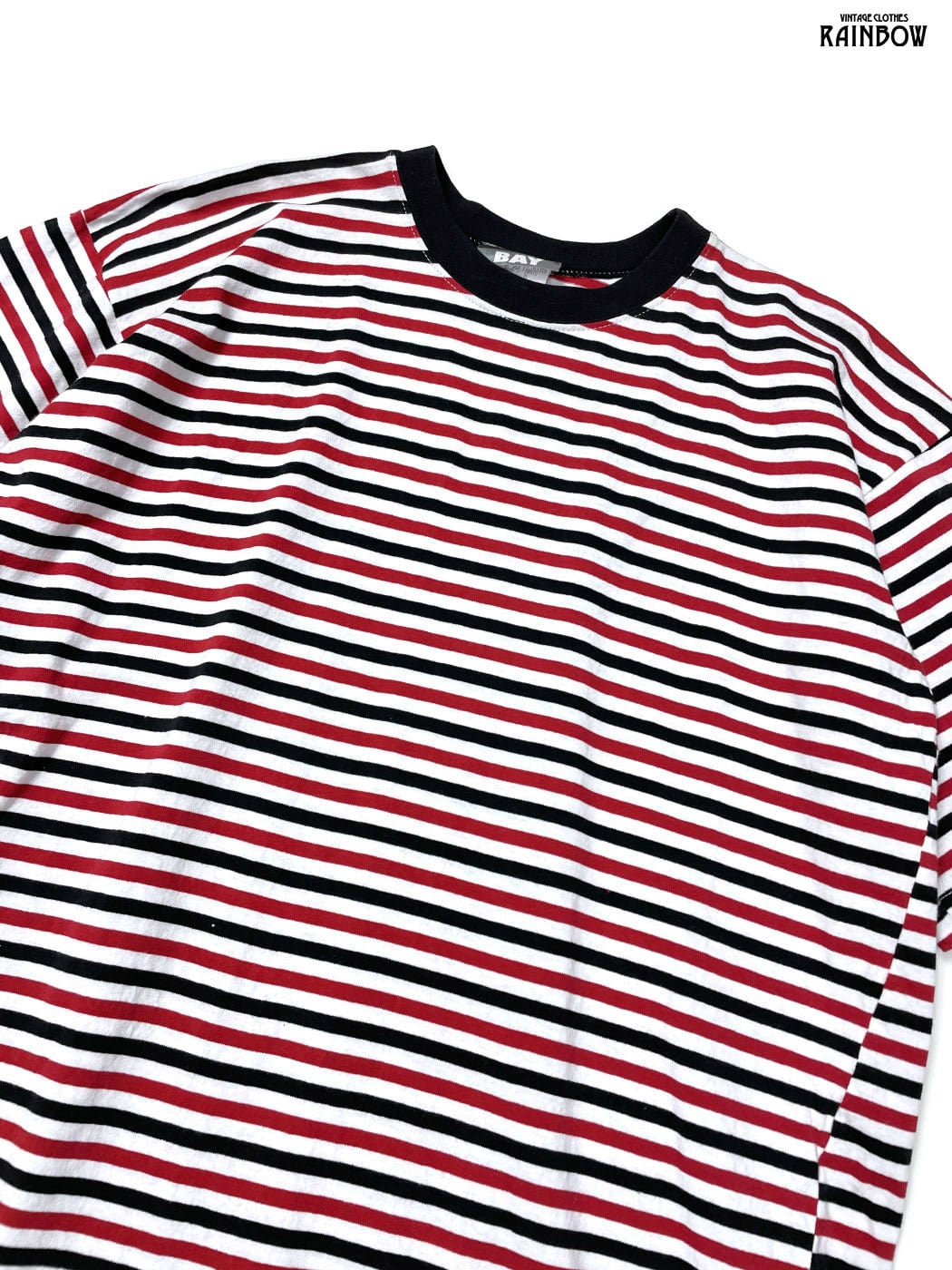 #トップス #Tシャツ #ハーフスリーブ #黒 #赤 #ボーダー柄 #コットン #カットソー地 #半袖柄Tシャツ