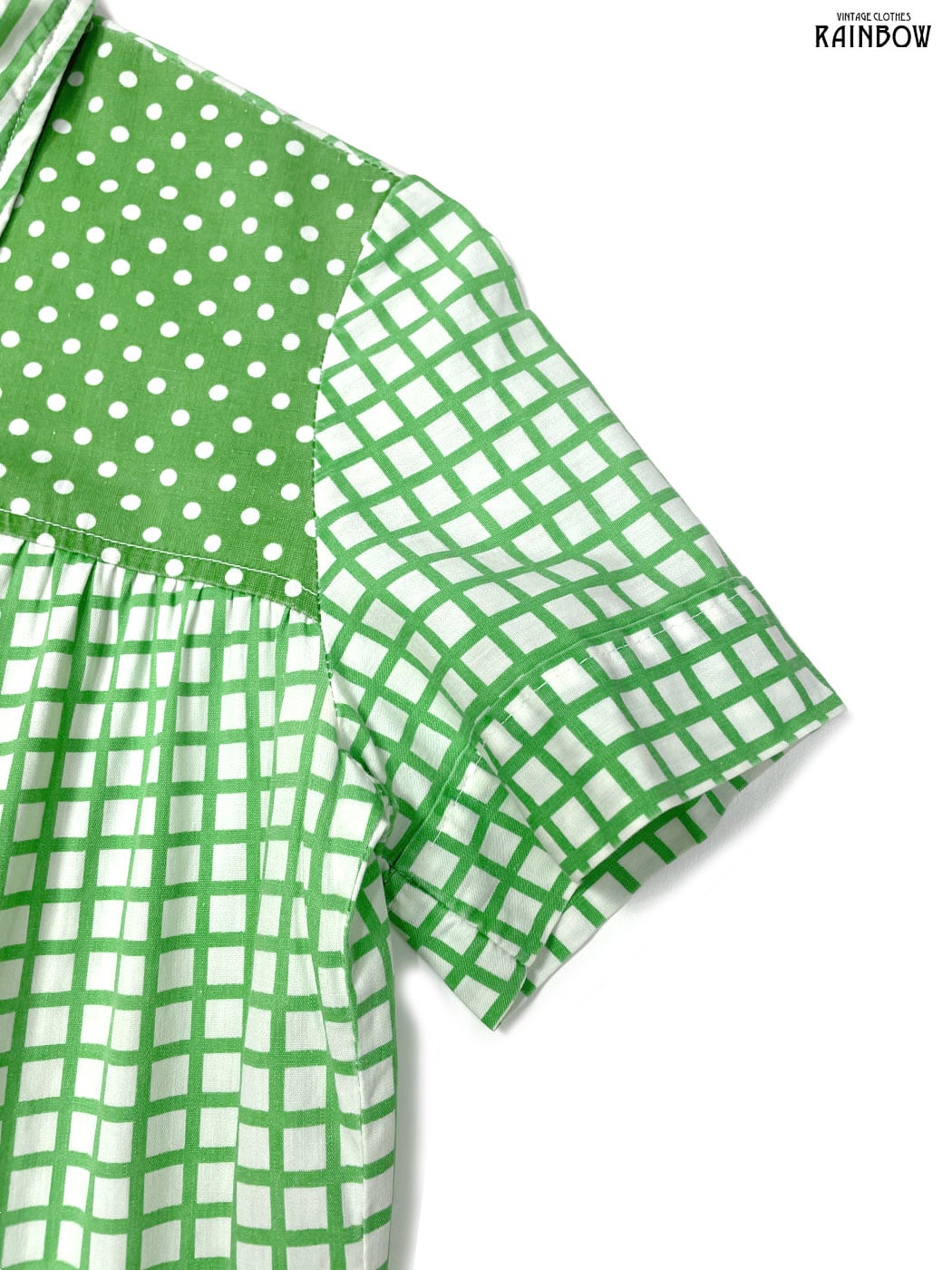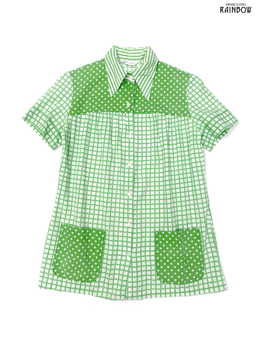 #ブラウス #シャツ #ハーフスリーブ #緑 #チェック柄 #ストライプ柄 #ドット柄 #前開き #ガーリー #コットン #チェック柄シャツ