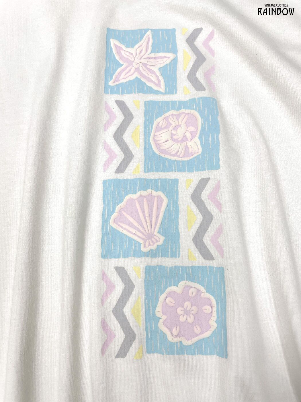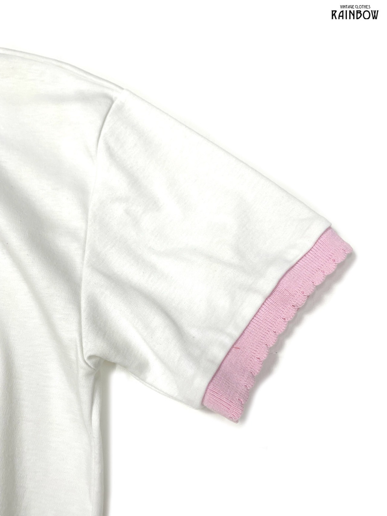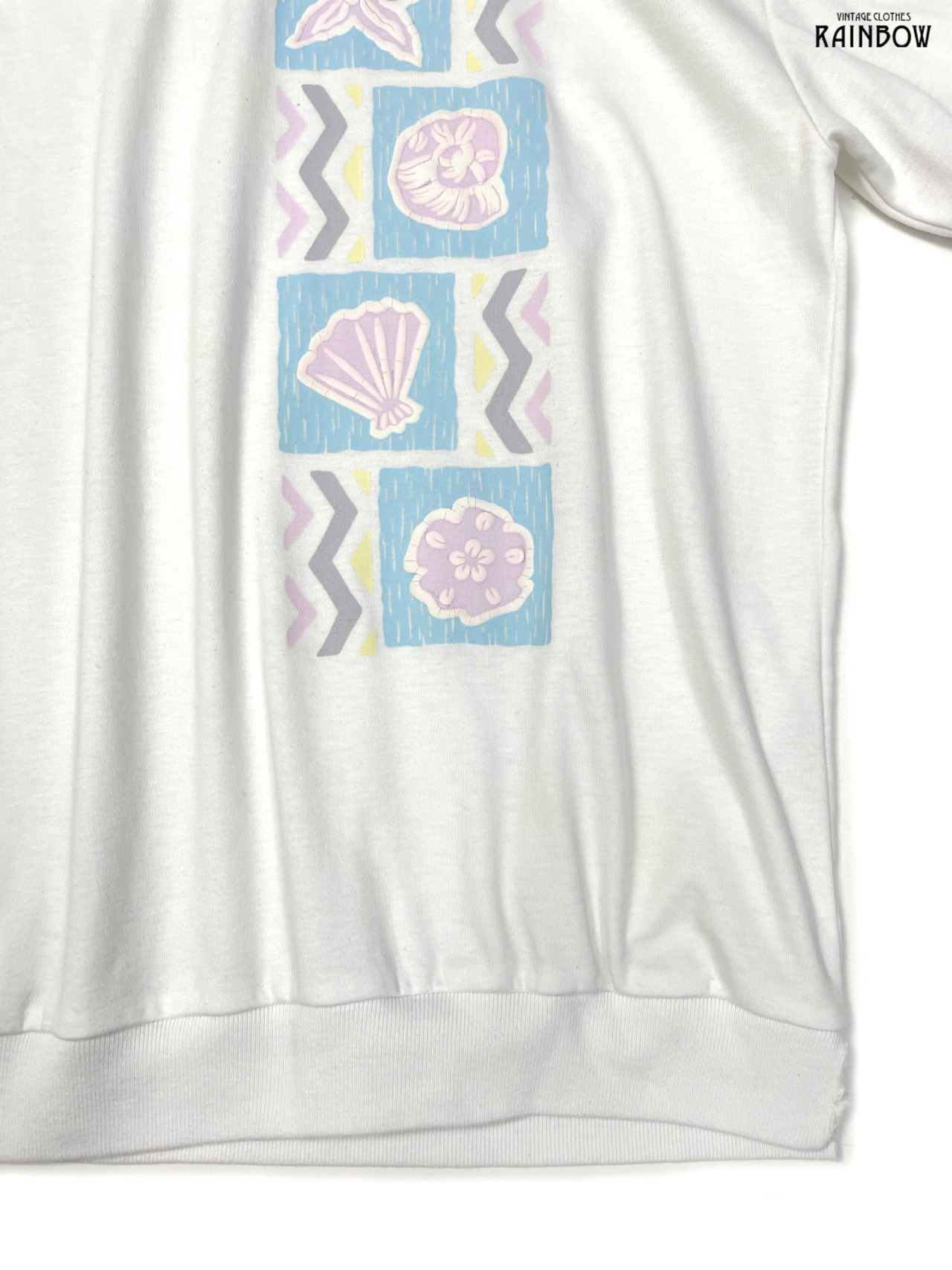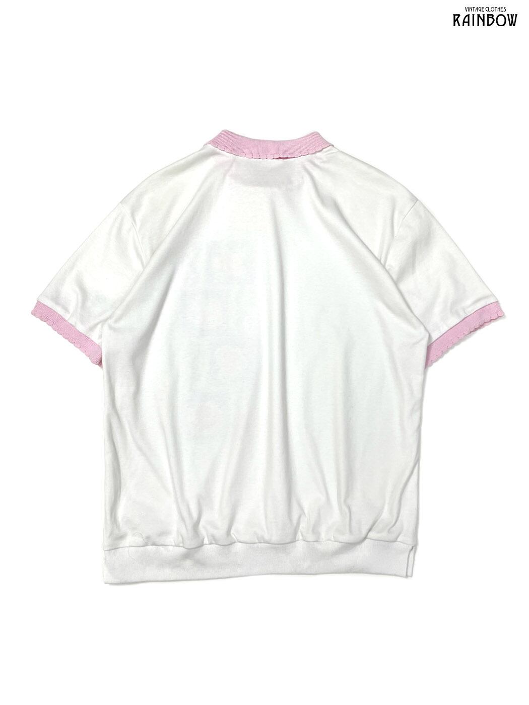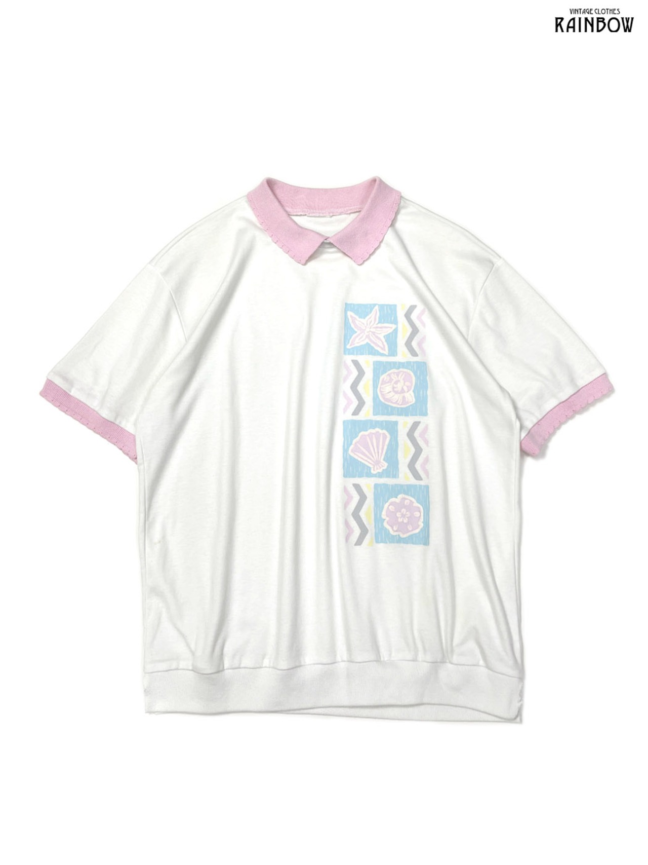 #トップス #Tシャツ #ハーフスリーブ #白 #ピンク #総柄 #貝殻 #マリン柄 #襟付き #ガーリー #カットソー地 #半袖プリントTシャツ