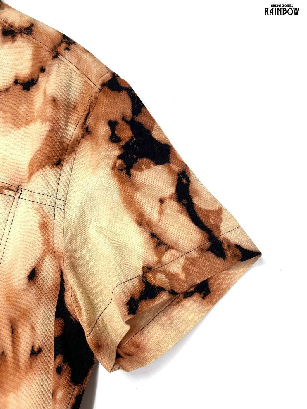 #ブラウス #シャツ #ハーフスリーブ #茶 #オレンジ #総柄 #タイダイ柄 #コットン #柄シャツ