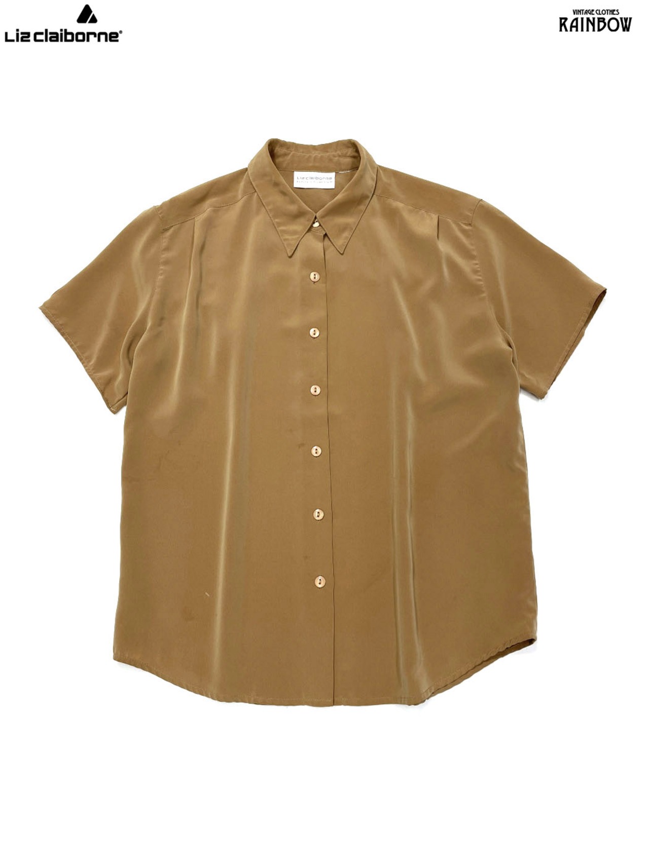 #ブラウス #シャツ #ハーフスリーブ #茶 #無地 #シンプル #レーヨン #半袖無地シャツ