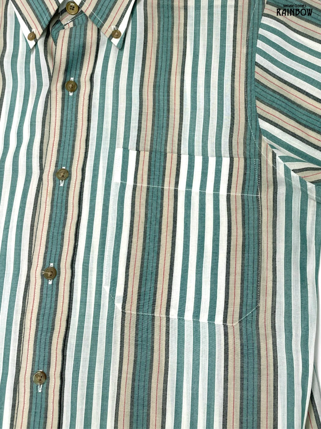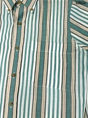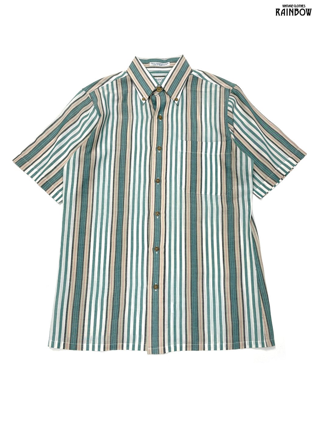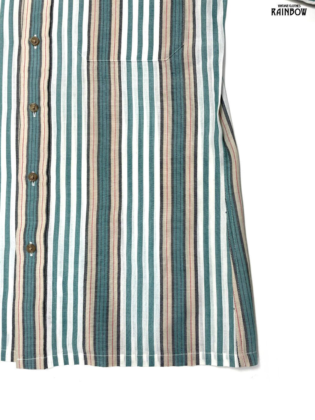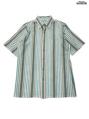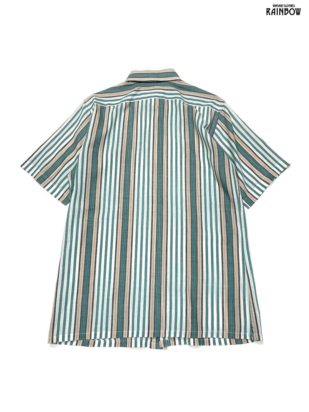 #ブラウス #シャツ #ハーフスリーブ #緑 #水色 #ストライプ柄 #コットン #半袖柄シャツ