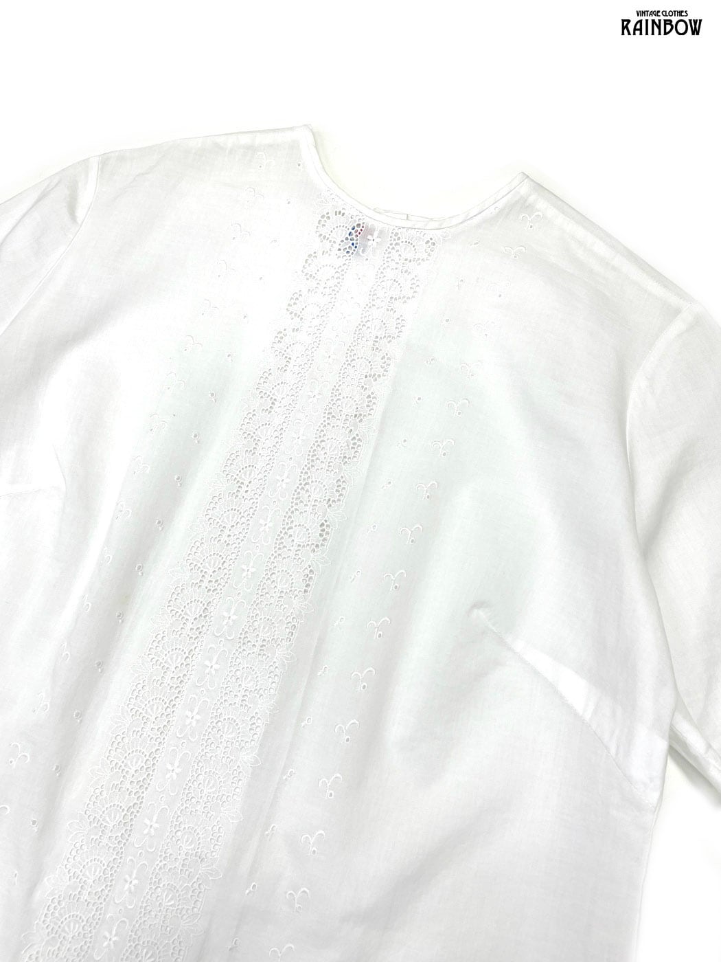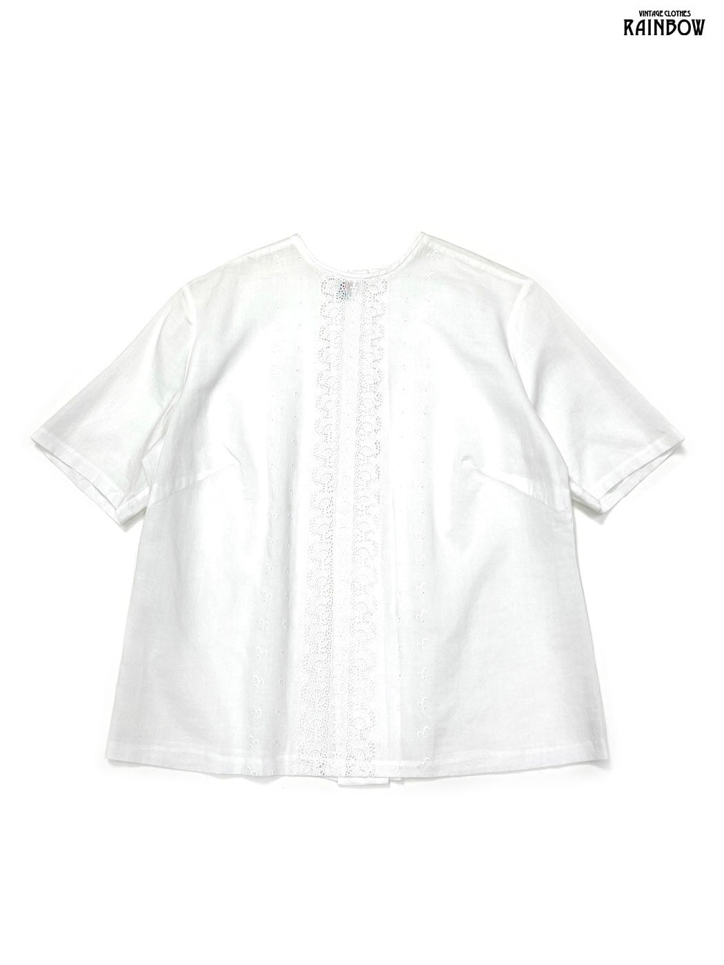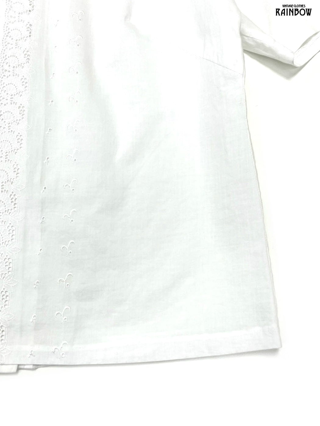 #ブラウス #bブラウス #ハーフスリーブ #白 #無地 #刺繍 #ヴィンテージ #コットン #半袖刺繍シャツ