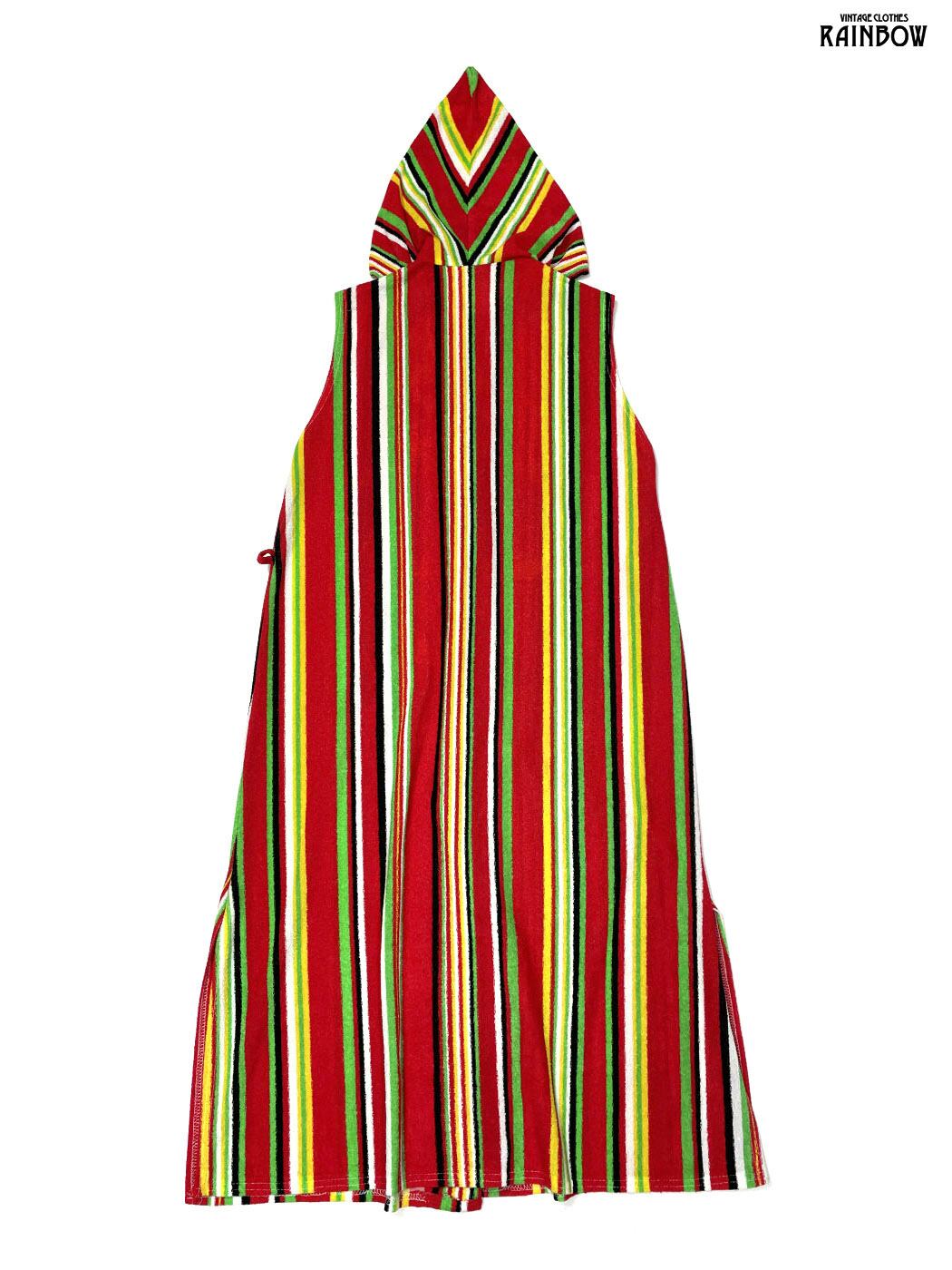 #ワンピース #ノースリーブ #ロング丈 #赤 #ストライプ柄 #前開き #ユニオンメイド #ノースリーブストライプ柄ワンピース