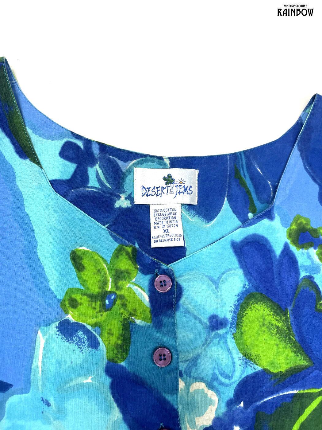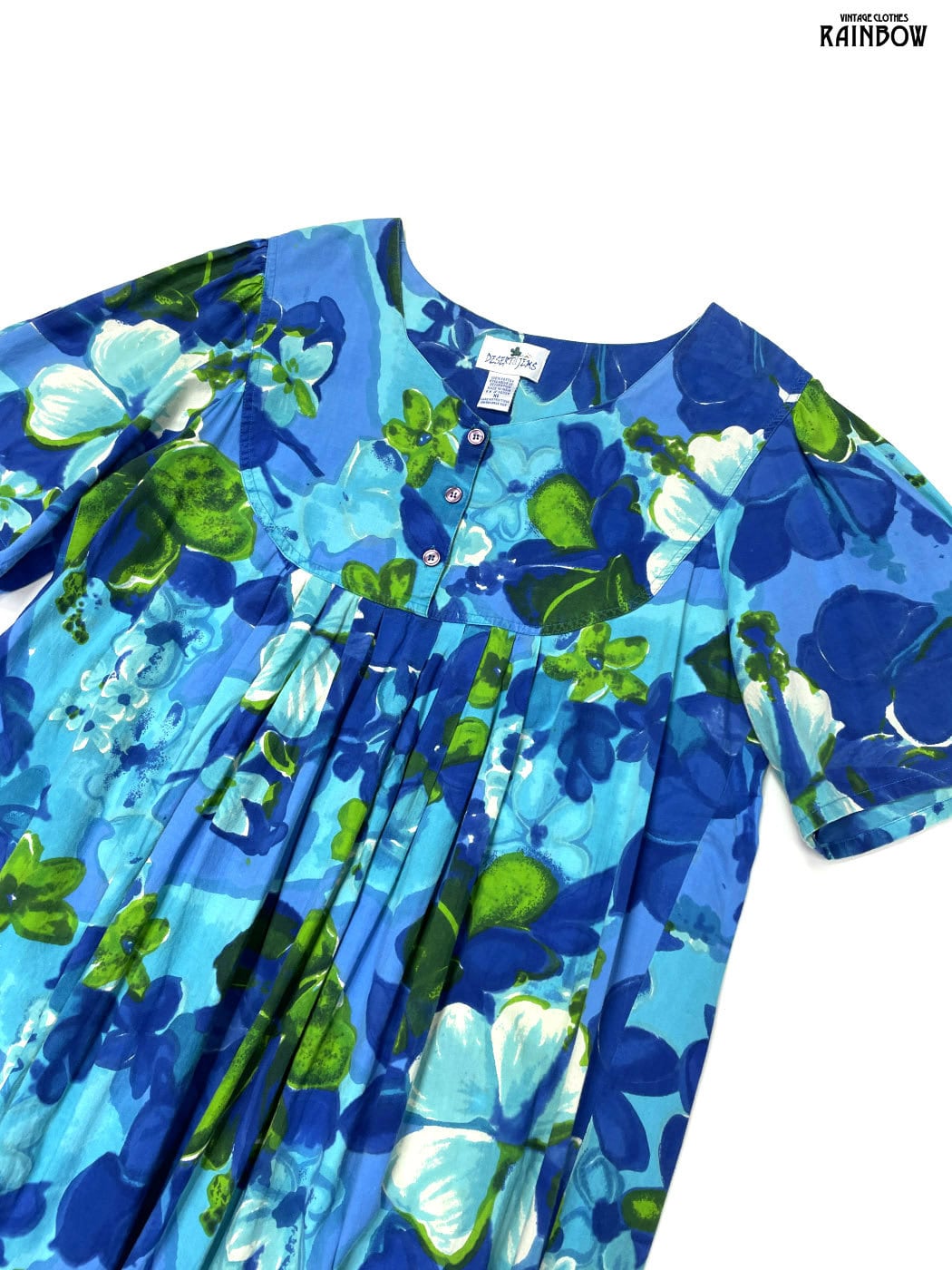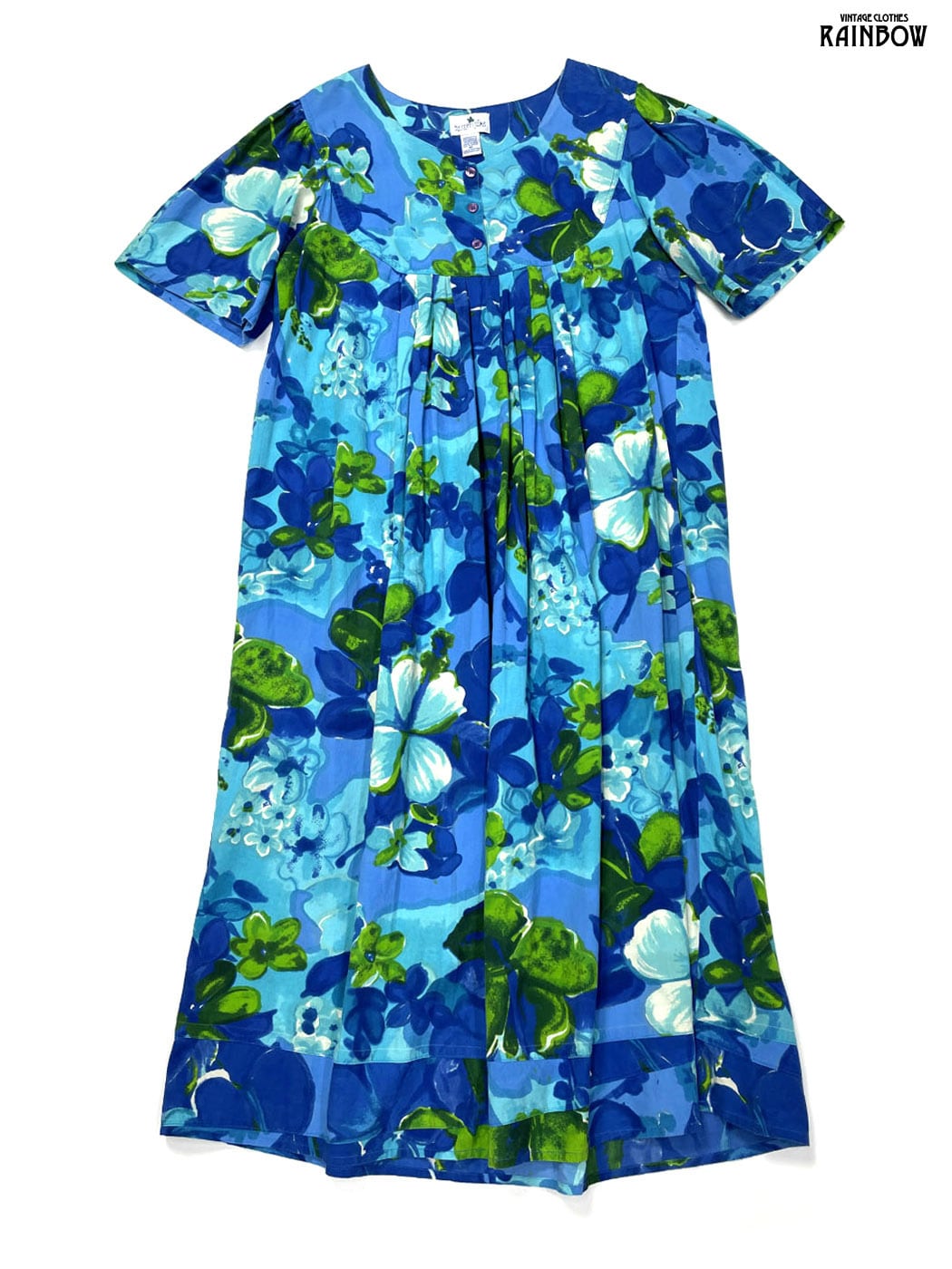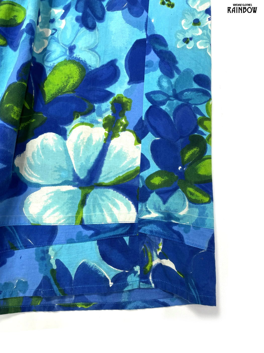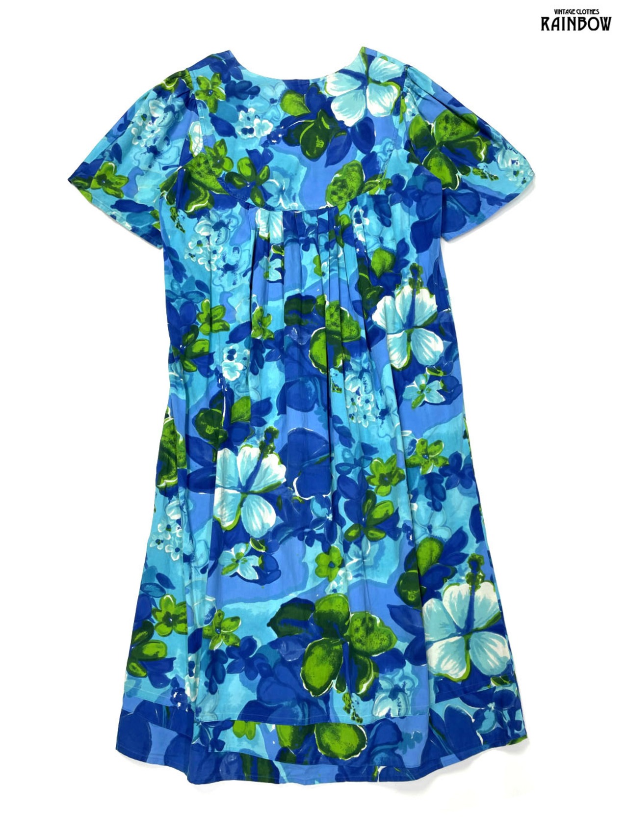 #ワンピース #ハーフスリーブ #ロング丈 #青 #花柄 #コットン #半袖花柄ワンピース