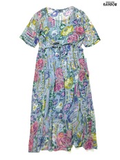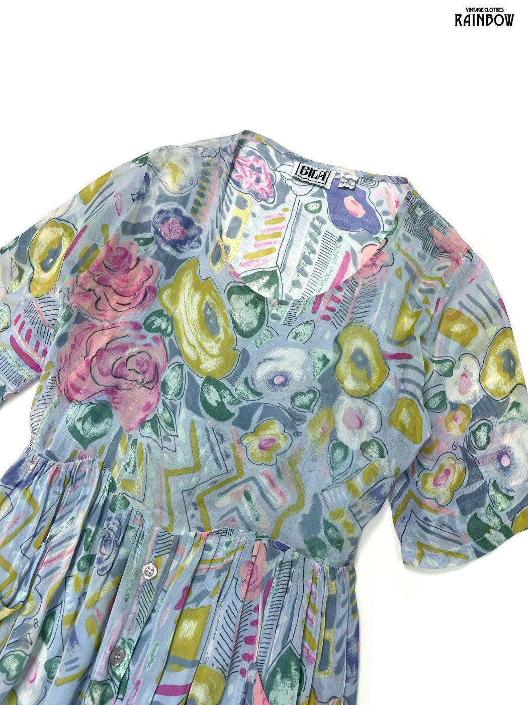 #ワンピース #ハーフスリーブ #ロング丈 #ウエスト切り替え #青 #水色 #花柄 #ガーリー #レーヨン #半袖花柄ワンピース