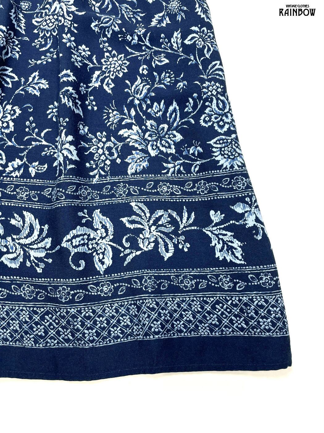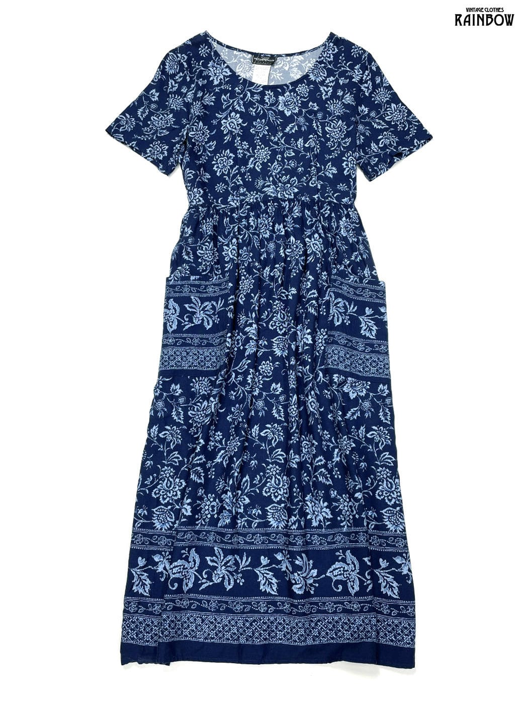 #ワンピース #ハーフスリーブ #ロング丈 #ウエスト切り替え #紺 #花柄 #クラシック #レーヨン #半袖花柄ワンピース