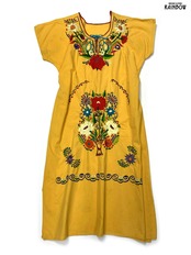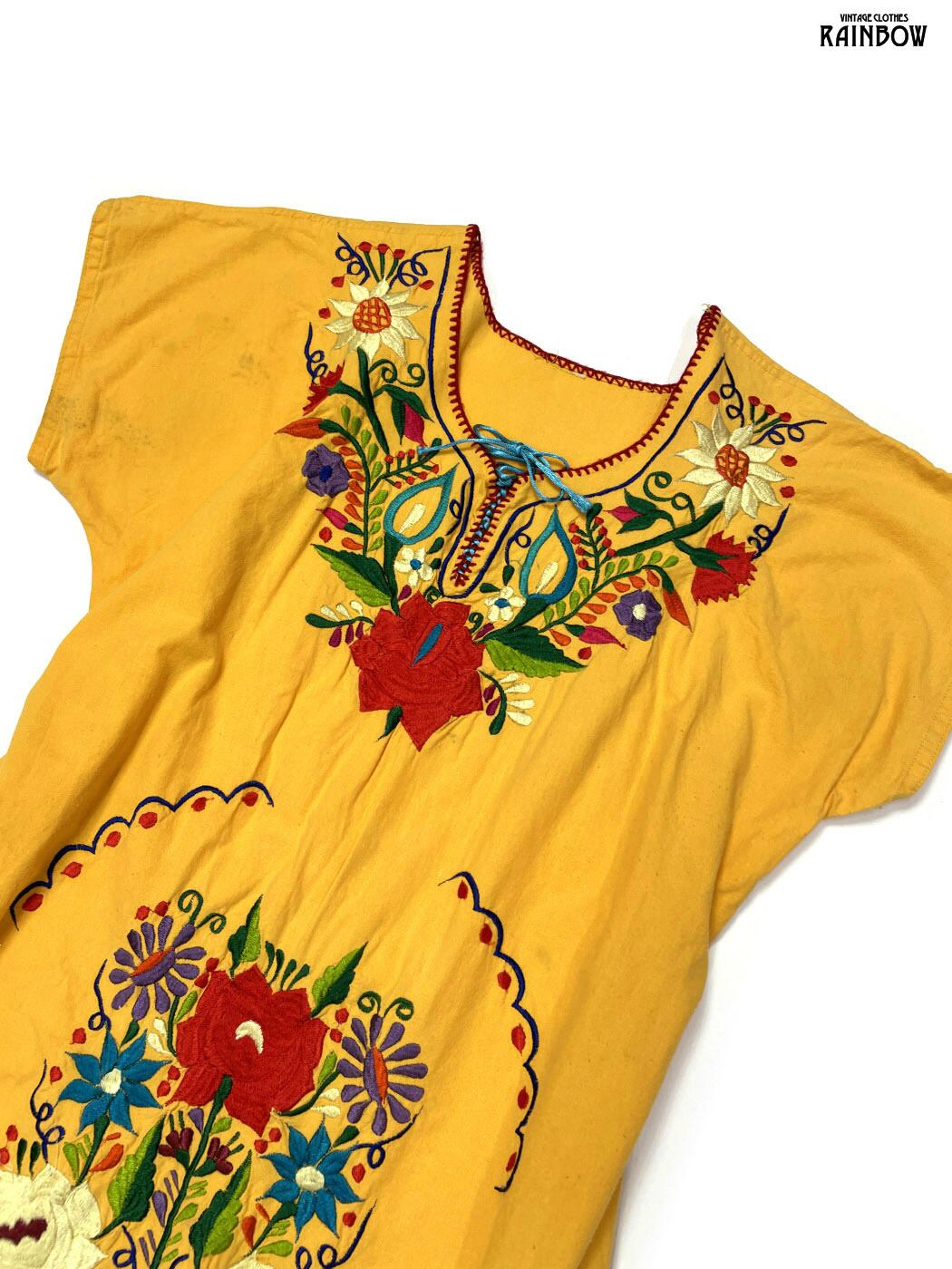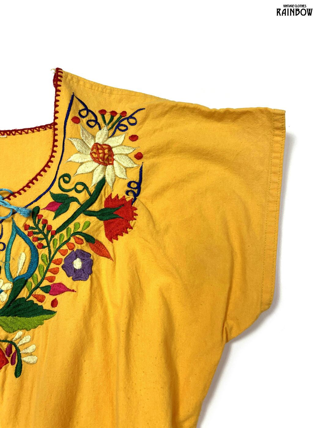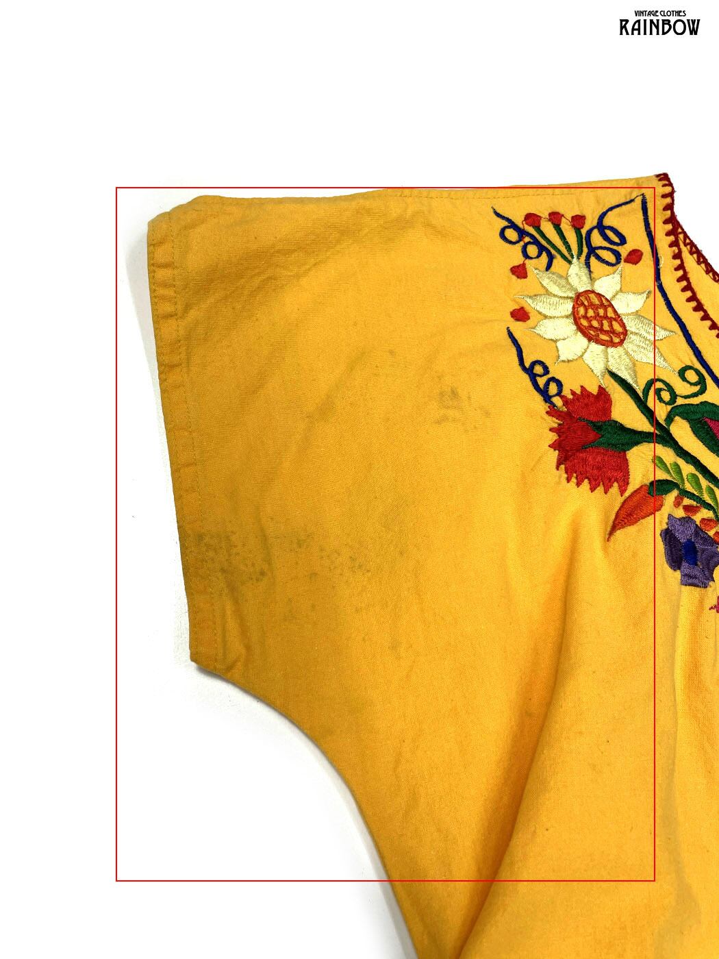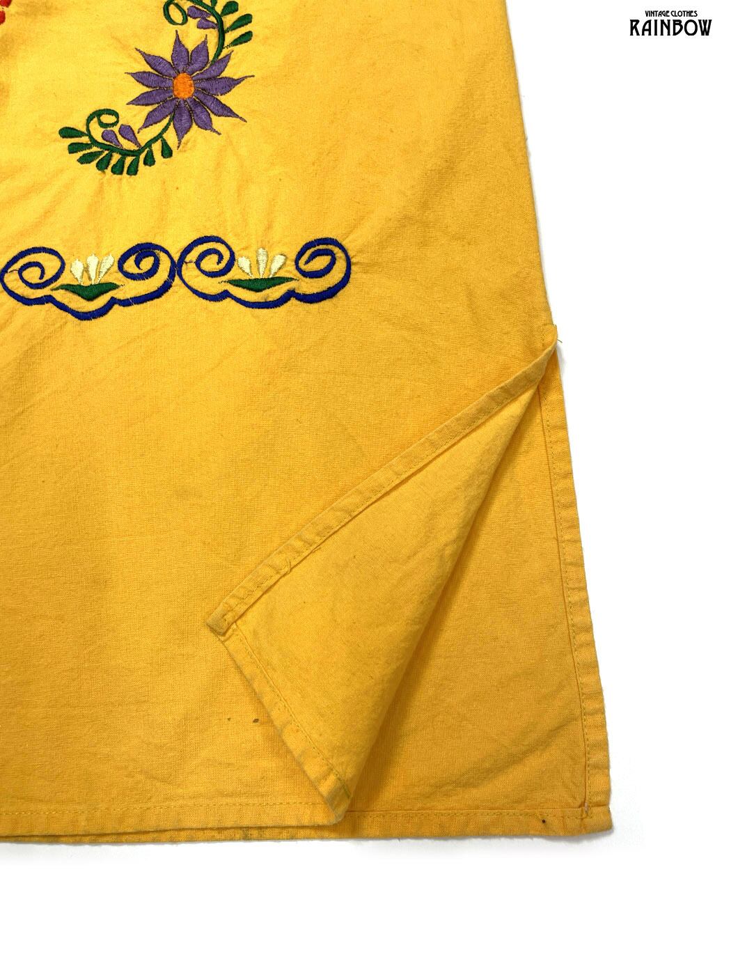 #ワンピース #ハーフスリーブ #ロング丈 #黄 #花柄 #刺繍 #ヴィンテージ #コットン #刺繍ワンピース
