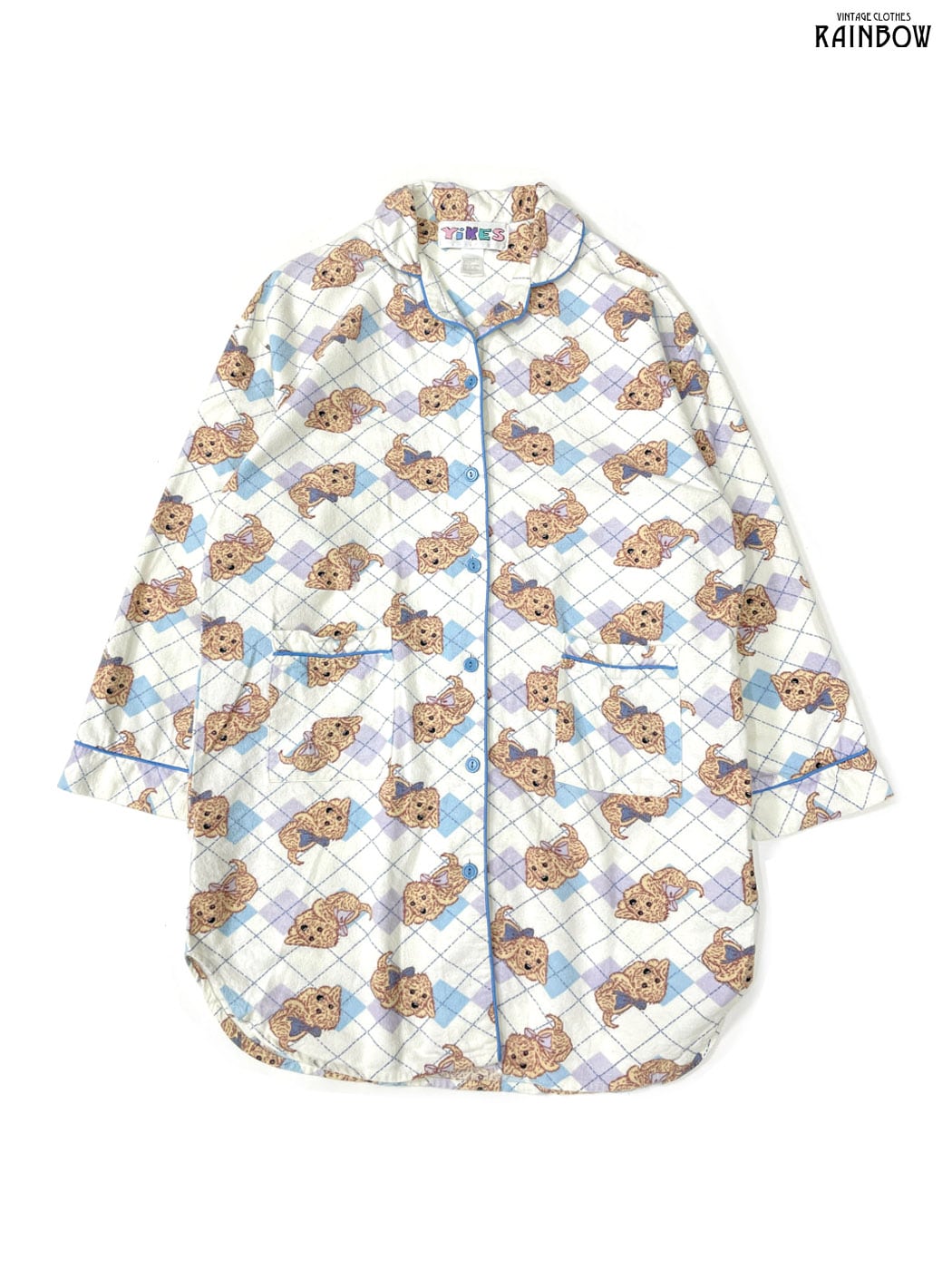 #ブラウス #シャツ #ロングスリーブ #白 #水色 #チェック柄 #総柄 #犬 #前開き #ガーリー #コットン #柄シャツ