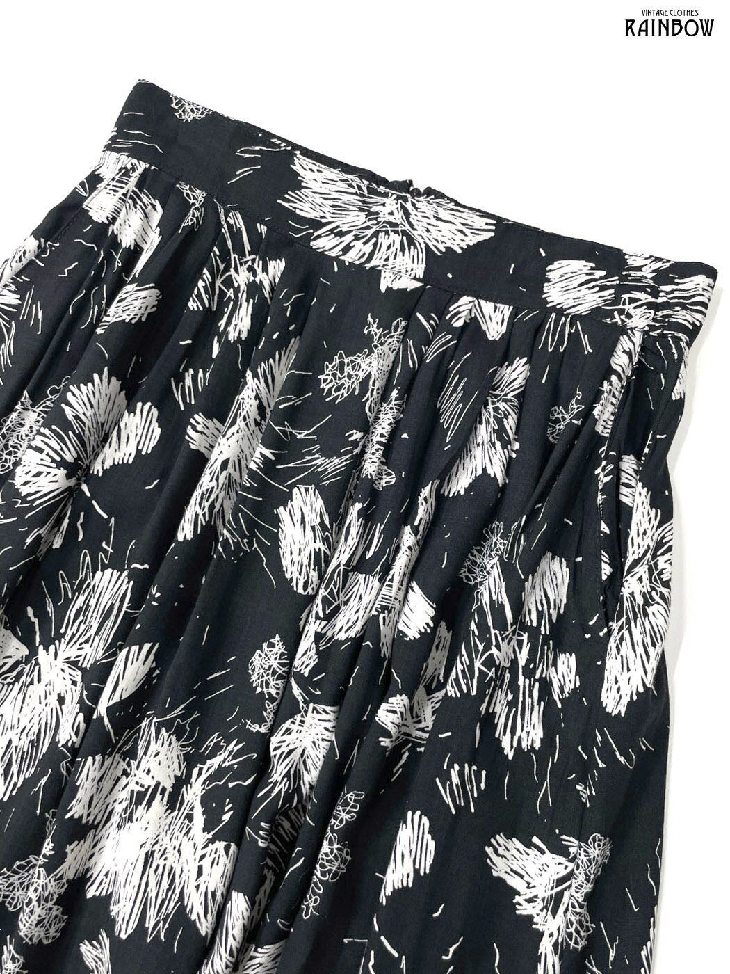 #スカート #ロング丈 #黒 #総柄 #クラシック #レーヨン #秋冬柄スカート