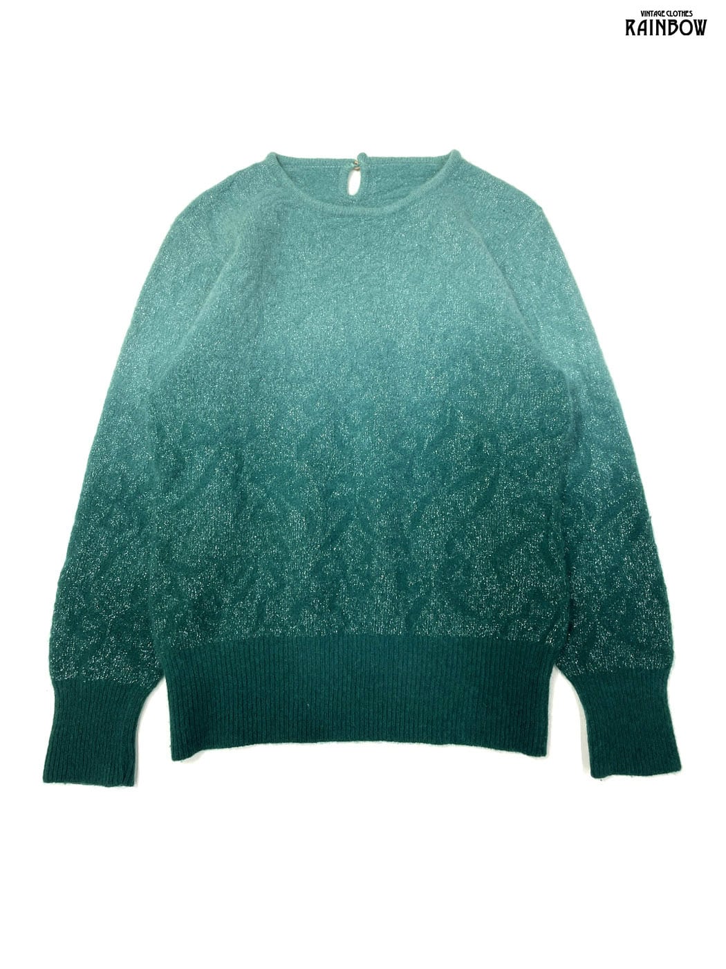 #ニット #セーター #ロングスリーブ #緑 #無地 #グラデーション #ニット地 #無地セーター