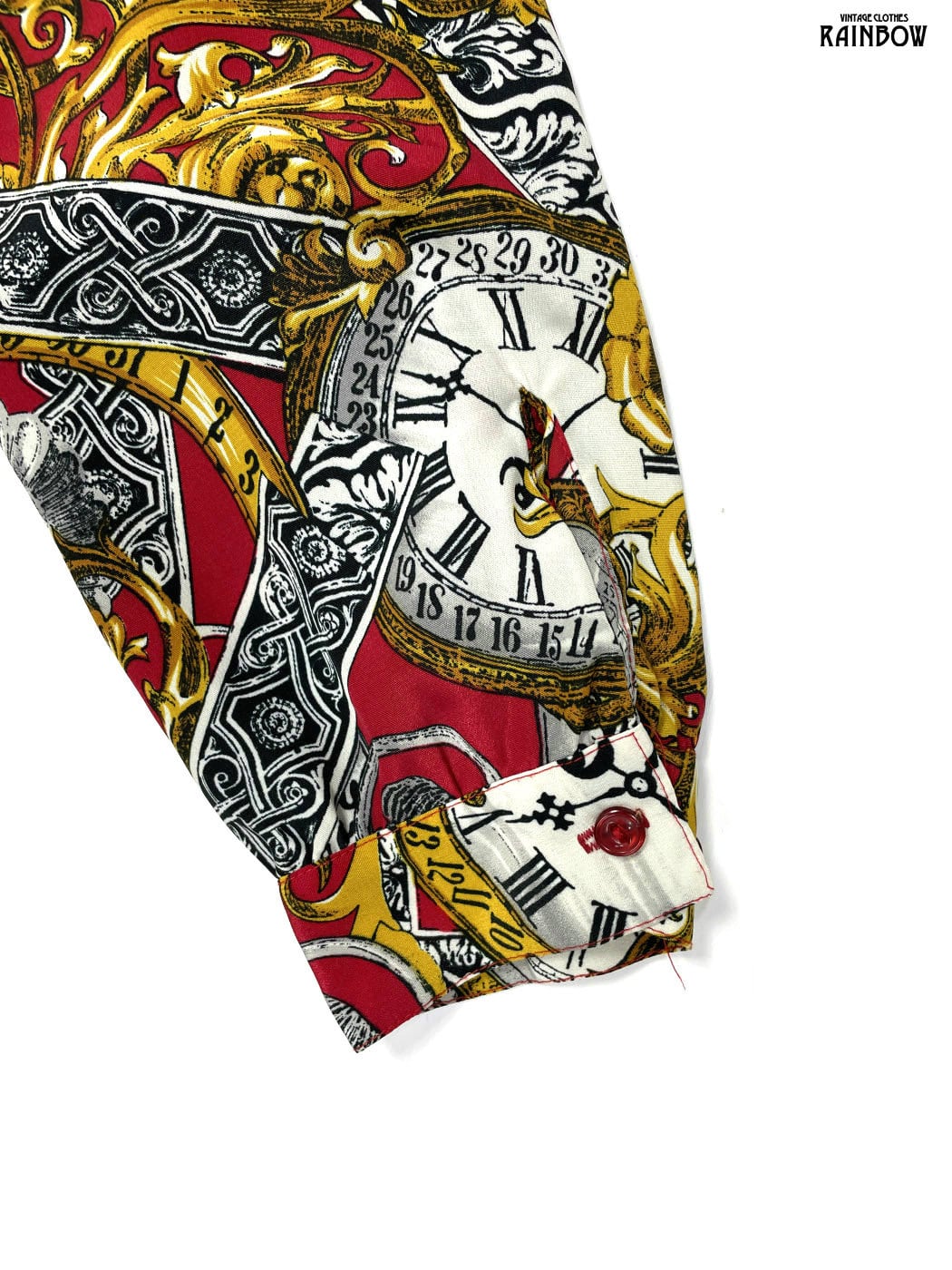 #ブラウス #bブラウス #ロングスリーブ #赤 #総柄 #時計 #クラシック #柄シャツ