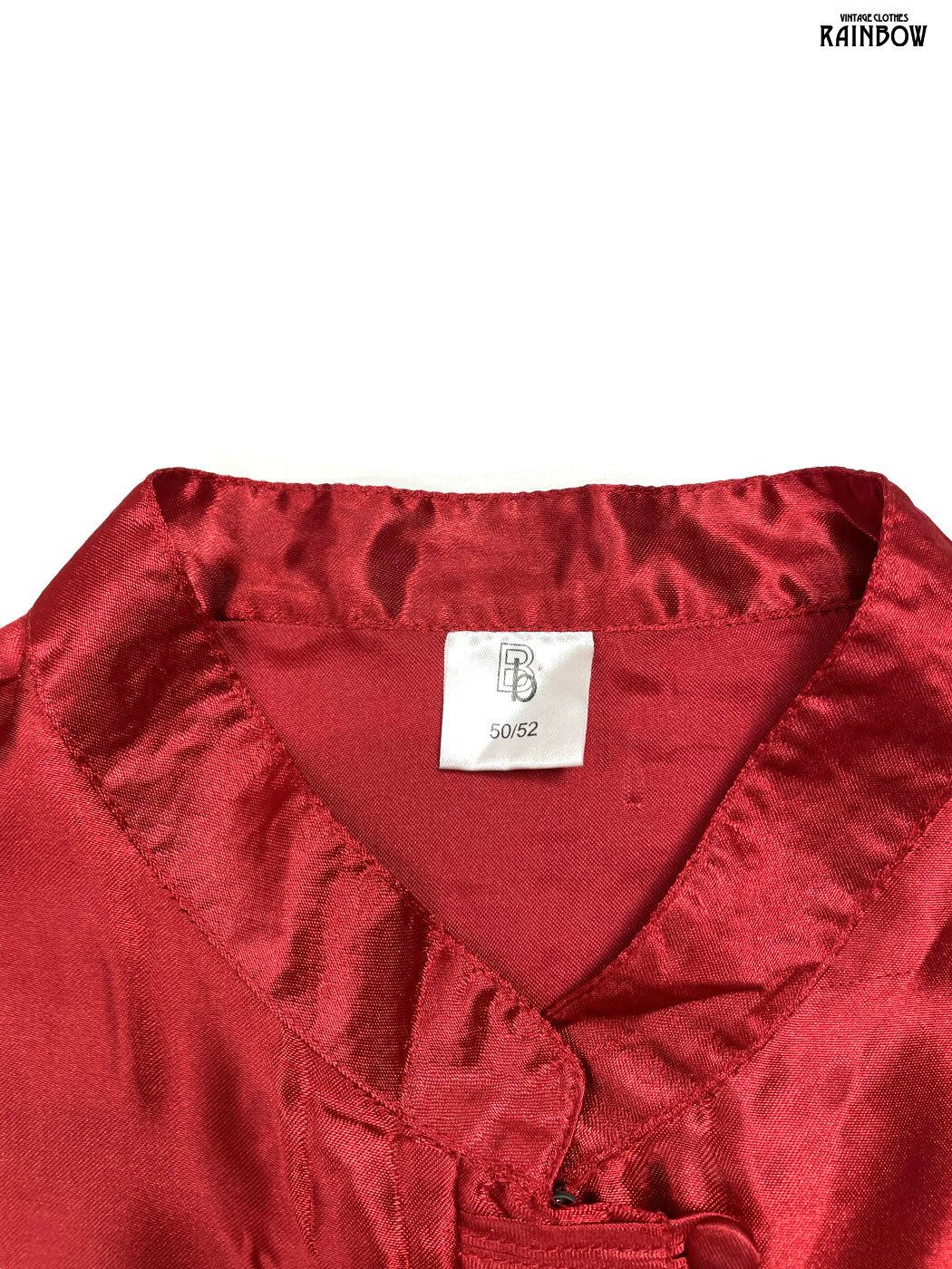 #ブラウス #シャツ #ロングスリーブ #赤 #総柄 #竹 #笹 #チャイナボタン #クラシック #サテン #サテンシャツ