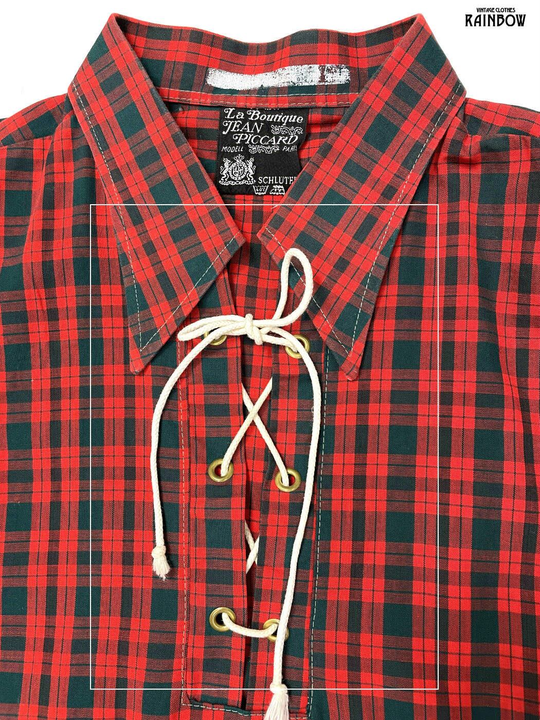 #ブラウス #シャツ #ロングスリーブ #赤 #チェック柄 #リボン #コットン #チェック柄シャツ