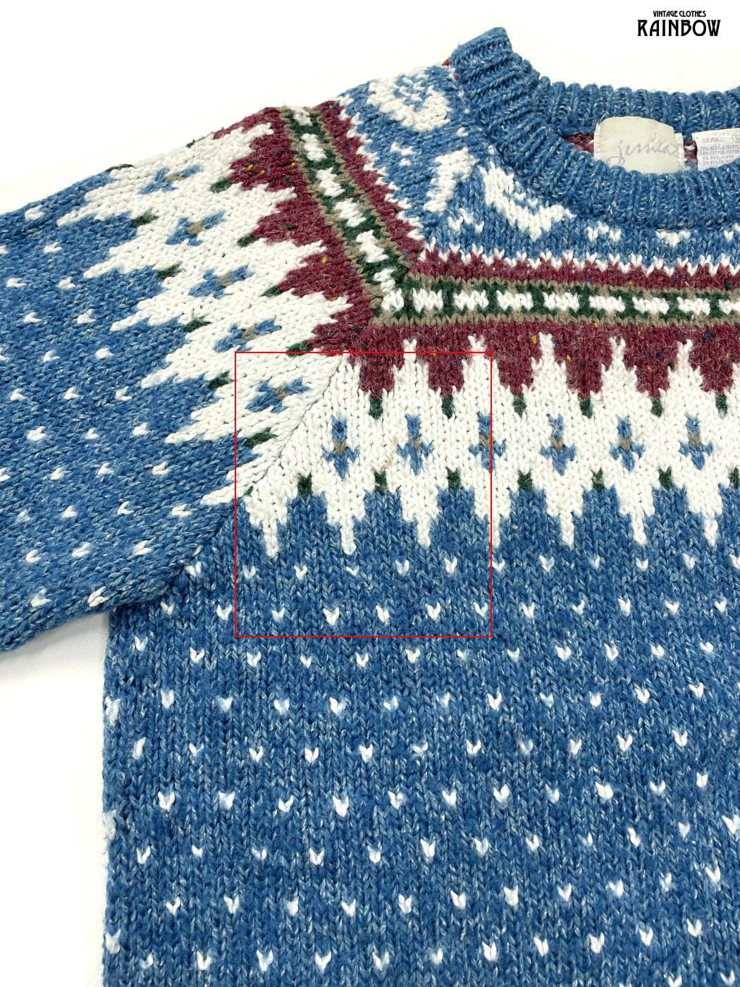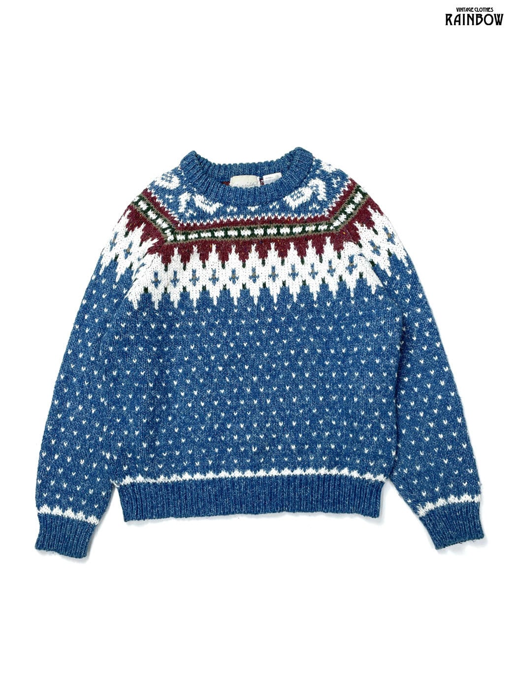 #ニット #セーター #ロングスリーブ #青 #総柄 #ノルディック柄 #ニット地 #ノルディック柄ニット
