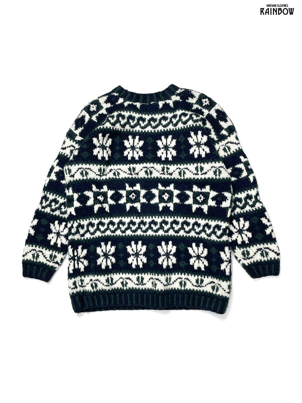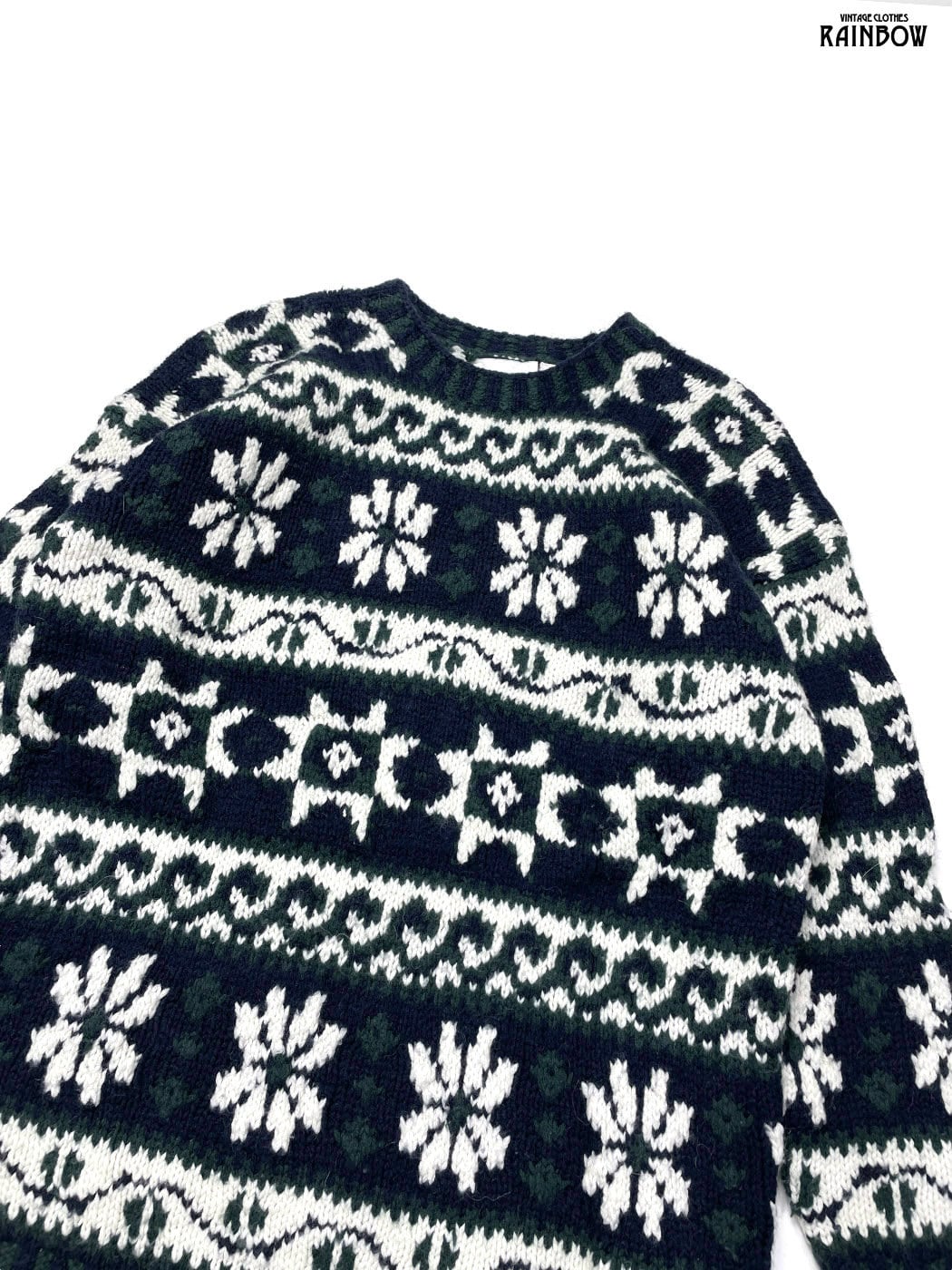 #ニット #セーター #ロングスリーブ #紺 #総柄 #ノルディック柄 #ウール #ニット地 #ノルディック柄ニット