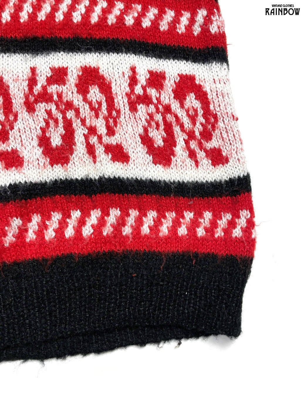 #ニット #セーター #ロングスリーブ #黒 #赤 #総柄 #ノルディック柄 #ニット地 #ノルディック柄ニット