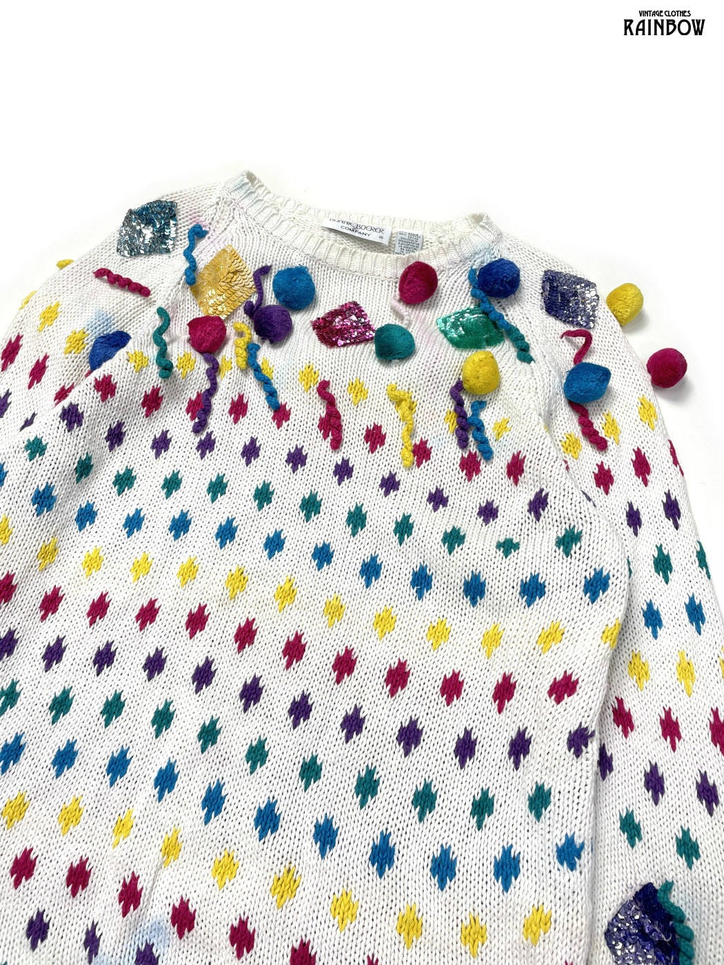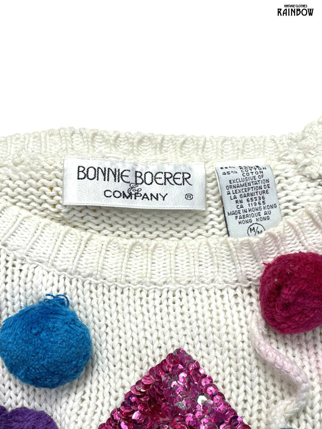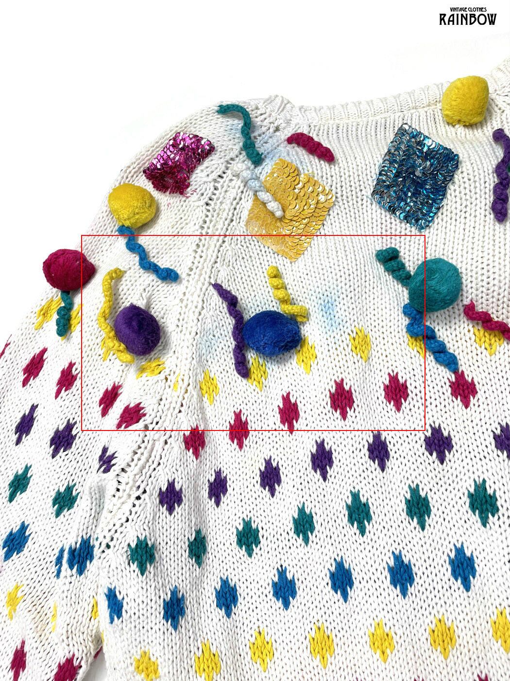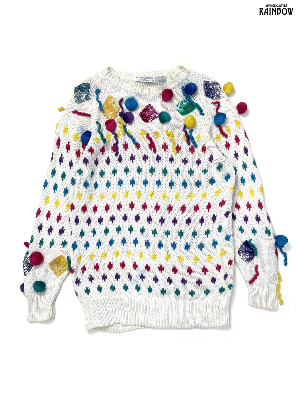 古着 BONNIE BOERER スパンコール ポンポン 総柄 長袖 ニット セーター カラフル (ttu2508139)