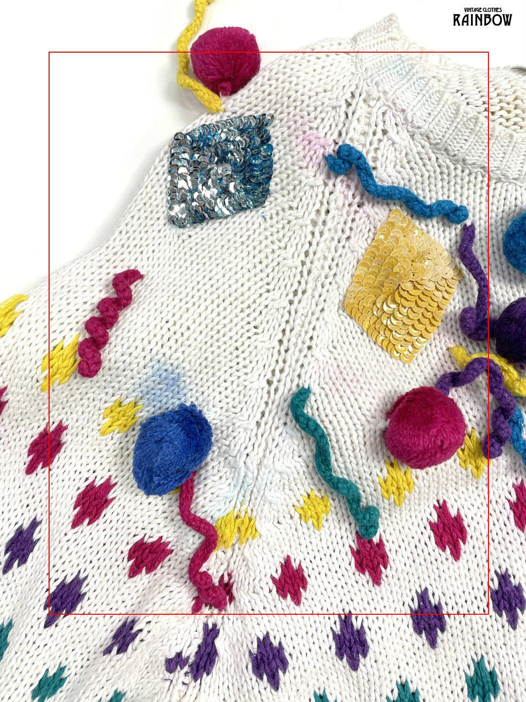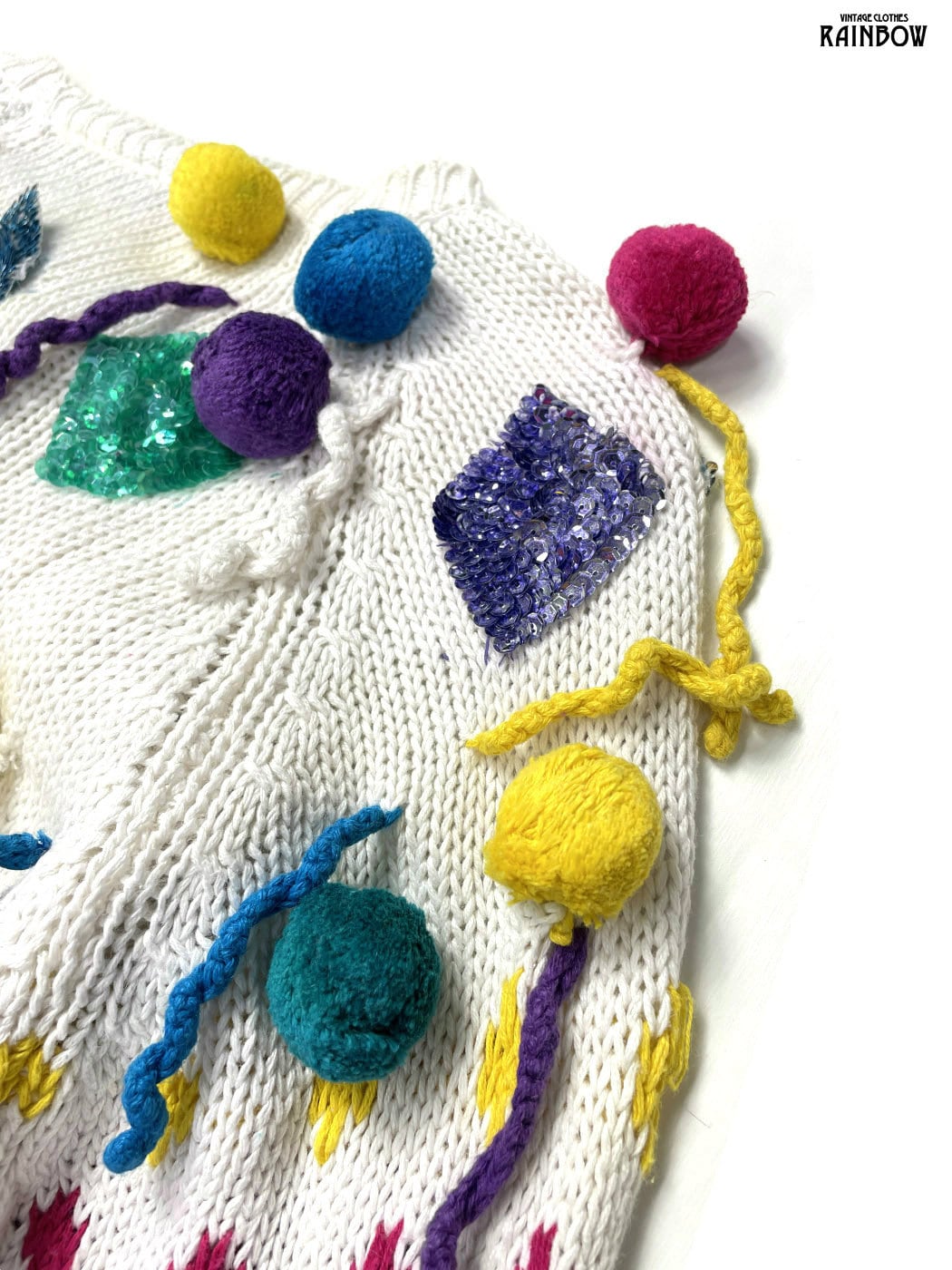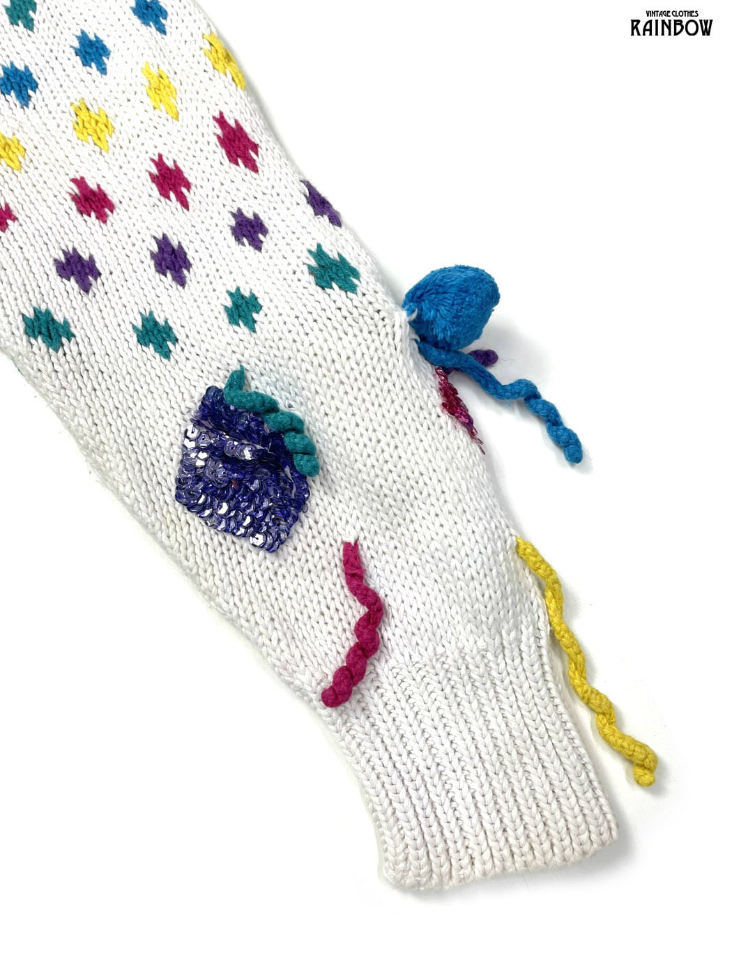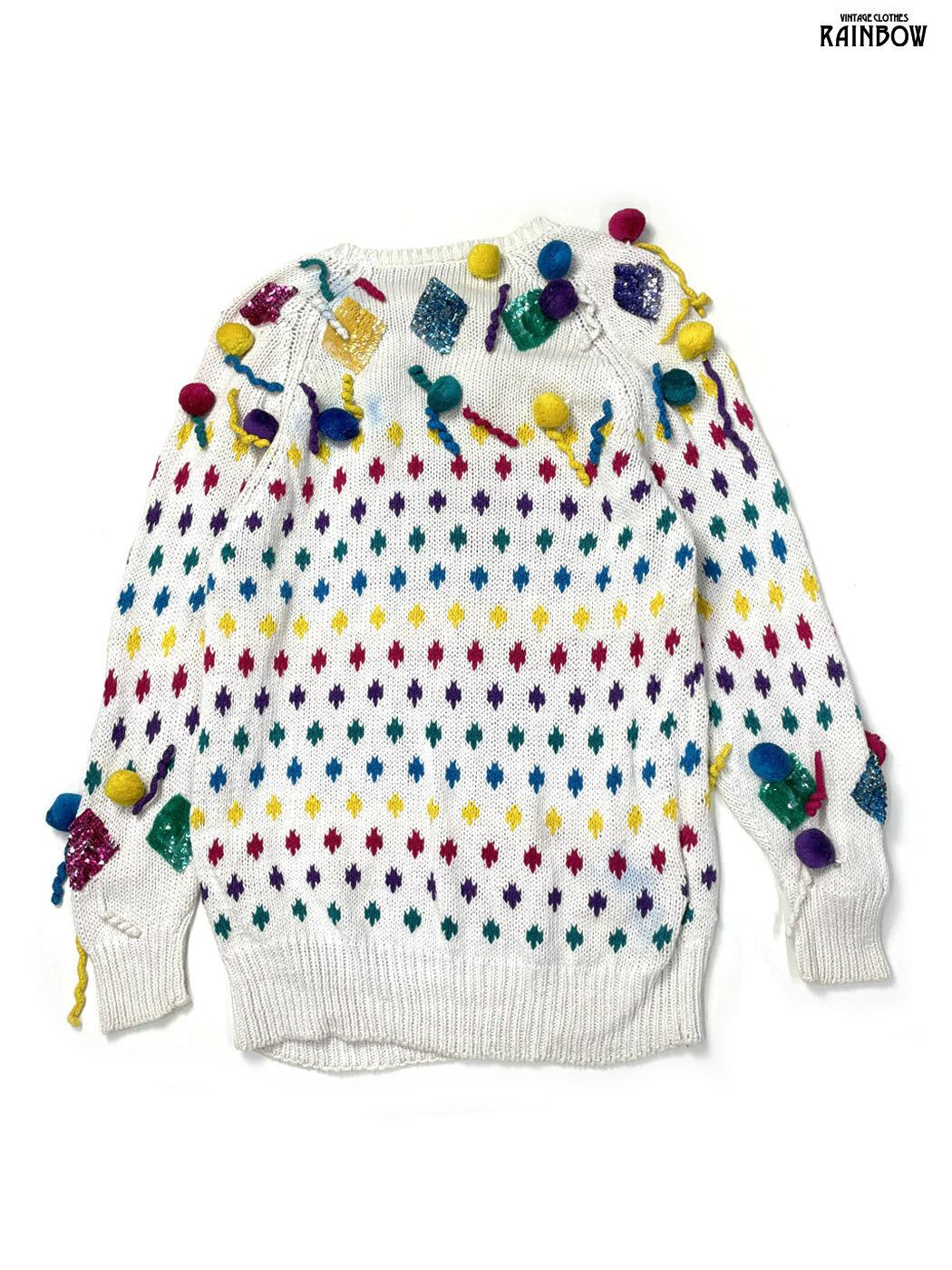 古着 BONNIE BOERER スパンコール ポンポン 総柄 長袖 ニット セーター カラフル (ttu2508139)