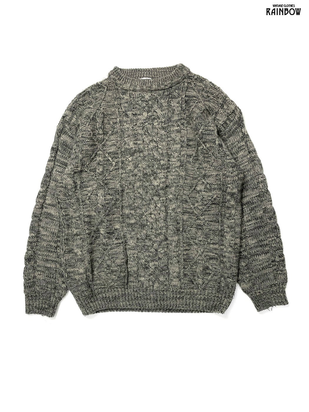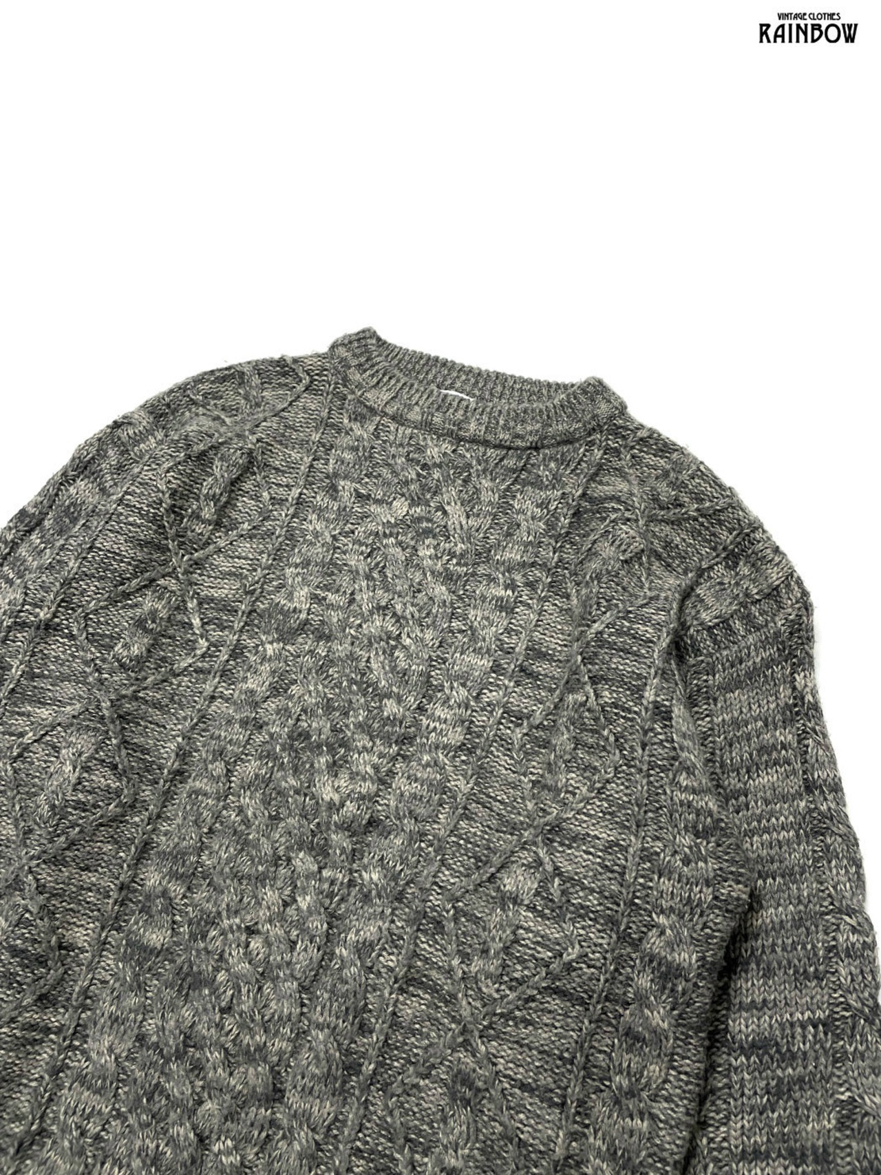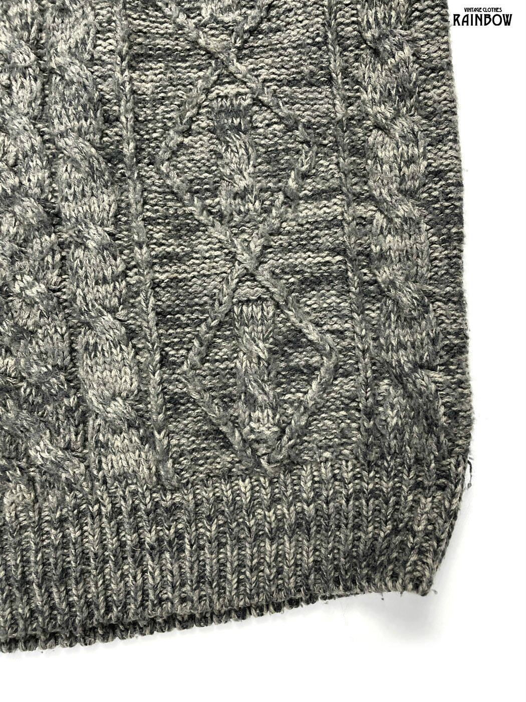#ニット #セーター #ロングスリーブ #グレー #無地 #ケーブル編み #ニット地 #フィッシャーマンニット