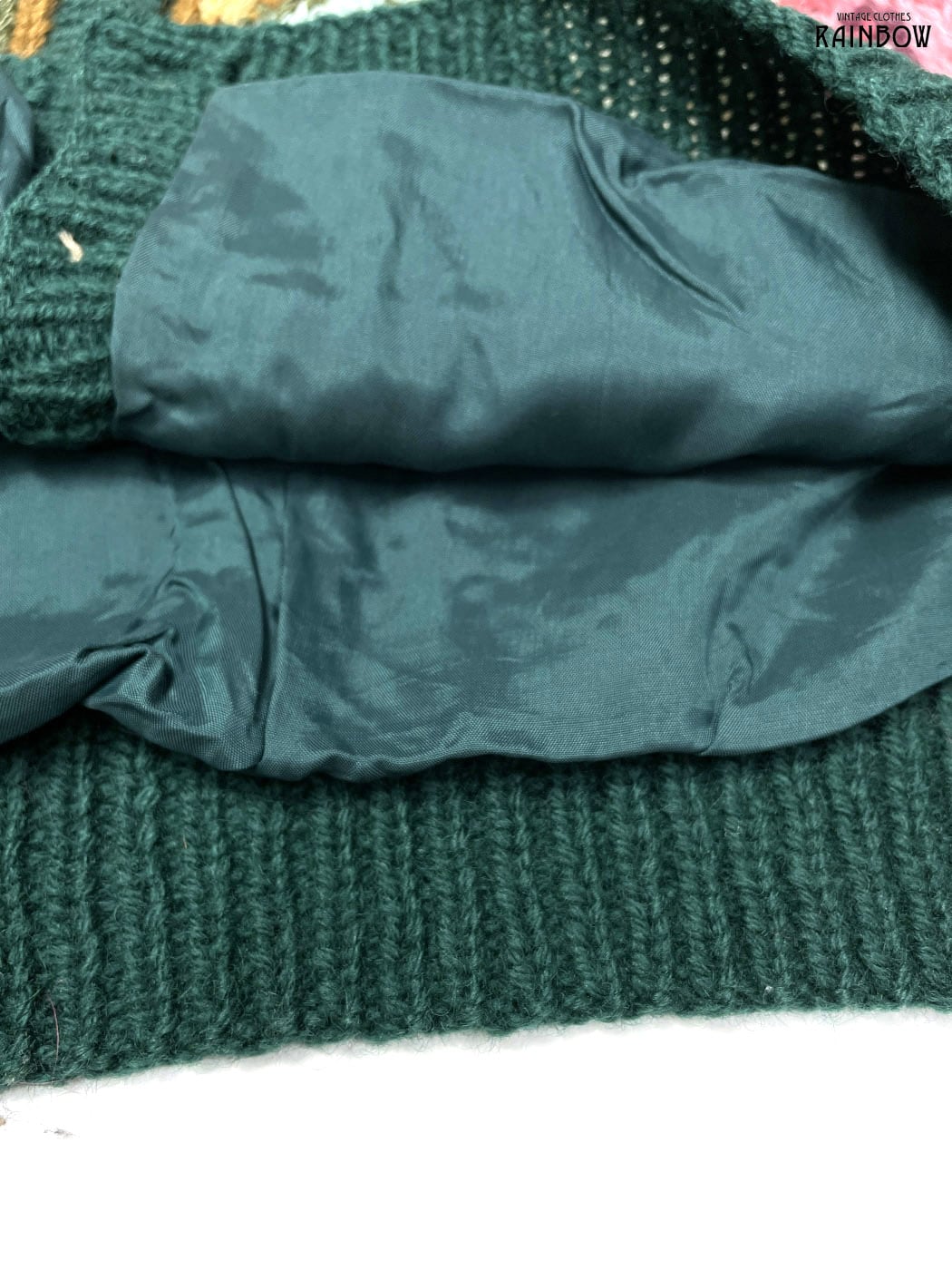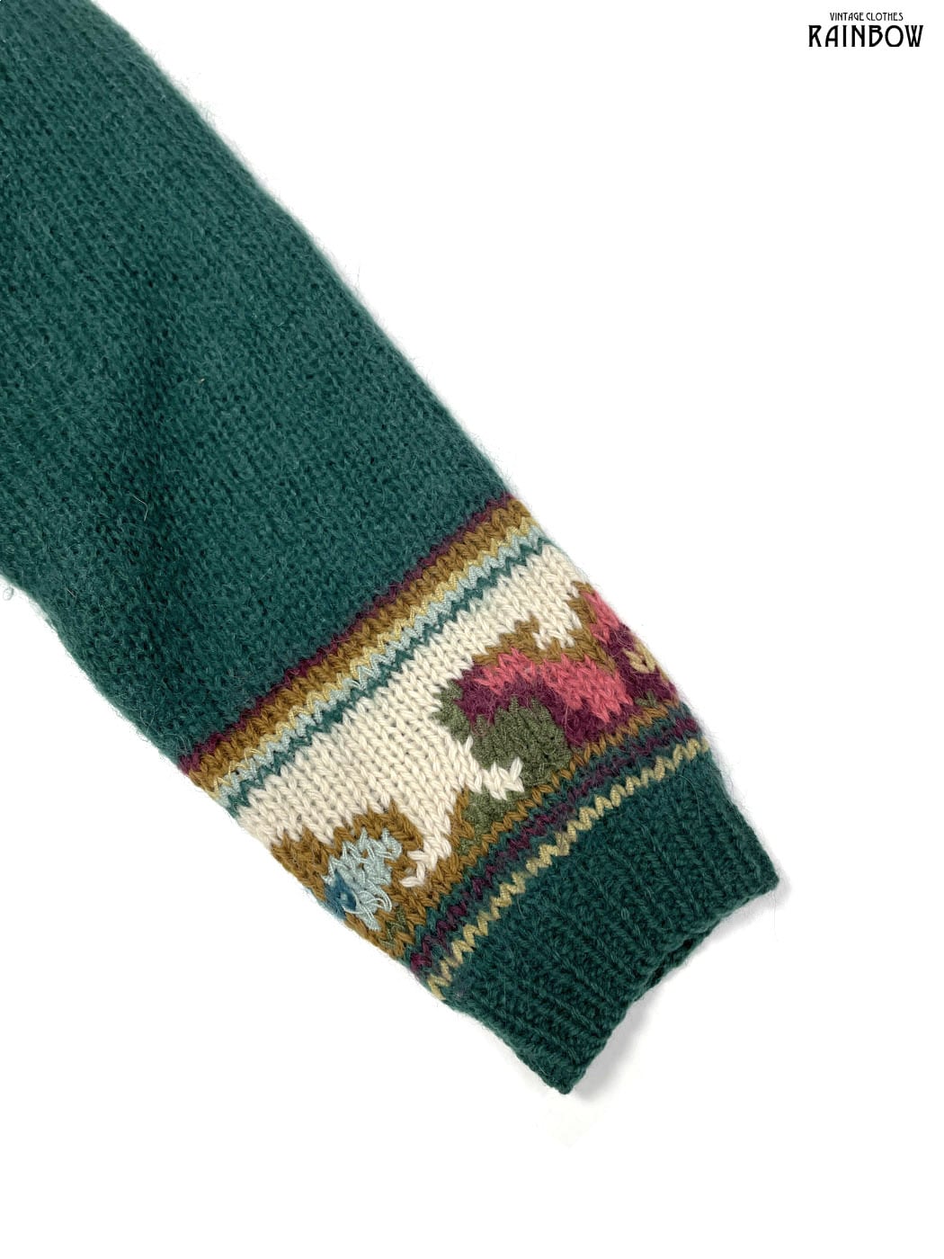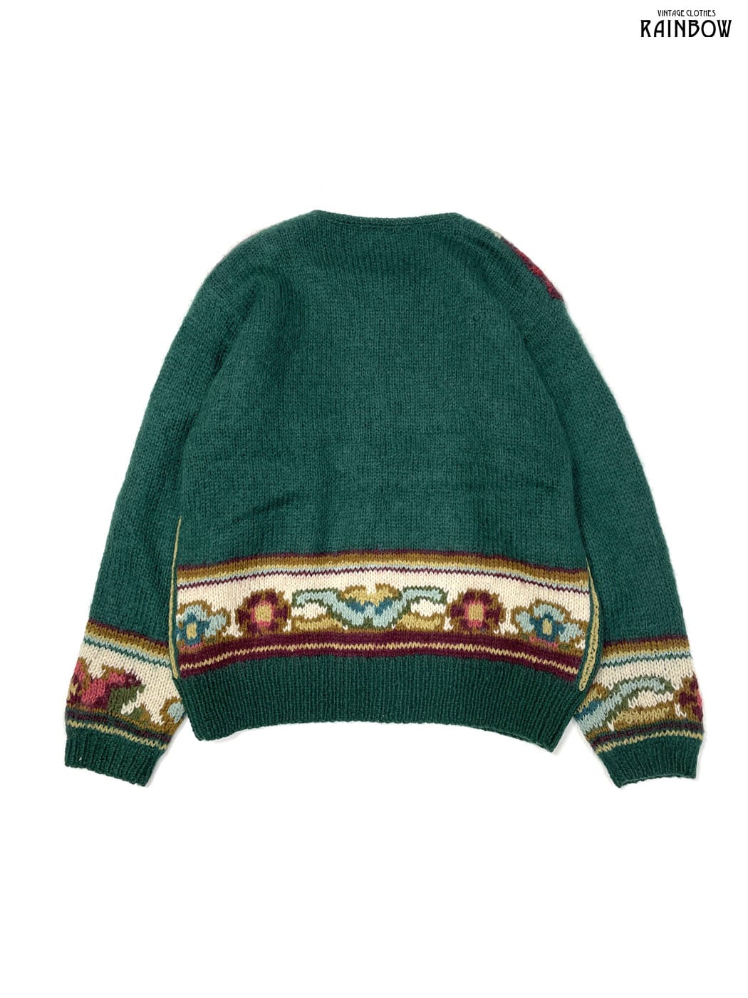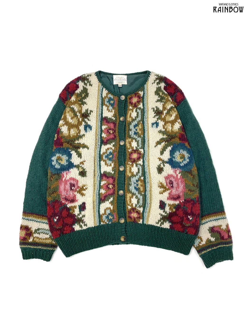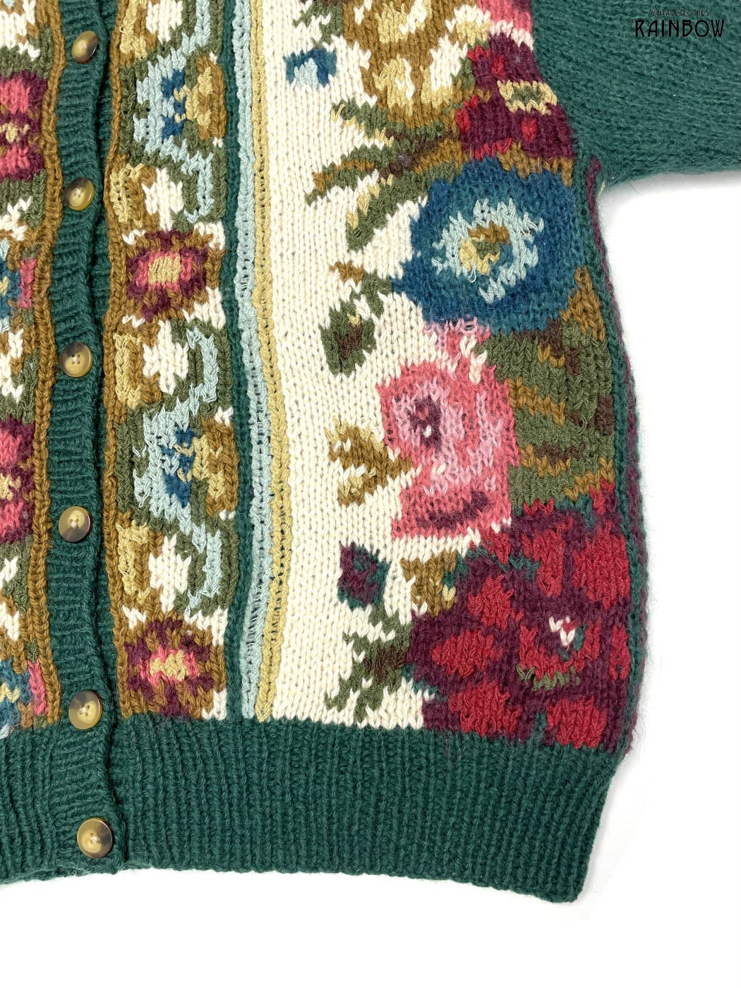 #ニット #カーディガン #ロングスリーブ #緑 #花柄 #クラシック #ウール #柄カーディガン