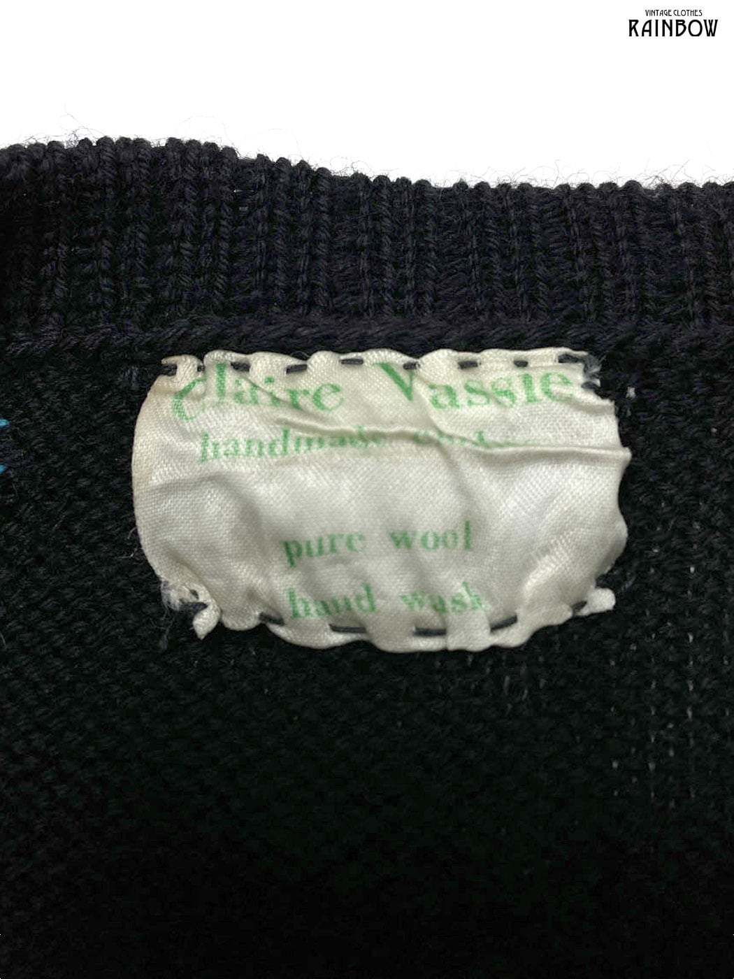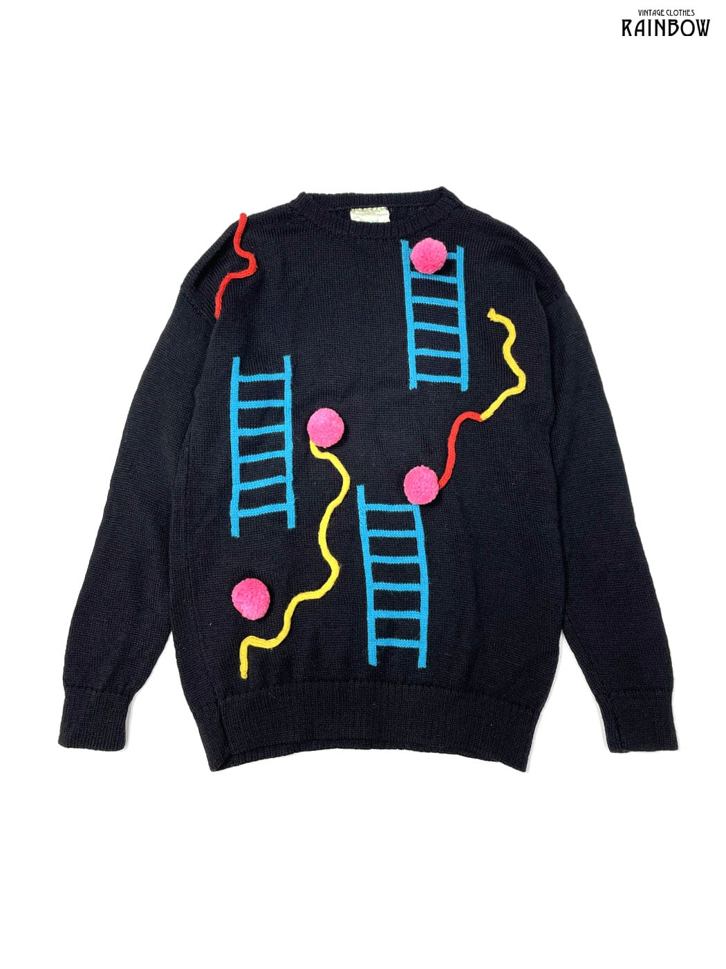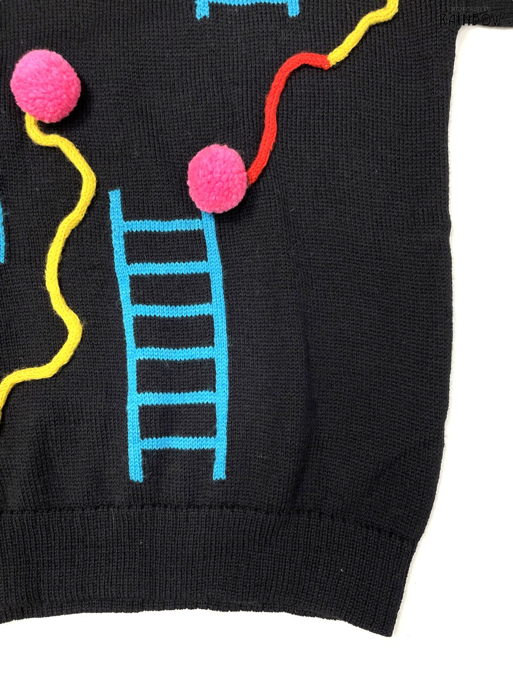 #ニット #セーター #ロングスリーブ #黒 #総柄 #ポンポン #ピュアウール #柄セーター