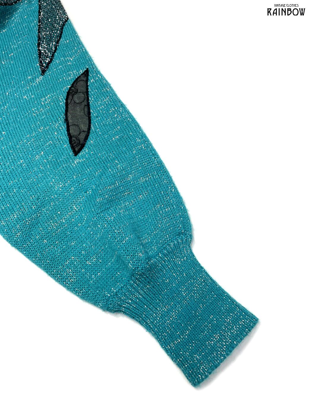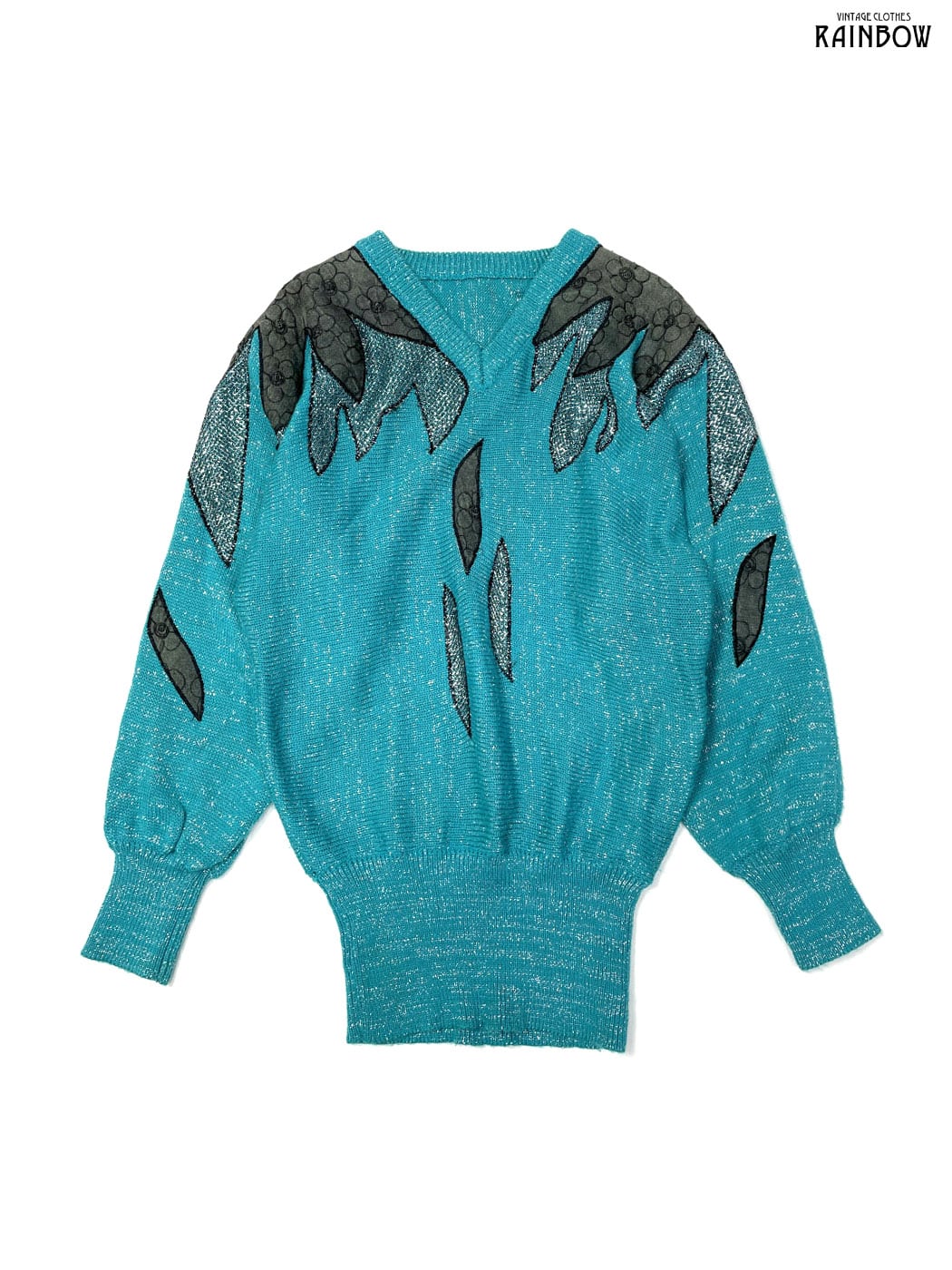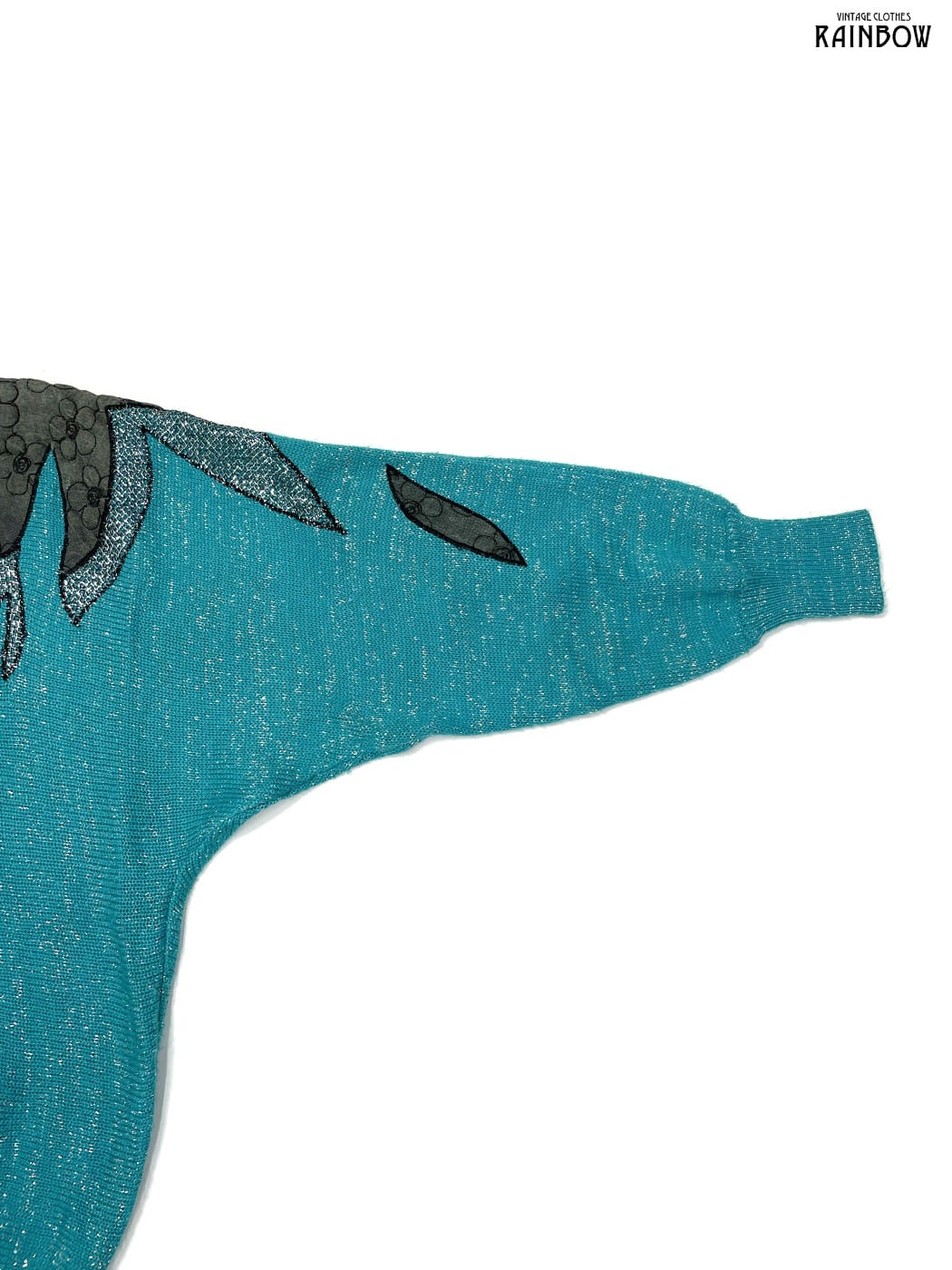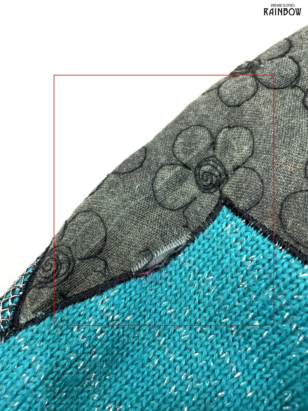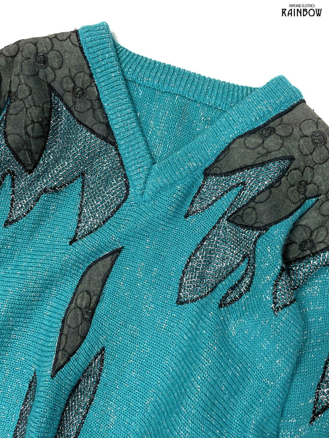 #ニット #セーター #ロングスリーブ #緑 #総柄 #刺繍 #Ⅴネック #ニット地 #柄セーター