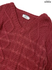 #ニット #セーター #ロングスリーブ #赤 #無地 #イタリア製 #ケーブル編み #ニット地 #無地セーター