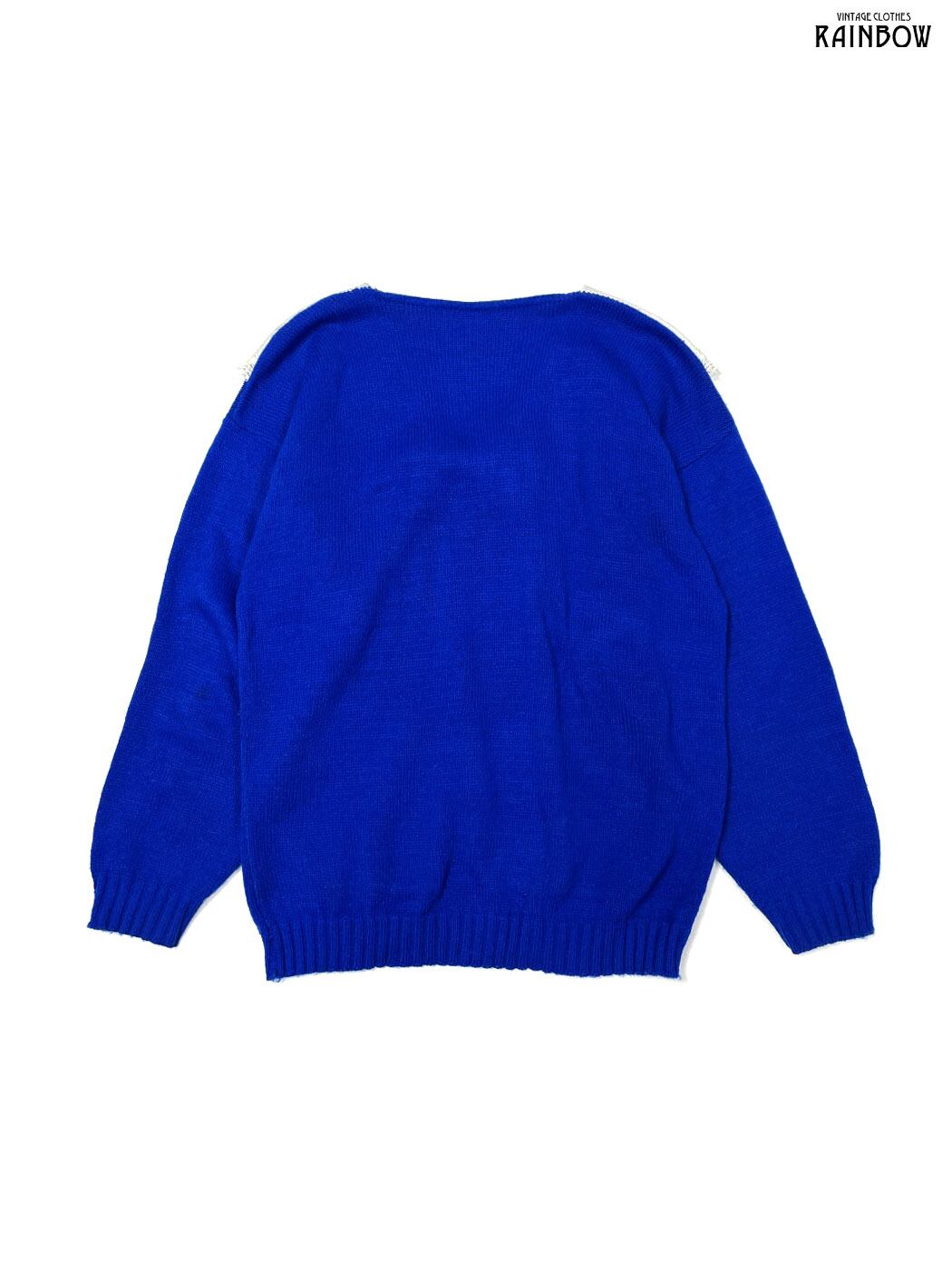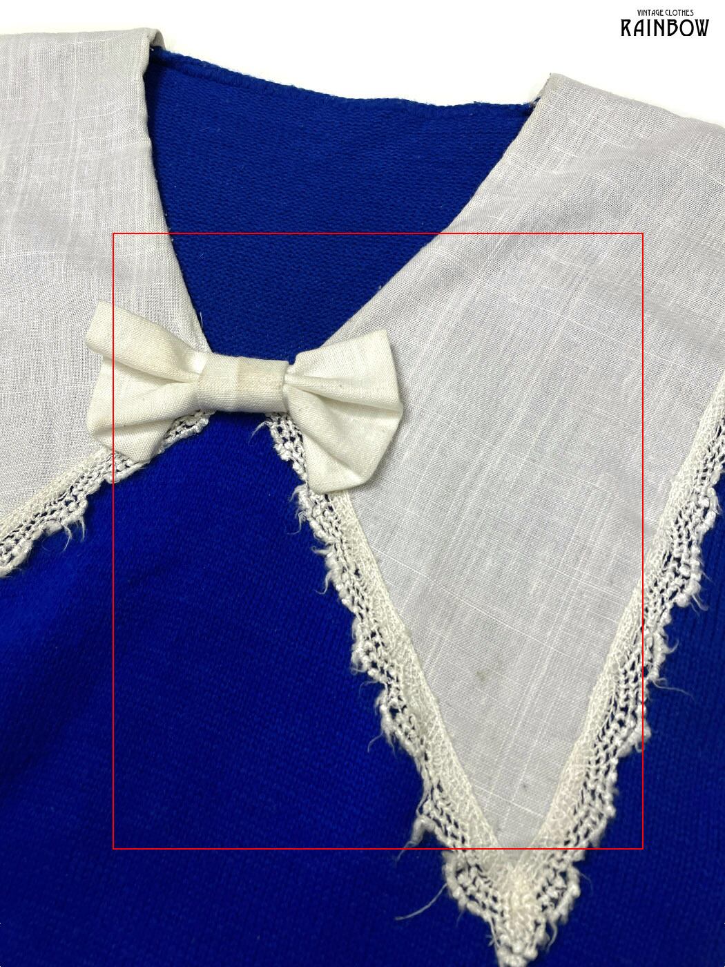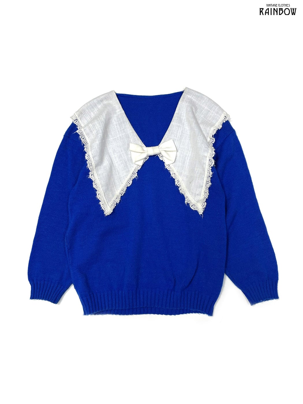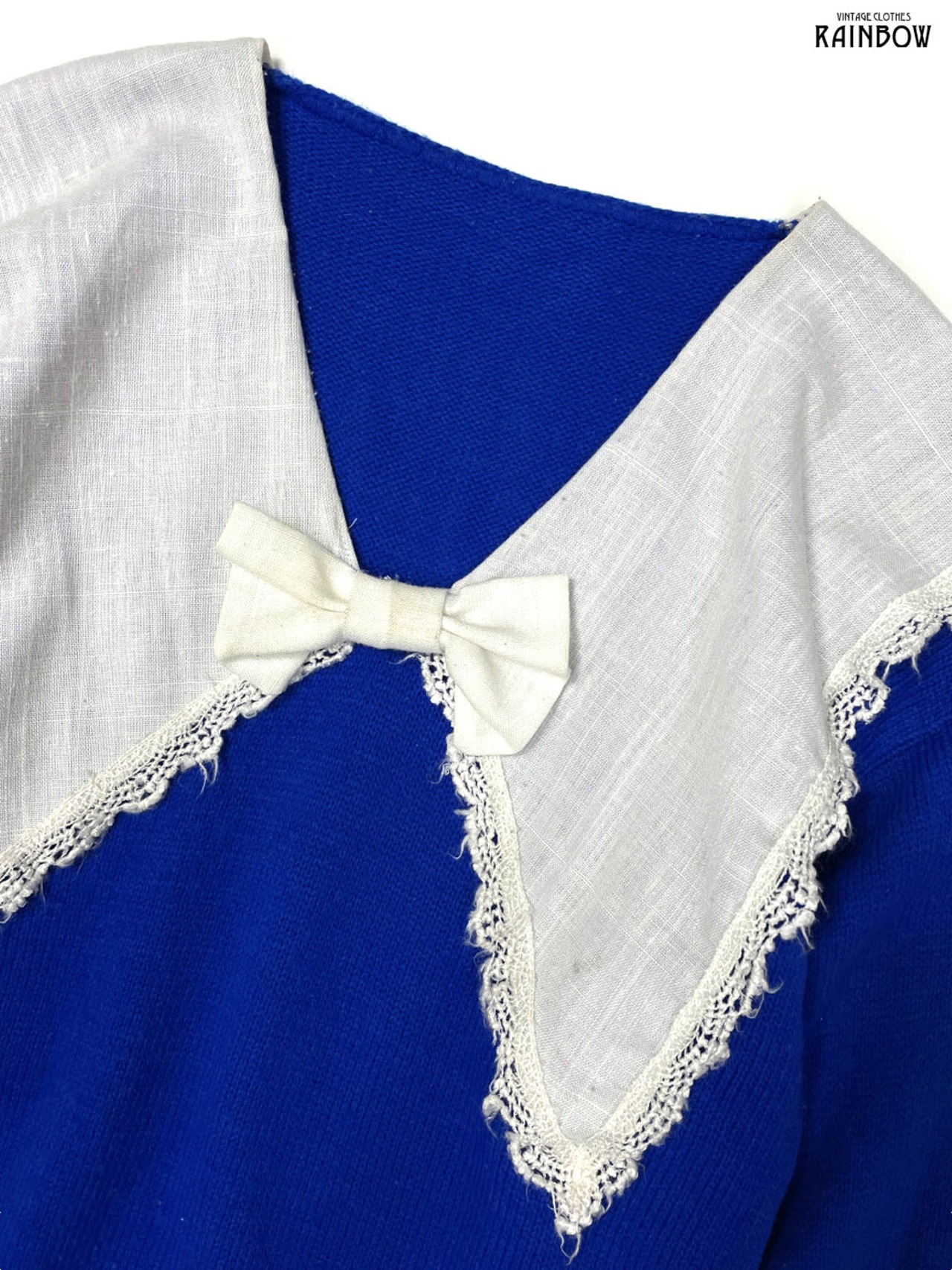#ニット #セーター #ロングスリーブ #青 #無地 #アメリカ製 #リボン #レース #セーラーカラー #ニット地 #無地セーター