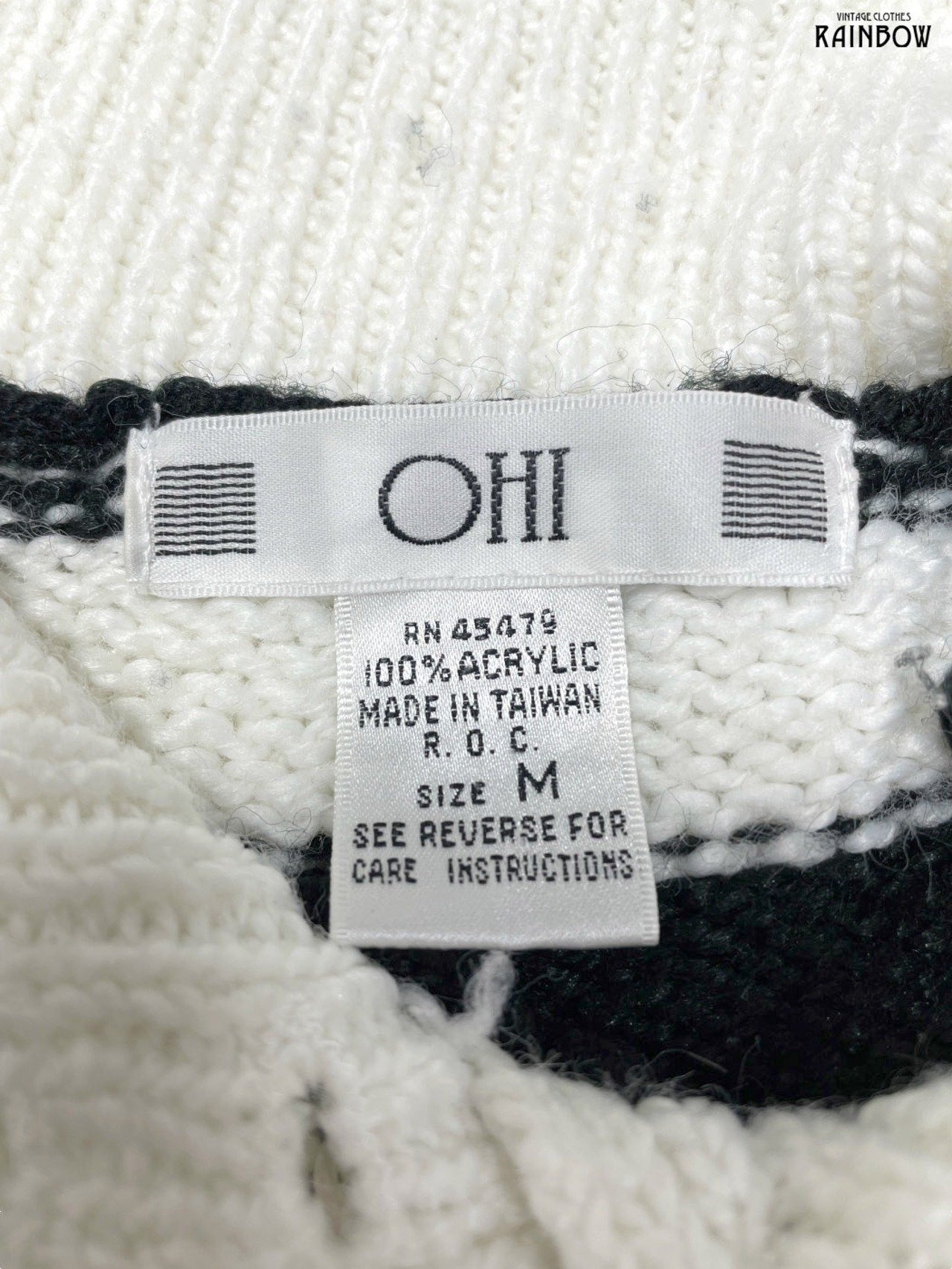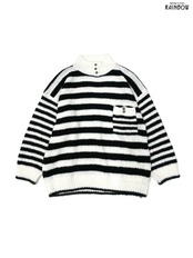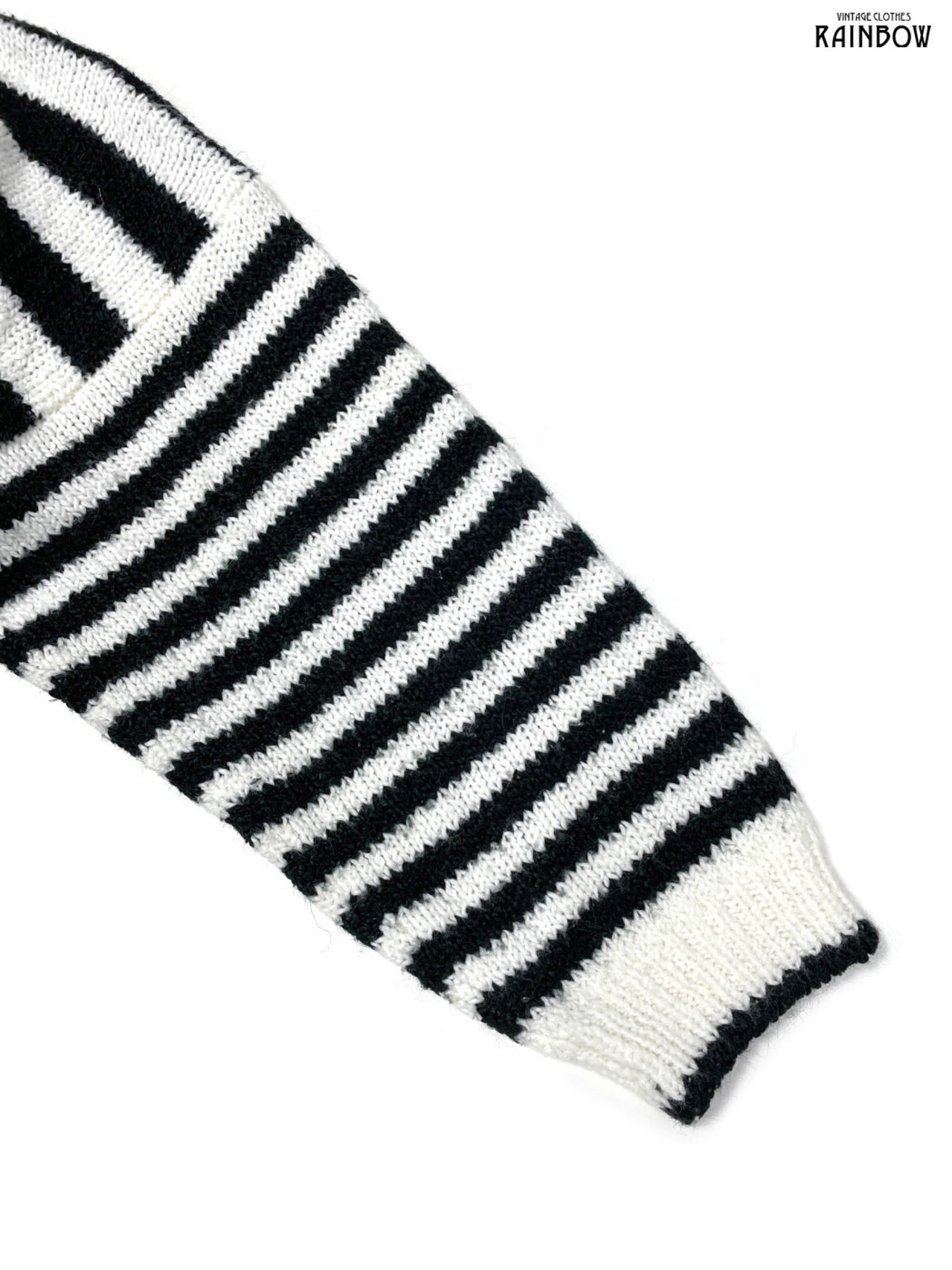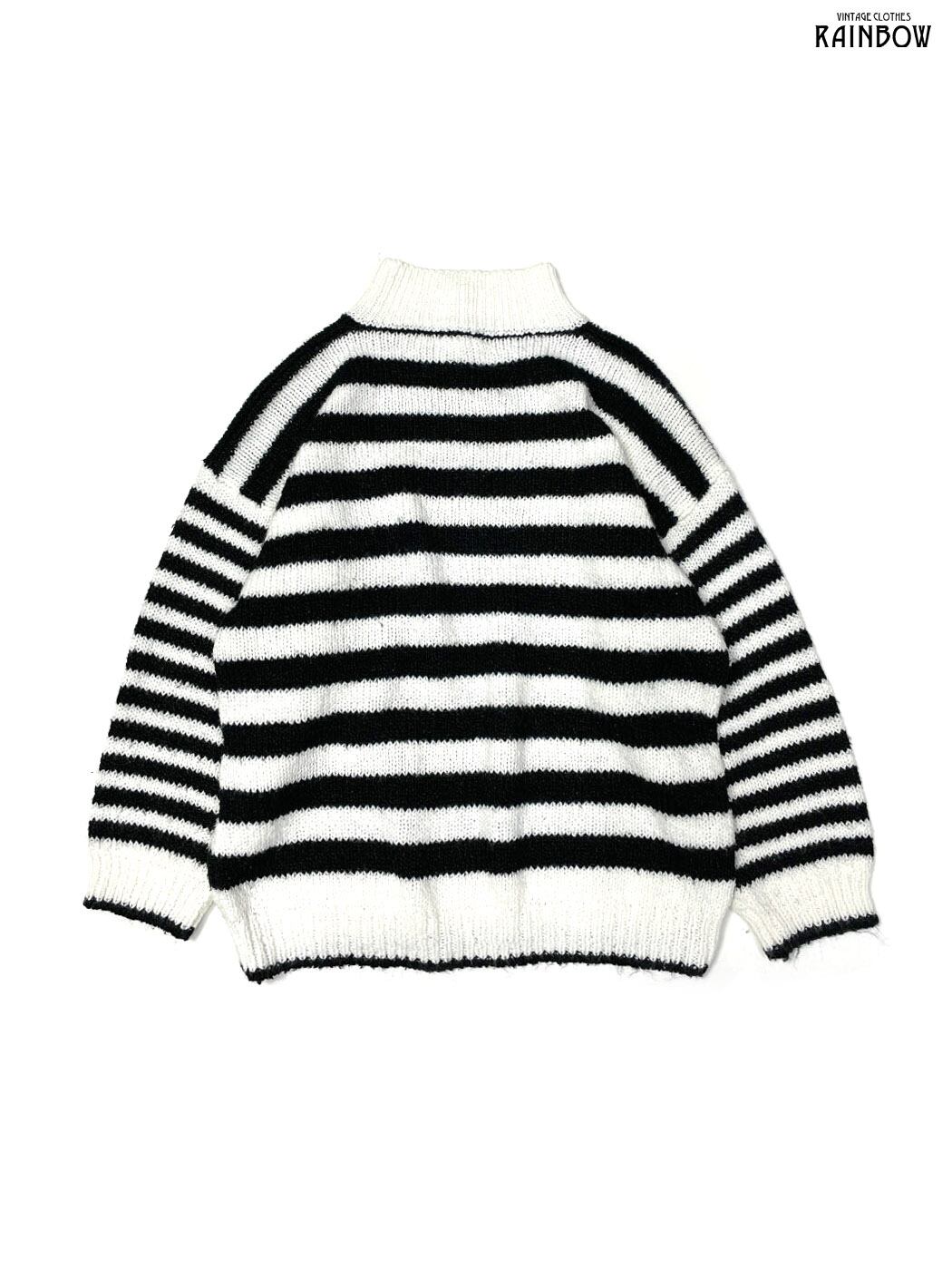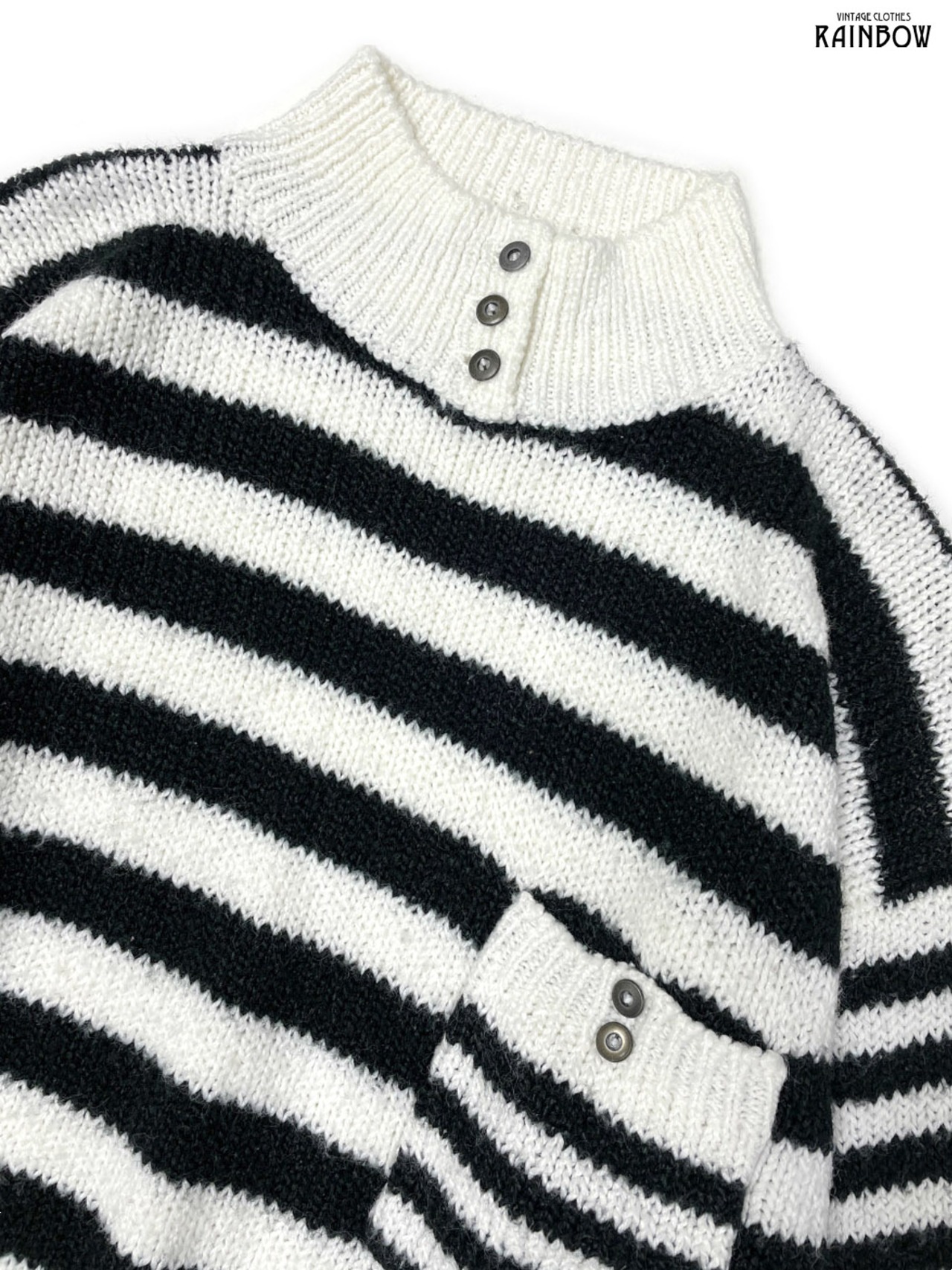 #ニット #セーター #ロングスリーブ #黒 #白 #ボーダー柄 #モックネック #柄セーター
