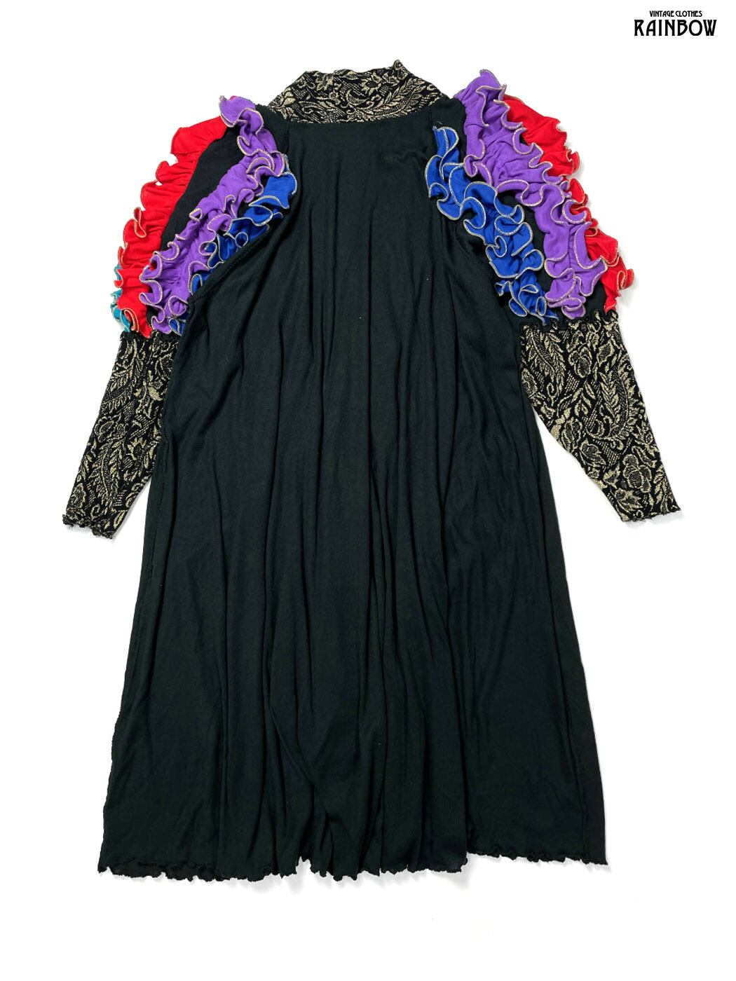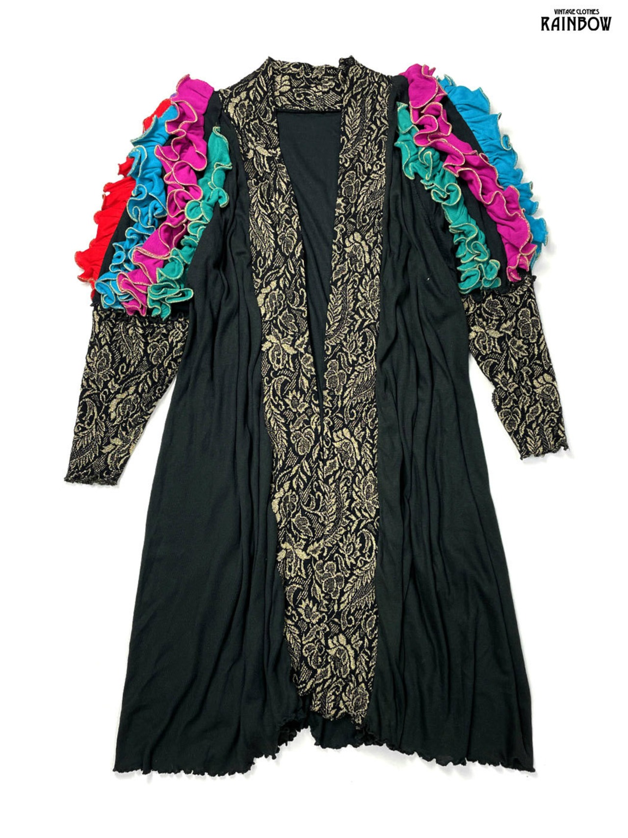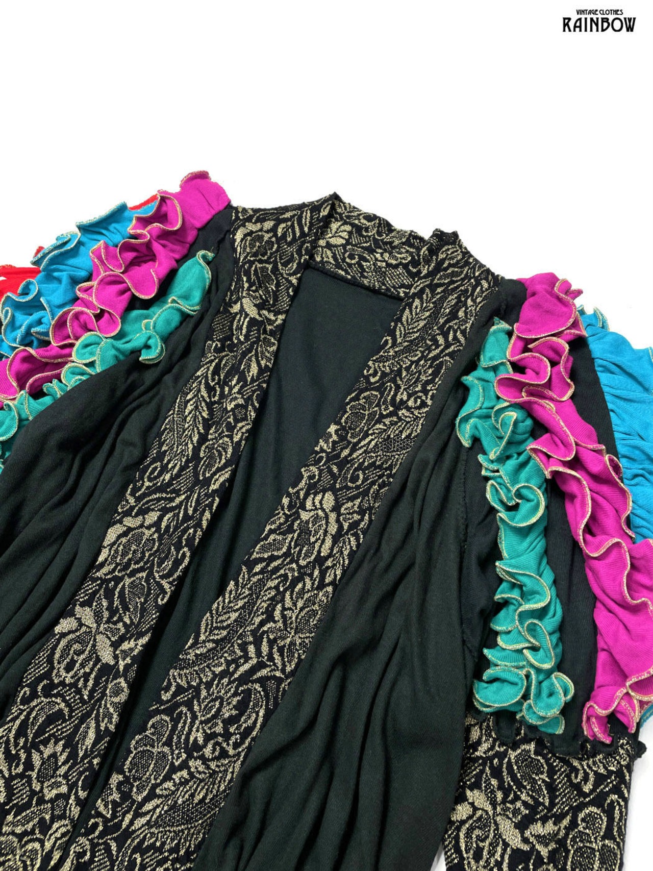 #アウター #羽織り #ロングスリーブ #黒 #総柄 #フリル #ラメ織り #ニット地 #柄羽織り