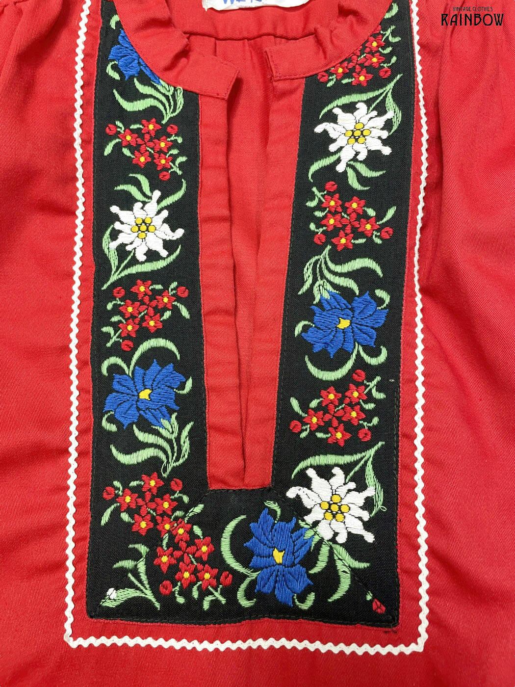 #ブラウス #bブラウス #ロングスリーブ #赤 #花柄 #刺繍 #ガーリー #ヴィンテージ #コットン #刺繍シャツ
