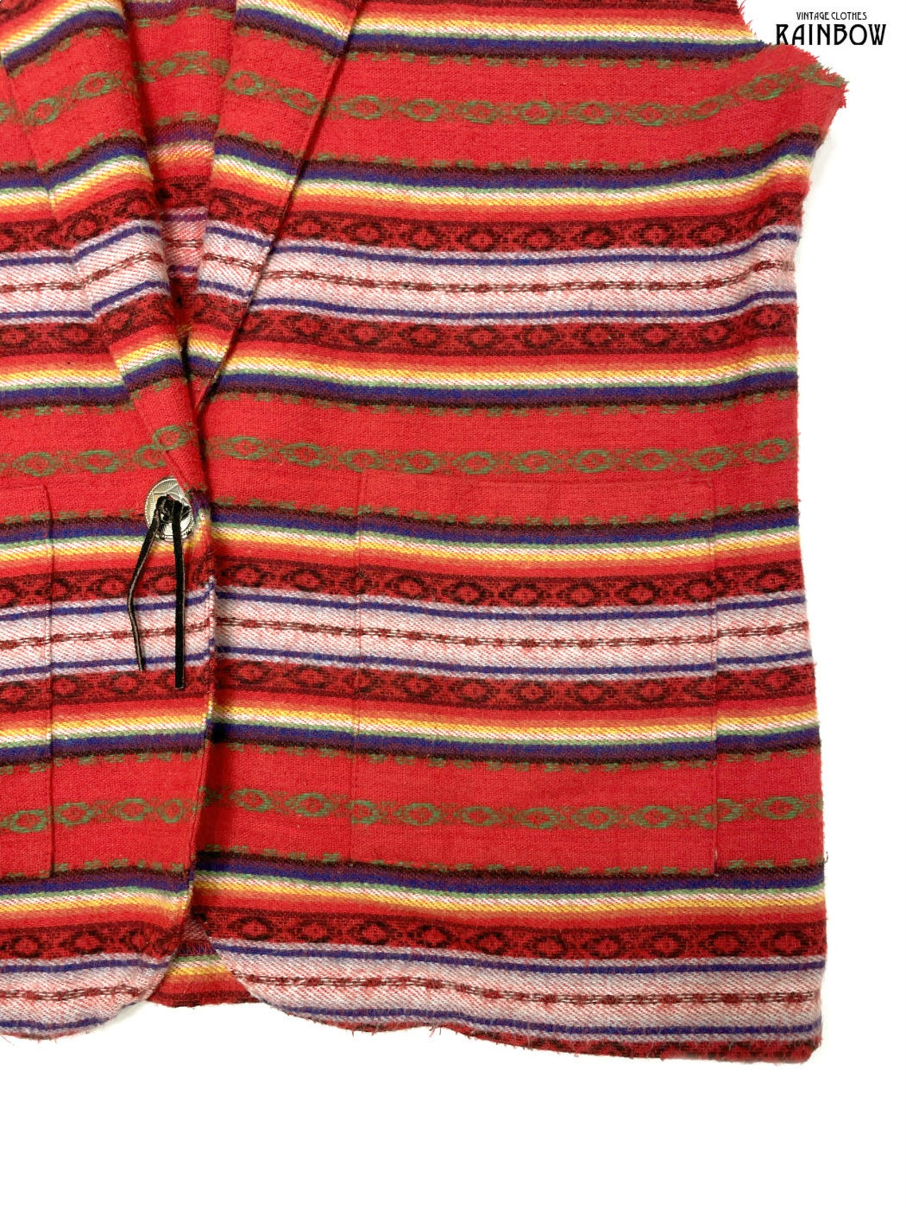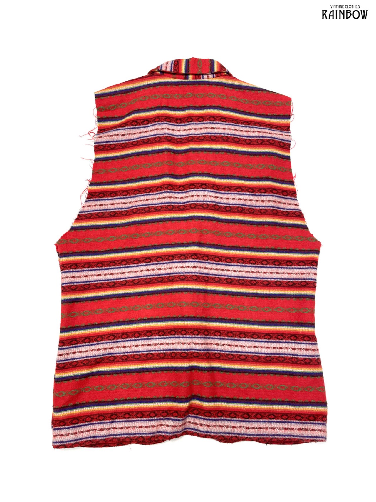 #トップス #ベスト #ノースリーブ #赤 #ボーダー柄 #メキシカン#メキシカンボーダー #刺繍 #前開き #テーラードベスト #ヴィンテージ #ウール #ベスト