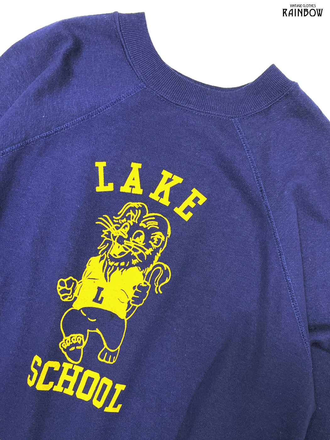 #トップス #スウェット #トレーナー #ロングスリーブ #青 #紺 #プリントデザイン #LAKE SCHOOL #ライオン #ヴィンテージ #スウェット地 #プリントスウェット