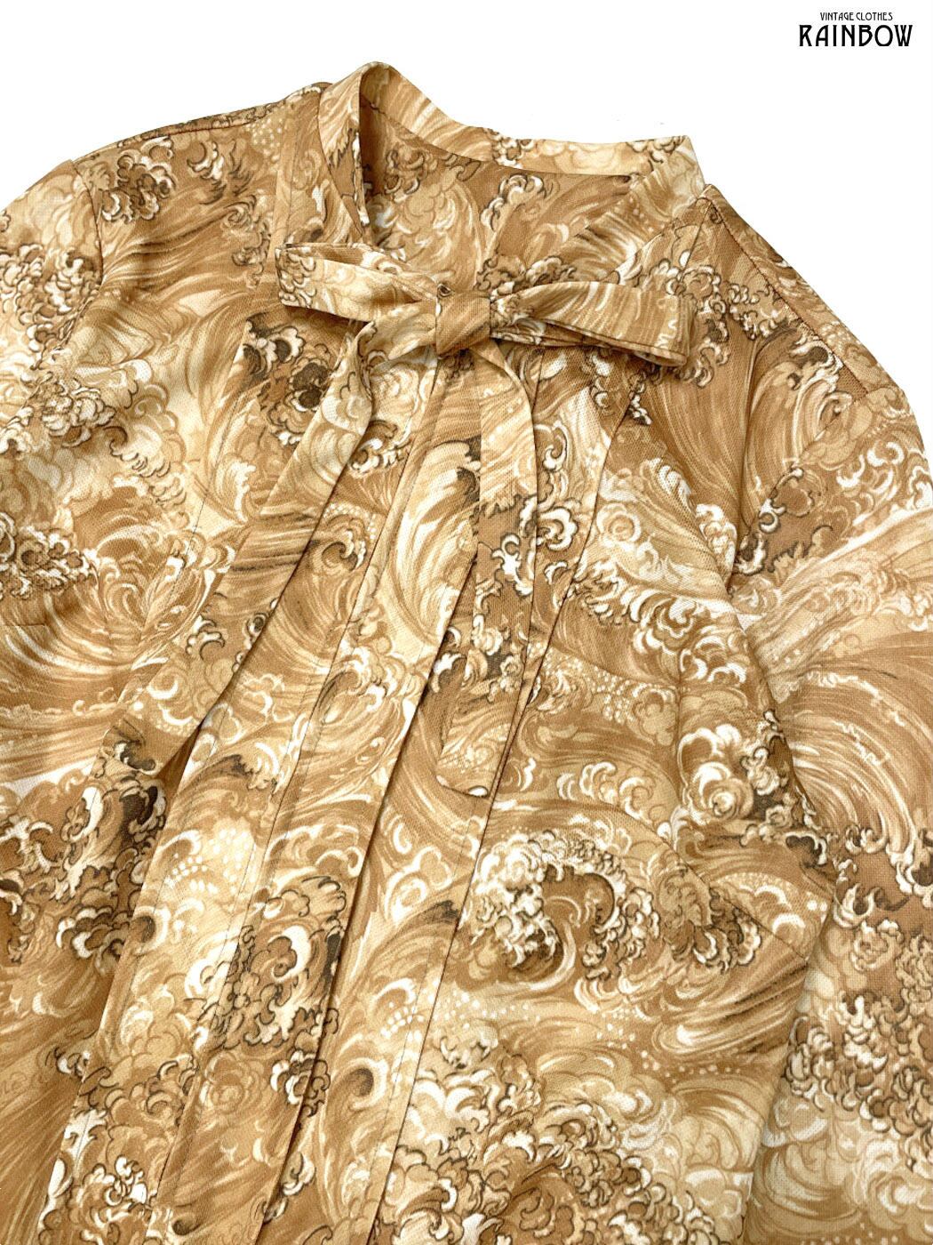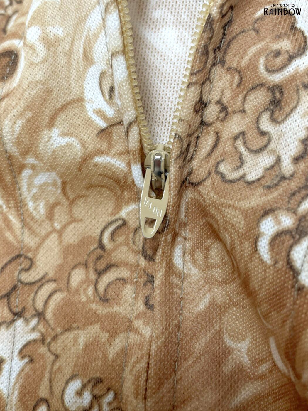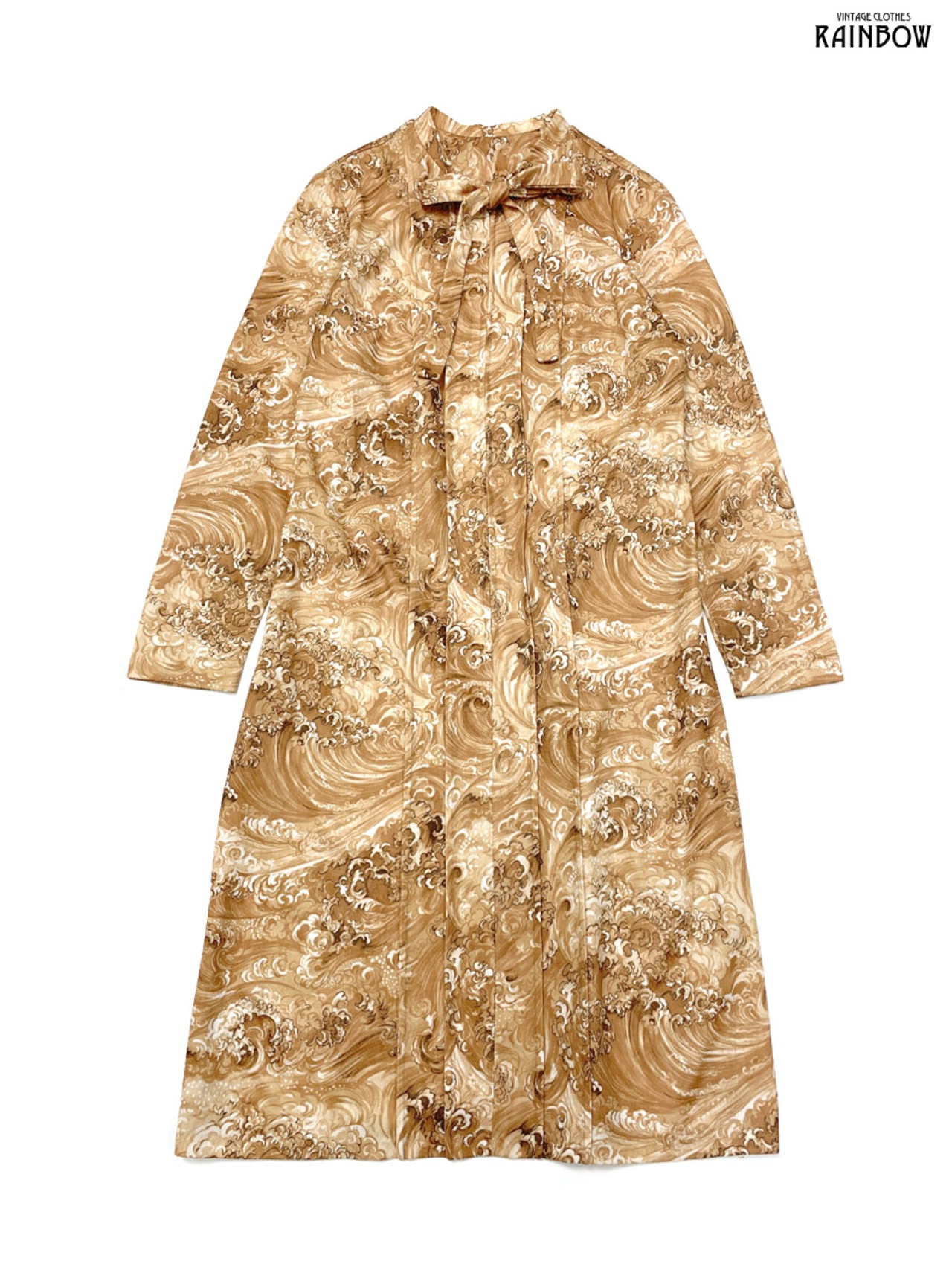#ワンピース #ロングスリーブ #ロング丈 #ストレート #ベージュ #総柄 #リボン #TALONジップ #クラシック #長袖総柄ワンピース