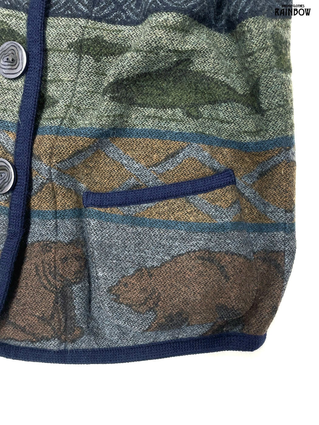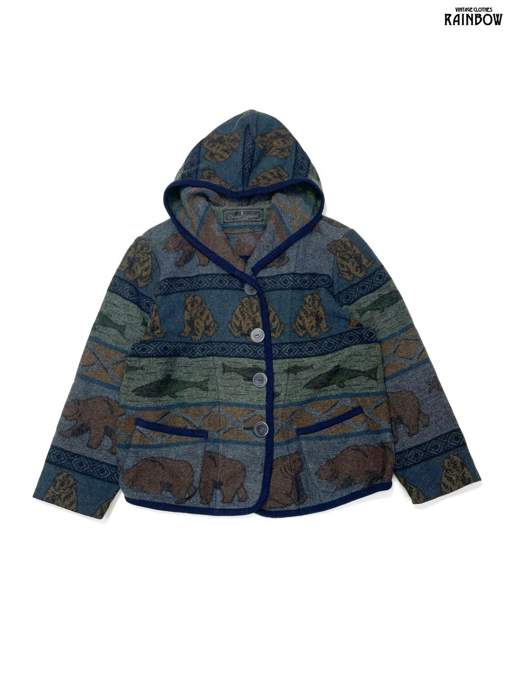 #アウター #ライトジャケット #ロングスリーブ #紺 #総柄 #アニマル #フード付 #ウール #ウールジャケット