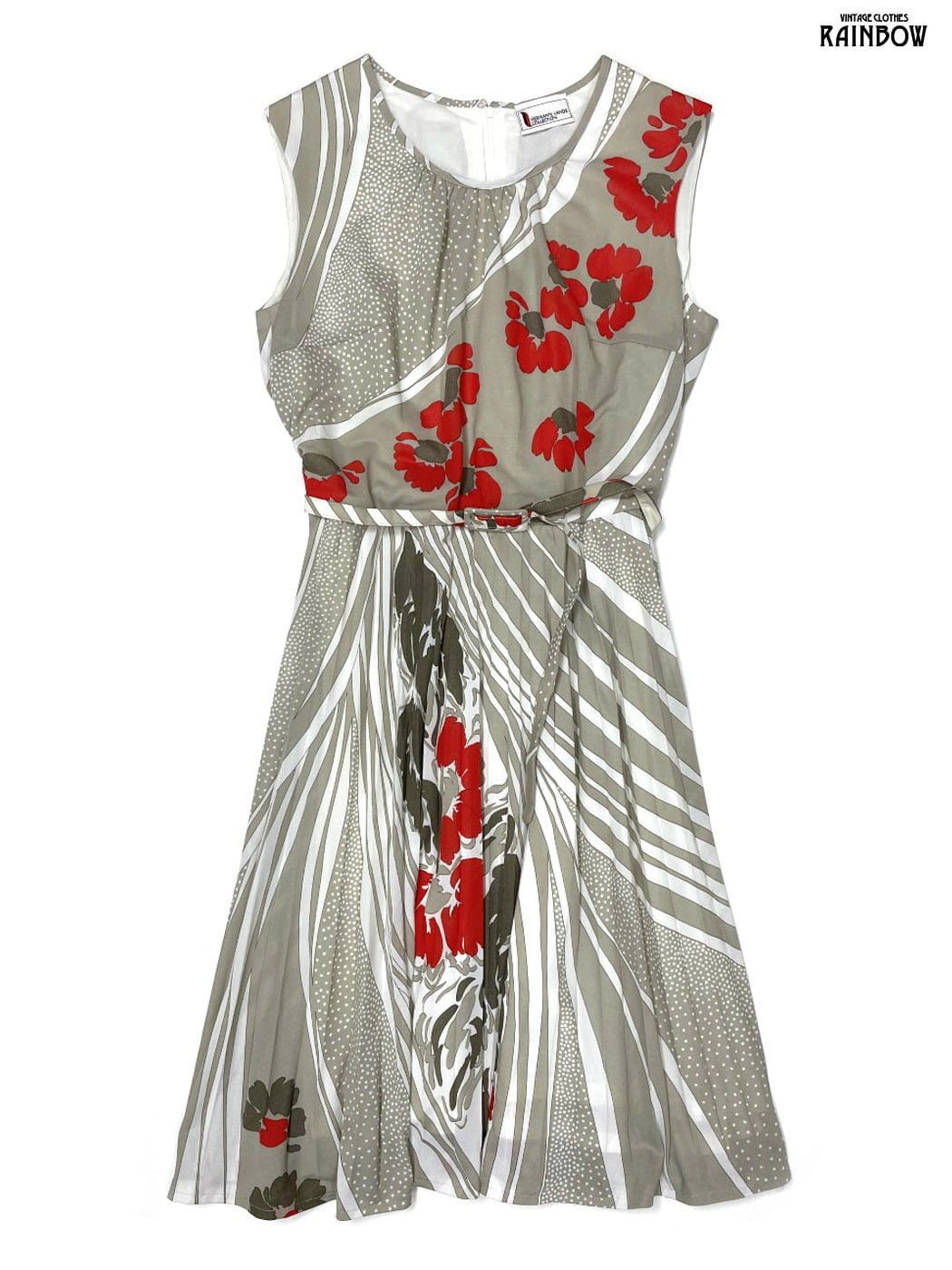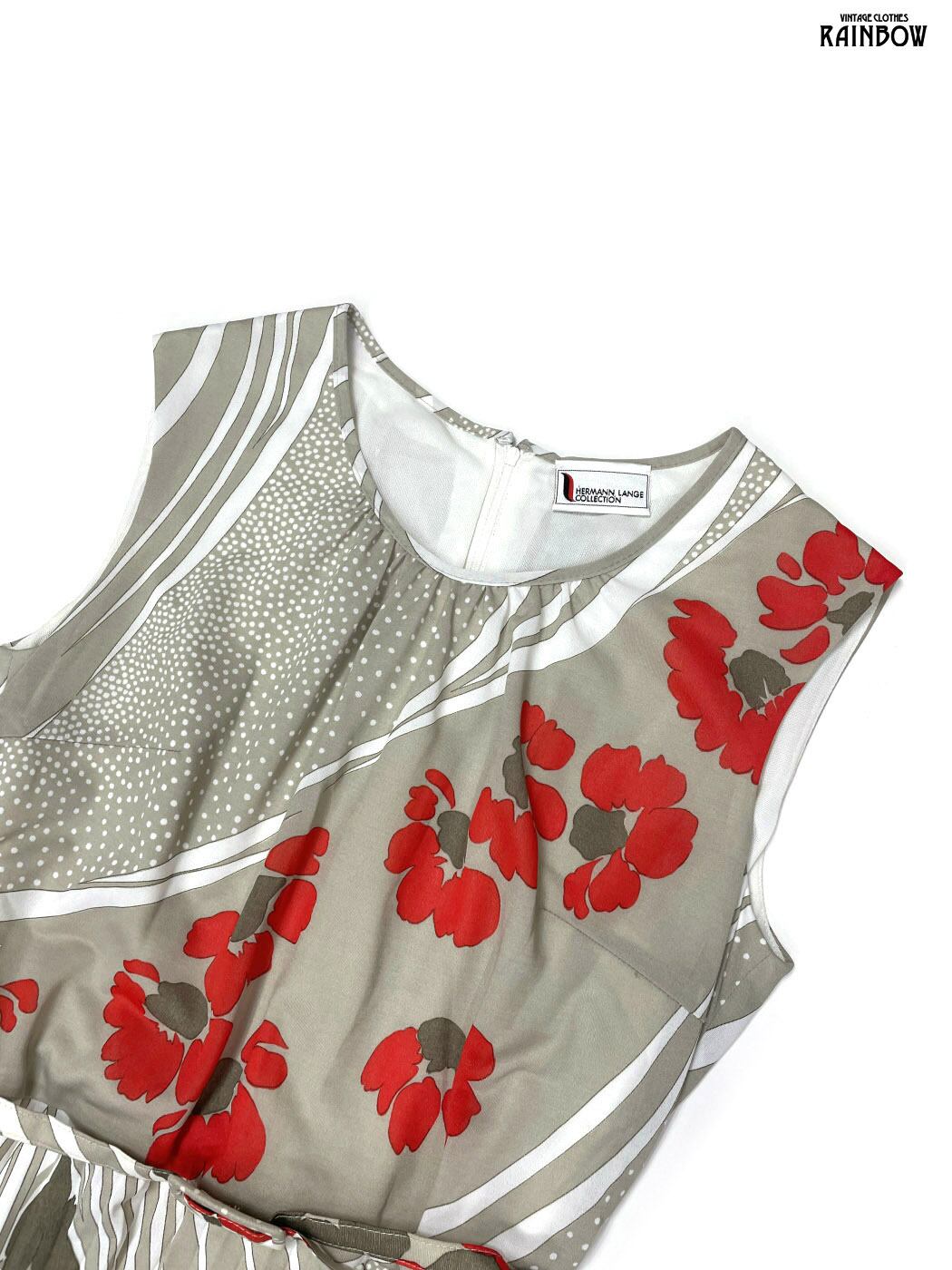 #ワンピース #ノースリーブ #ロング丈 #ウエスト切り替え #ベージュ #花柄 #ベルト付き #ノースリーブ花柄ワンピース