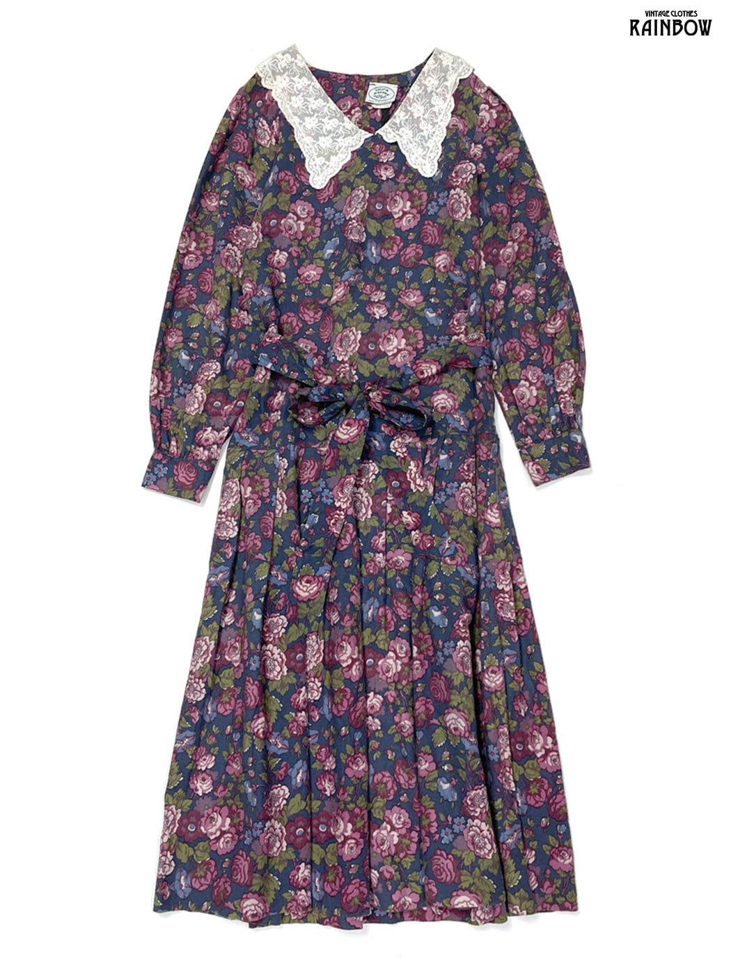 #ワンピース #ロングスリーブ #ロング丈 #ゴムウエスト #紫 #花柄 #イギリス製 #レース #ベルト付き #クラシック #コットン #長袖花柄ワンピース