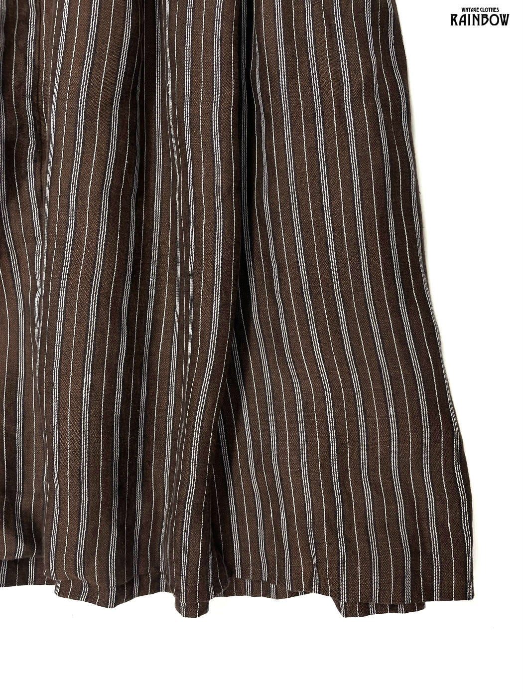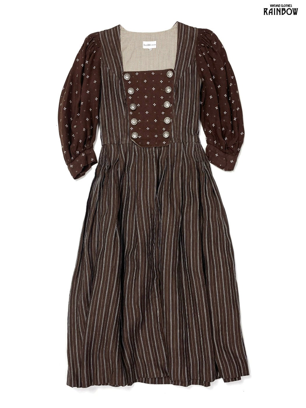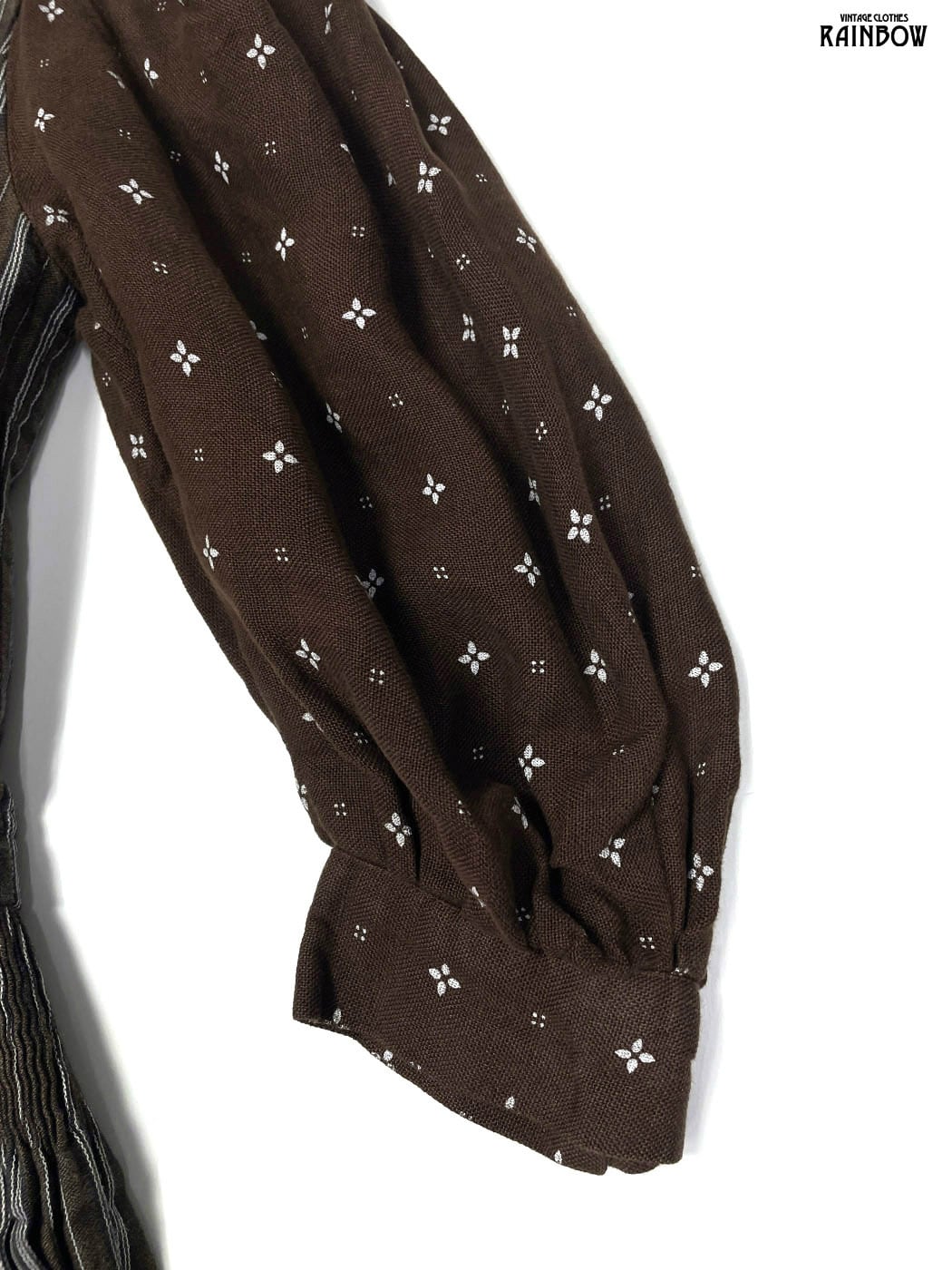 古着 総柄 コットン ロング丈 長袖 ワンピース ダークブラウン (otu2509007)